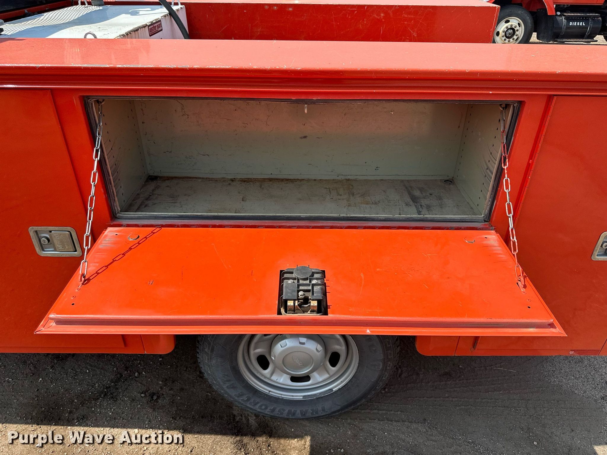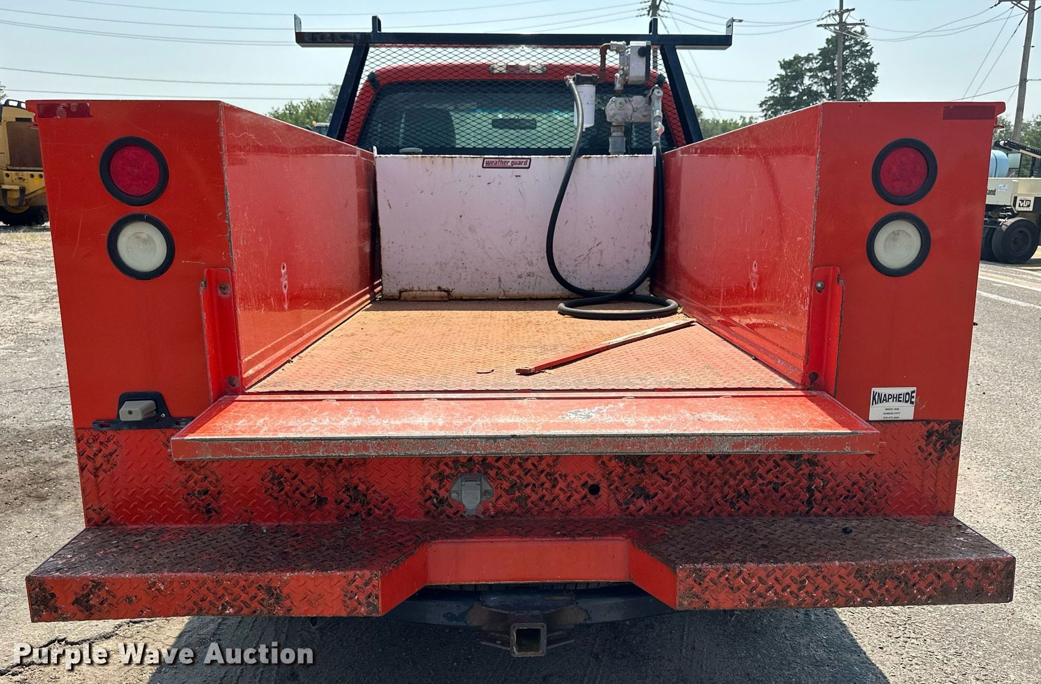 2011 Ford F250 Super Duty utility bed pickup truck. Miles: 226,774 on odometer, VIN: 1FTSF2A69BEC31507, KDOT ID: 113-3041. Engine Displacement: 6.2L V8 OHV, Cylinders: 8, Fuel type: Gas, HP: 385. Transmission Automatic. Interior AC, Heat, Cruise control. Features Utility bed Knapheide 796J1, 9' L x 78" W, Auxiliary fuel tank Capacity: 100 gallons, Fuel pump, Meter. Tires Size: 245/75R17. Notes Hail damage, Dead battery, Front end damage. Kansas title. Titles will be distributed after confirmation of payment and removal. Title distribution may be delayed up to 30 days from verification of funds. Kansas Department of Transportation - Norton. 312 S 2nd Ave. Norton, KS 67654