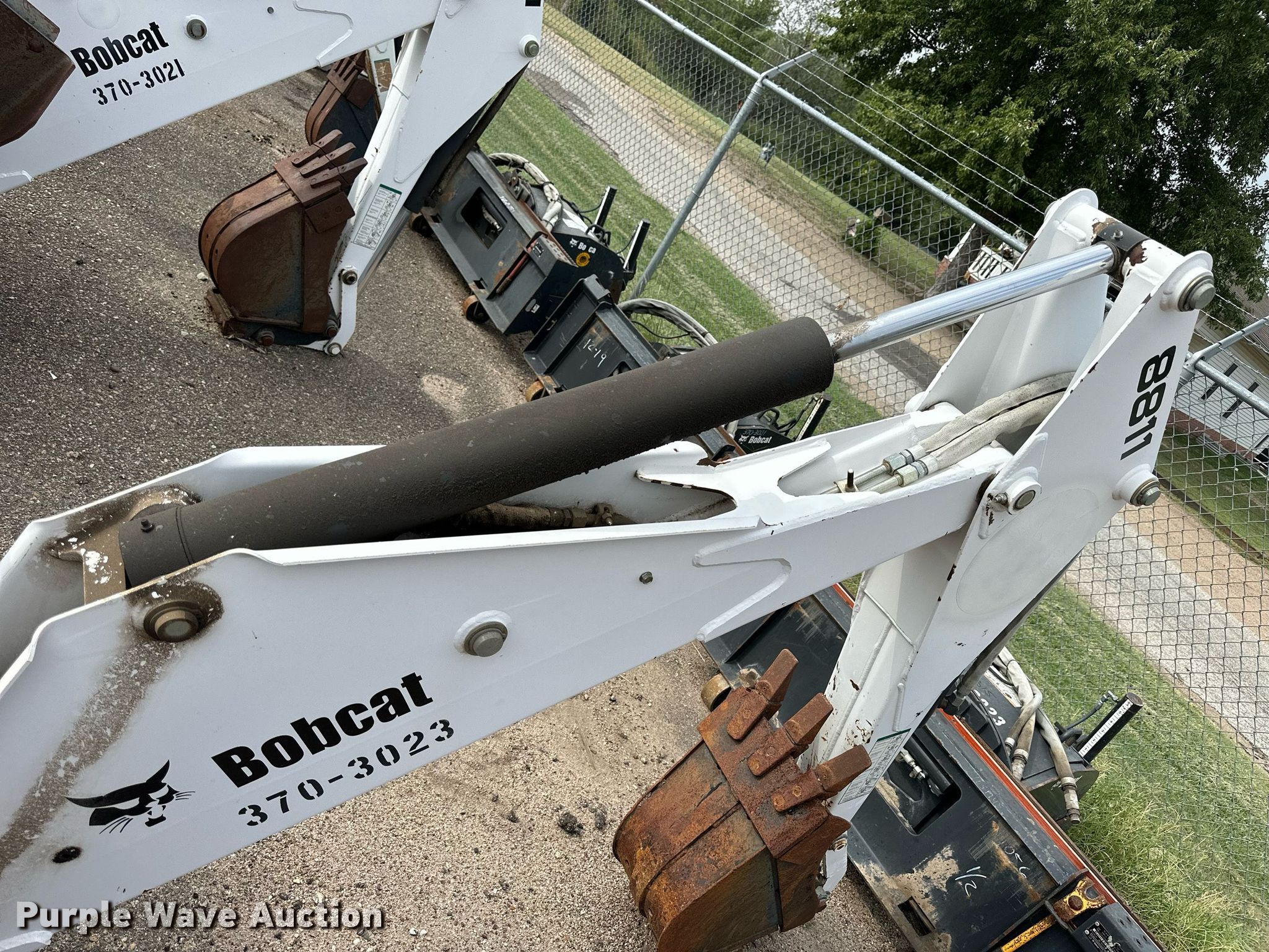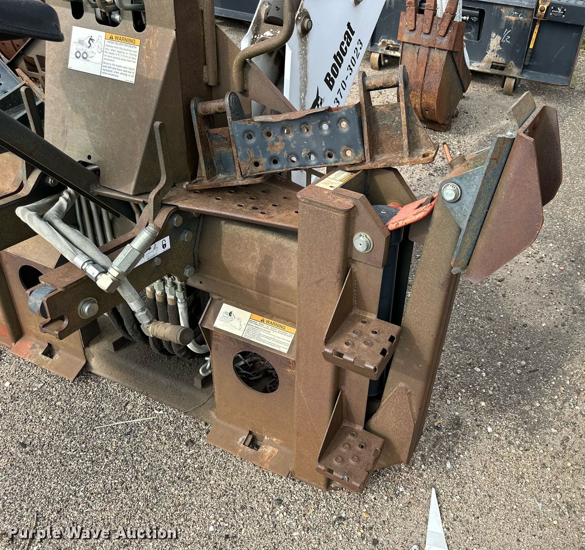 Purple Wave is selling a used Skid Steer Attach. in Kansas. This item is a Bobcat 8811 skid steer backhoe with the following: Bucket, Width: 12", Teeth: 3, Hydraulic cylinder leaks, Unknown operating condition, Serial: 630100474, KDOT ID: 3-2310