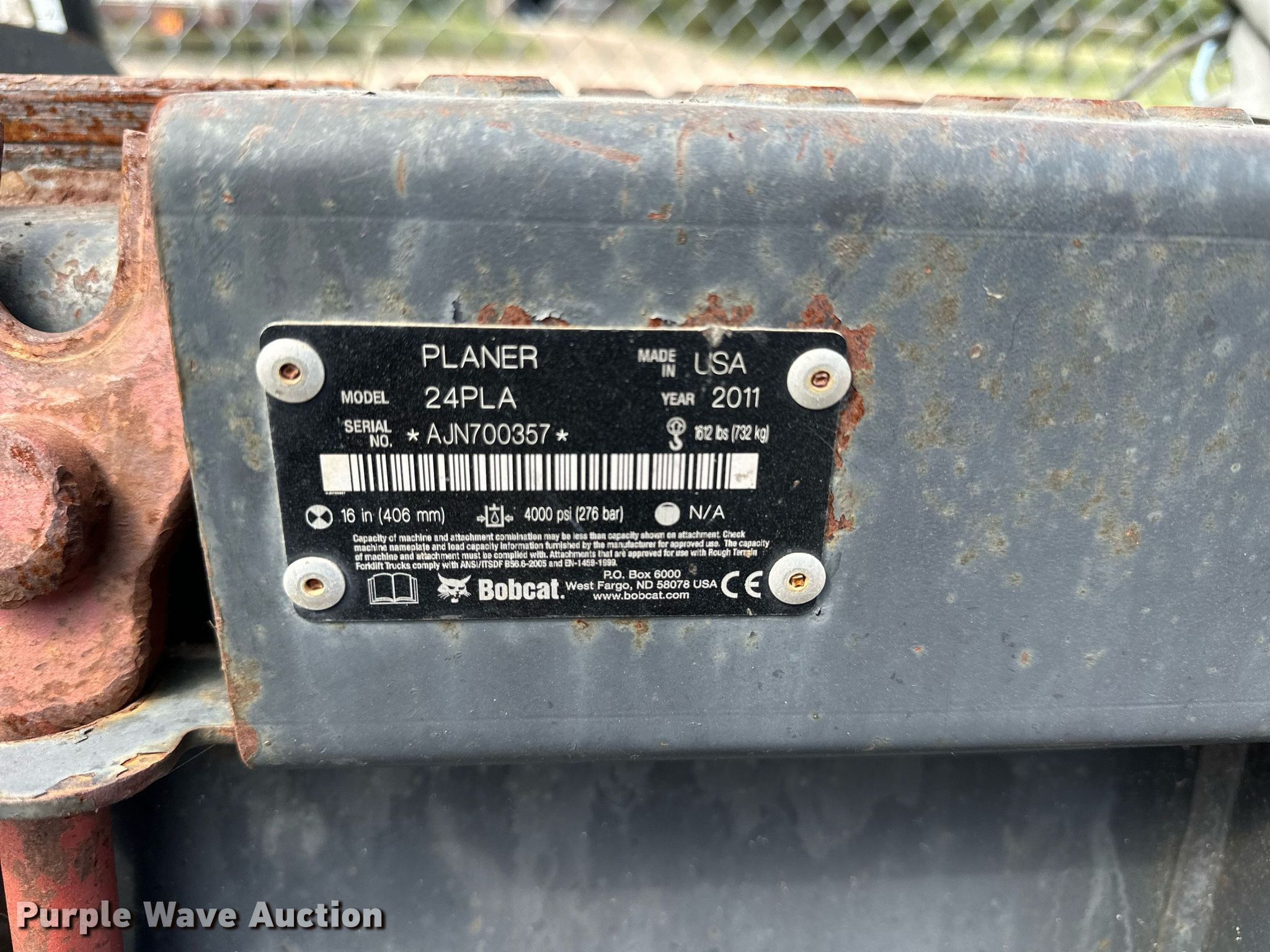 Purple Wave is selling a used Skid Steer Attach. in Kansas. This item is a 2011 Bobcat 24PLA skid steer cold planer with the following: Width: 28", Serial: AJN700357, KDOT ID: 3-2314