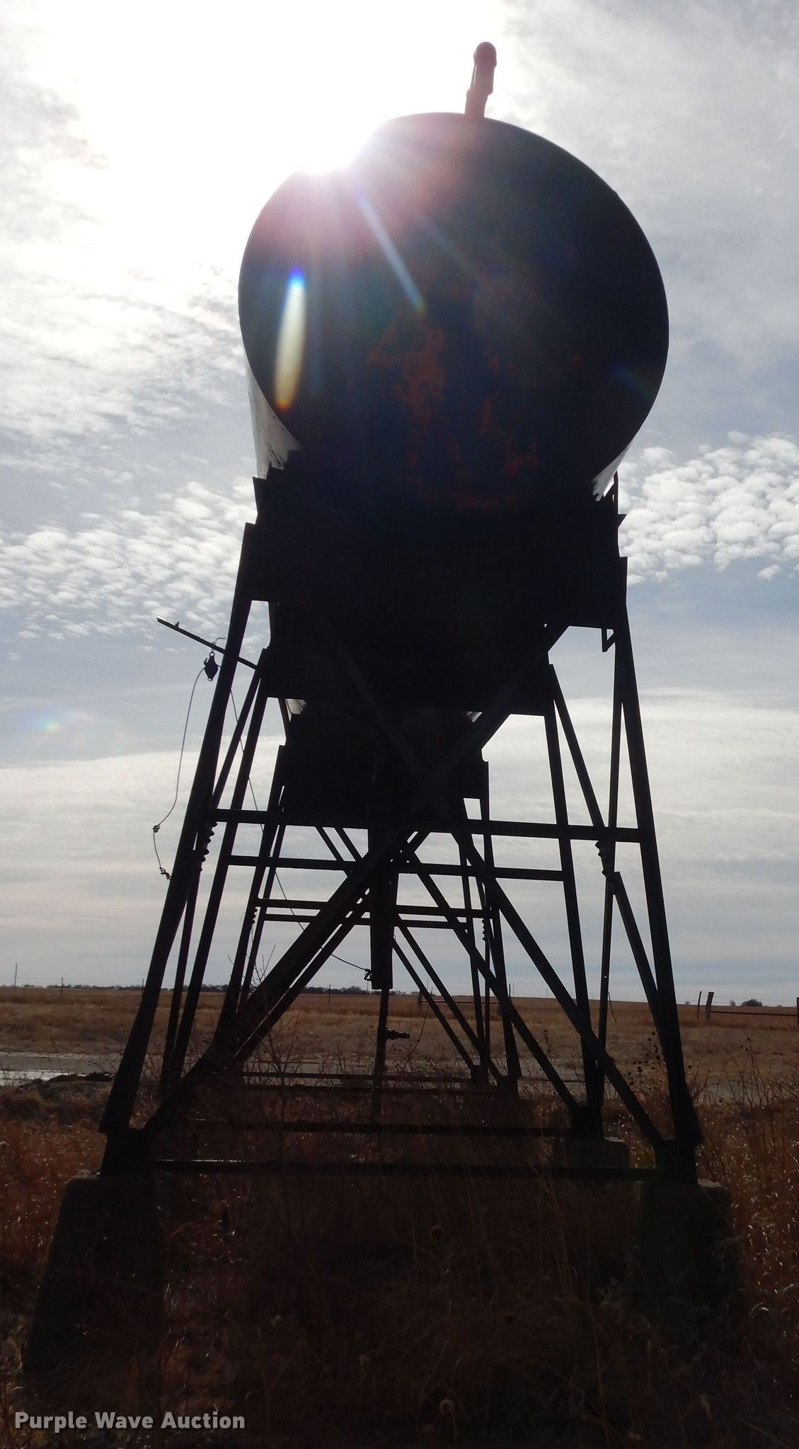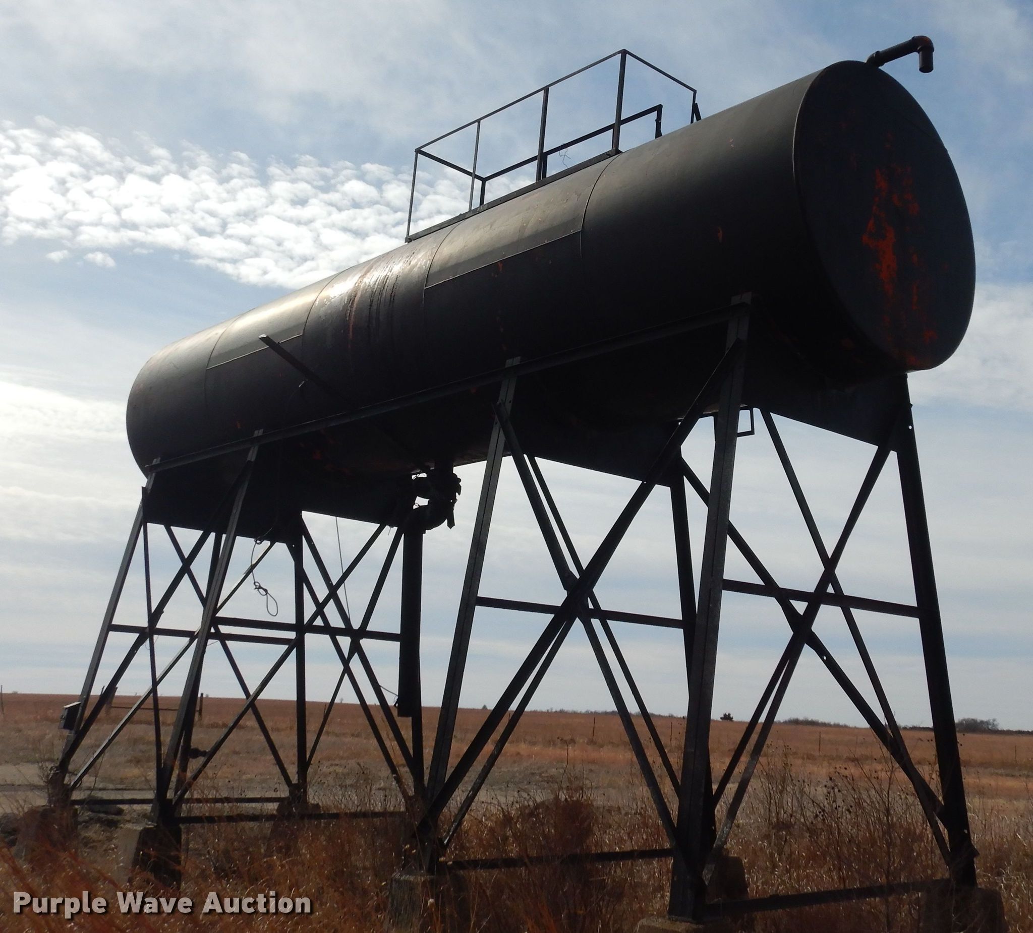 Purple Wave is selling a used Tanks in Kansas. This item is a 1954 R&R asphalt storage tank with the following: 33'L x 10' diameter, Capacity: 8,000 gallons, Stand, KDOT ID: 757-1044