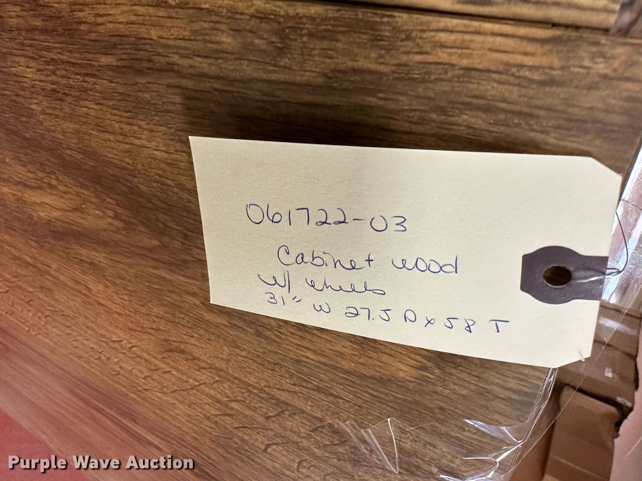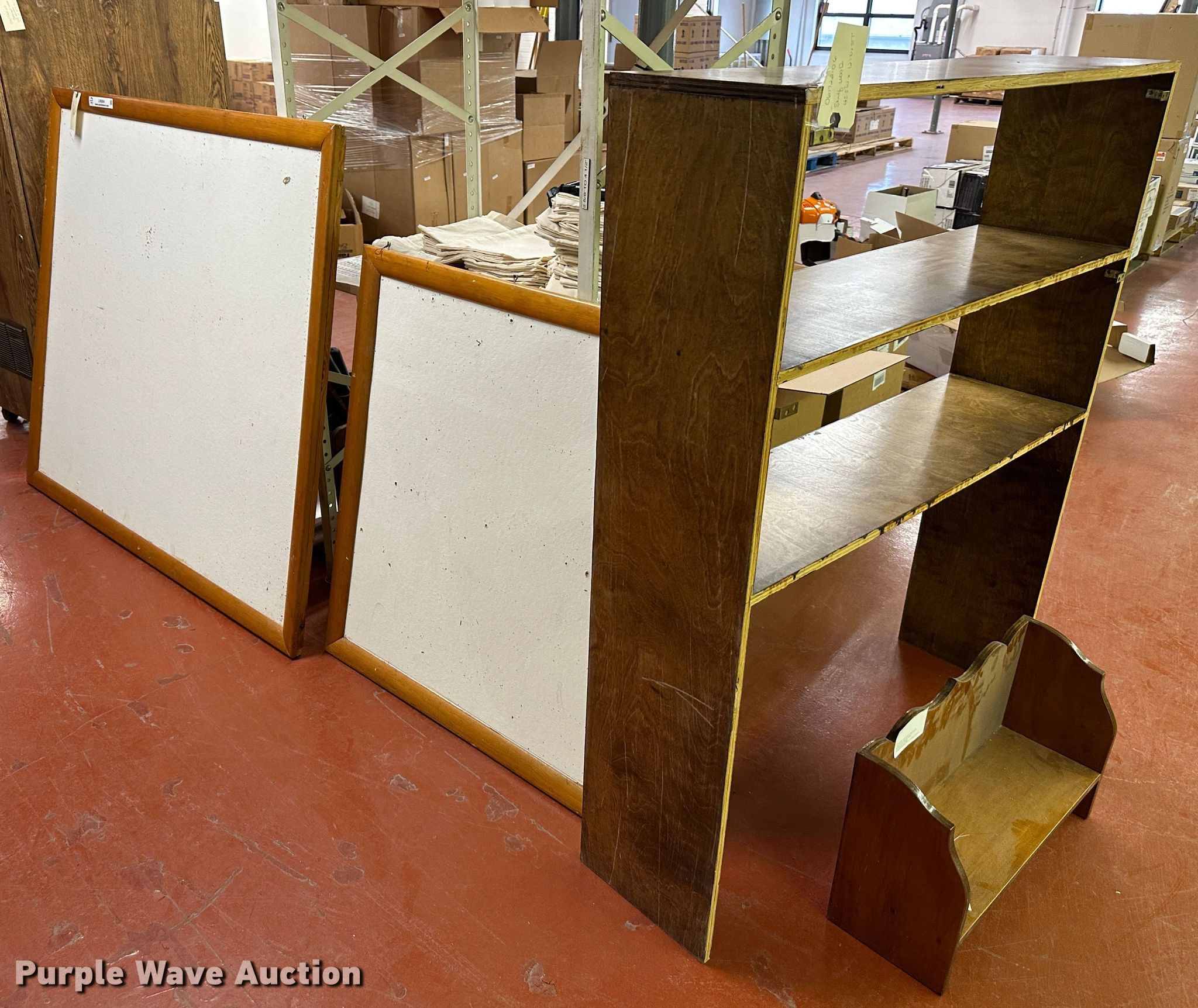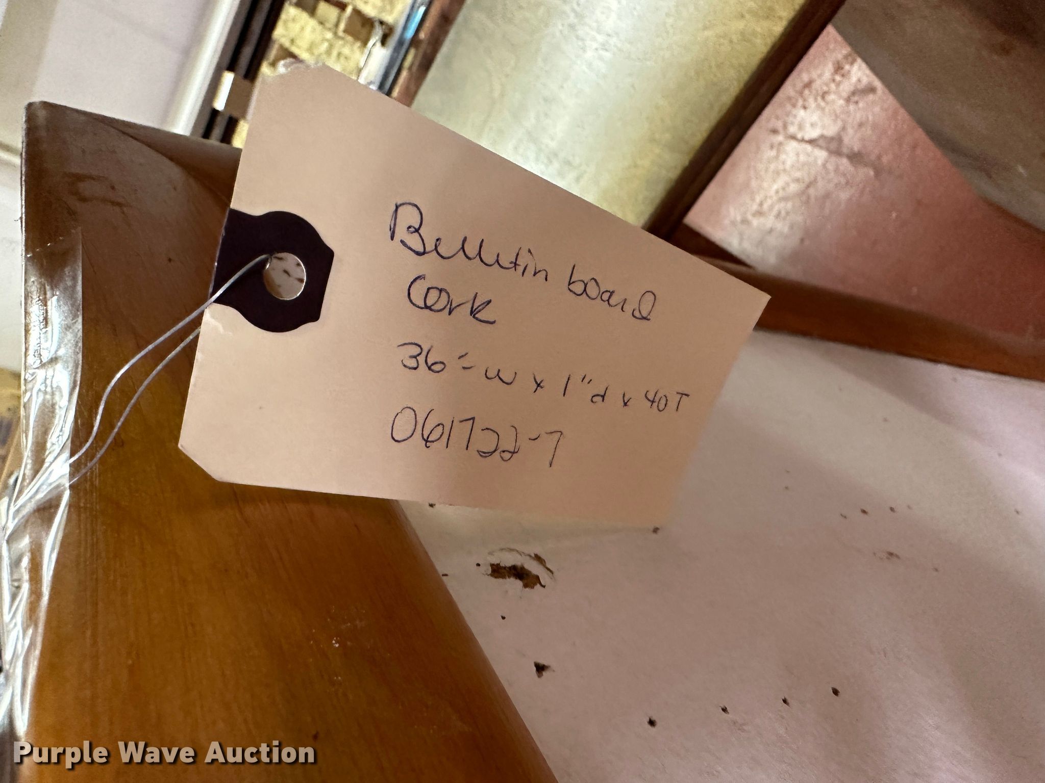 Purple Wave is selling a used Office Supplies and Equip. in Kansas. This item is a Office supplies and equipment with the following: (2) paper towel dispensers, 11"W x 4"D x 14.5"H, (2) wood shelves, 15"W x 9"D x 24"H, 45.5"W x 12"D x 55"H, Cabinet, 31"W x 27.5"D x 58"H, (2) corkboards, 36"W x 1"D x 40"H, 58.5"W x 1.5"D x 49.5"H, KDOT ID: 061722-01, 061722-02, 061722-03, 061722-06, 061722-07, 061722-08