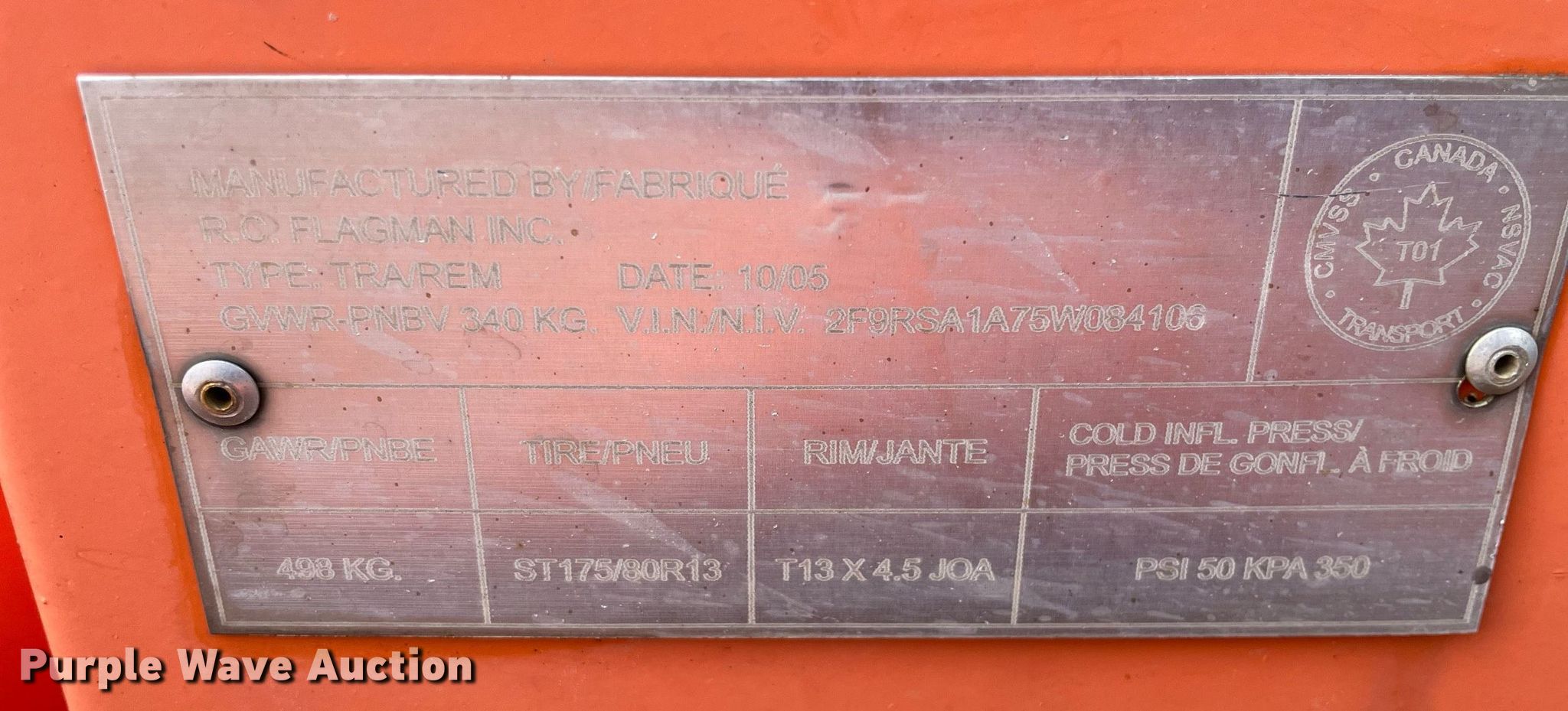 Purple Wave is selling a used Road Safety Equip. in Kansas. This item is a (2) 2007 R.C. Flagman traffic signals with the following: VIN: 2F9RSA1A75W084106, 2F9RSA1A95W084107, KDOT ID: 547-4017