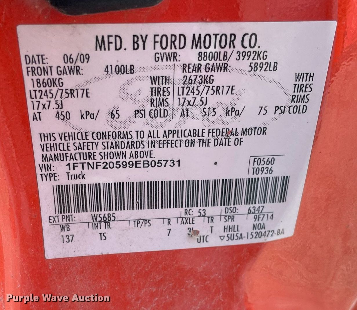 - VIN: 1FTNF20599EB05731