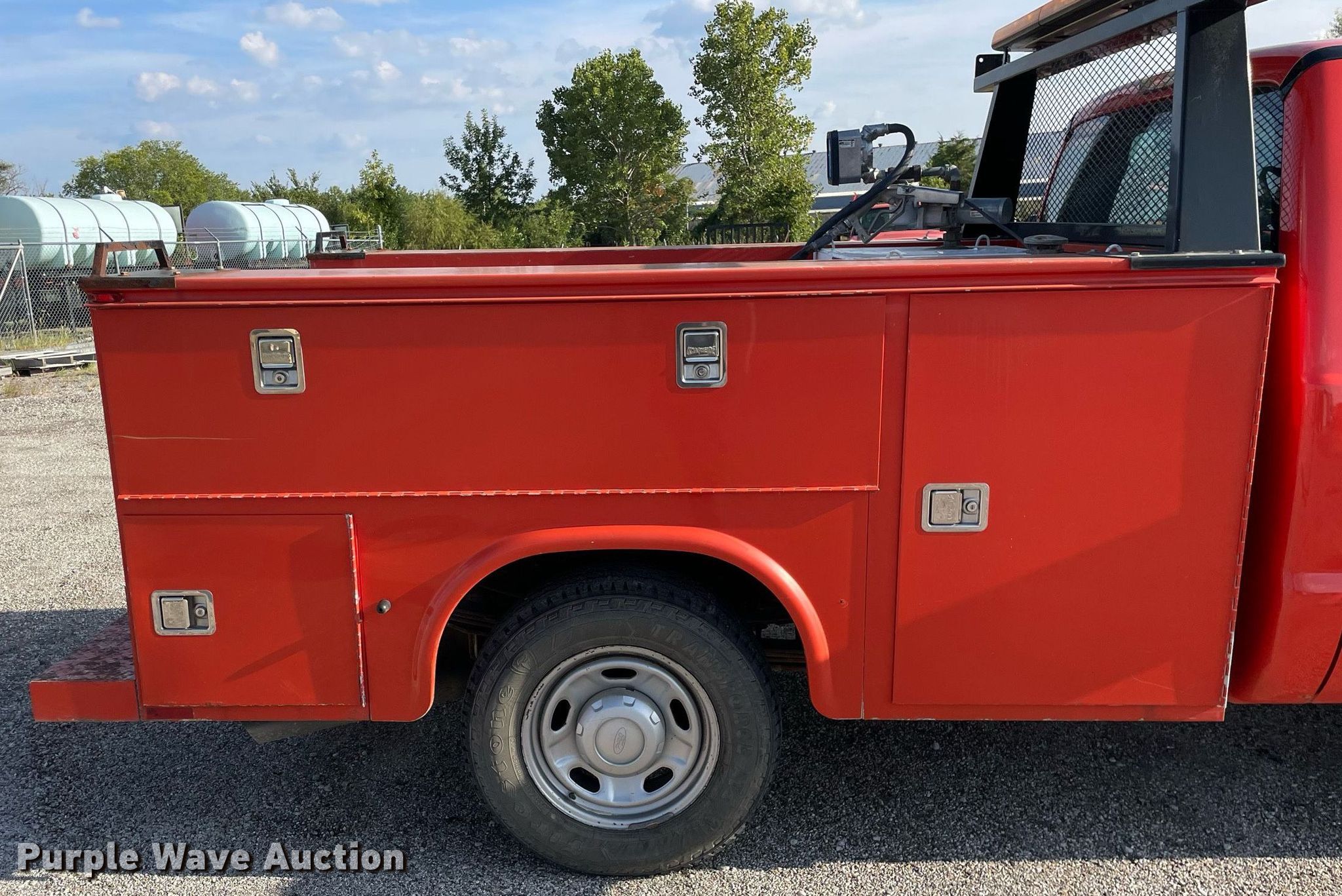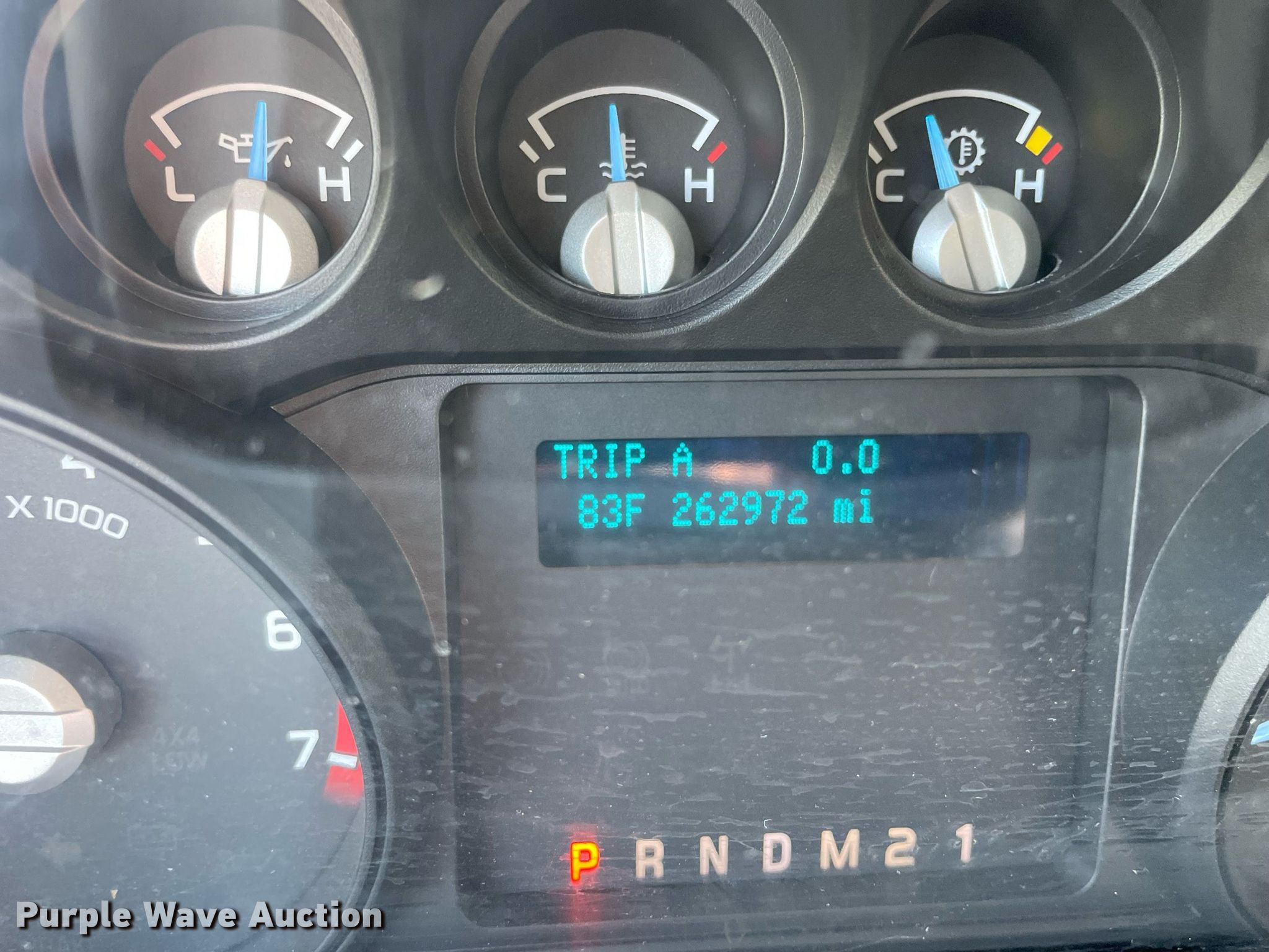 2011 Ford F250 Super Duty XL utility bed pickup truck. Miles: 262,972 on odometer, Hours: 7,980 on meter, VIN: 1FDSF2A67BEC26303, KDOT ID: 113-4041. Engine Displacement: 6.2L V8 OHV, Cylinders: 8, Fuel type: Gas. Transmission Automatic. Interior AC, Heat, Cruise control. Features Utility bed Knapheide 796J1, 8' L x 80" W, Auxiliary fuel tank Capacity: 110 gallons, Fuel pump. Tires Size: 245/75R17. Notes Dead battery. Kansas title. Titles will be distributed after confirmation of payment and removal. Title distribution may be delayed up to 30 days from verification of funds. Kansas Department of Transportation - Chanute Shop. 411 W 14th St. Chanute, KS 66720