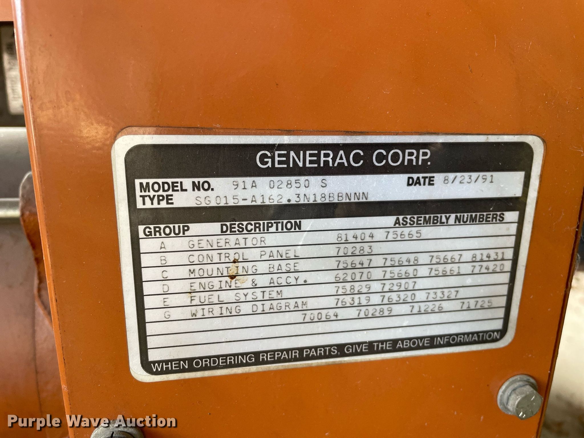 1991 Generac SG015 generator has sold in Chanute, Kansas for $1485. Item LV9847 sold on October 17th, 2023.