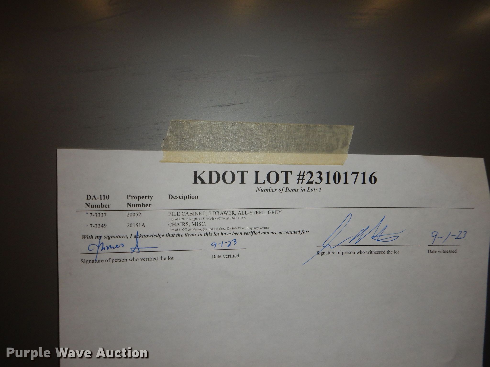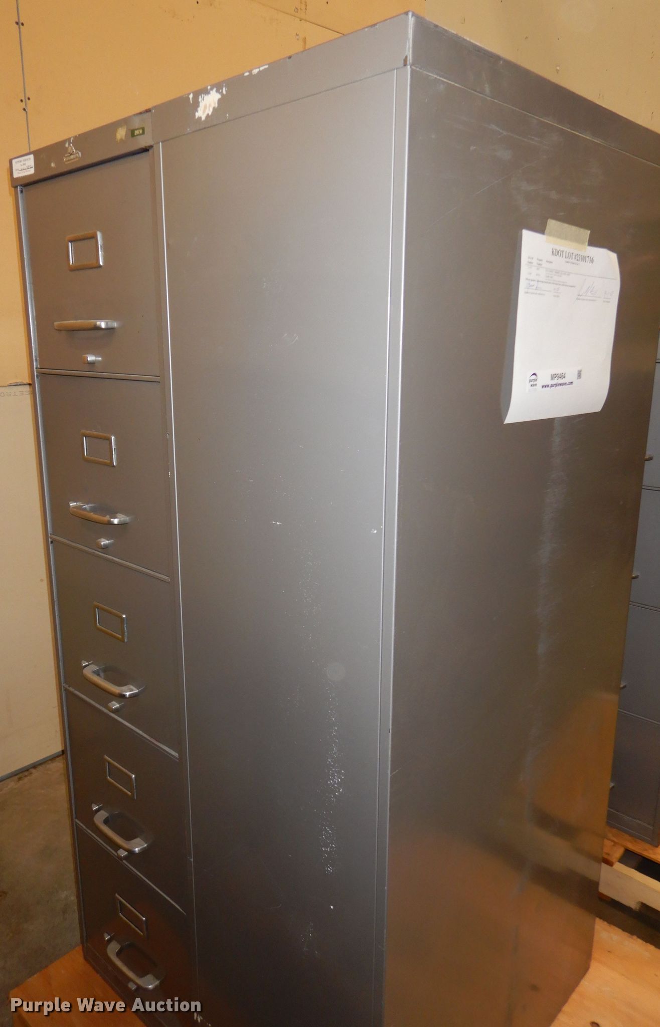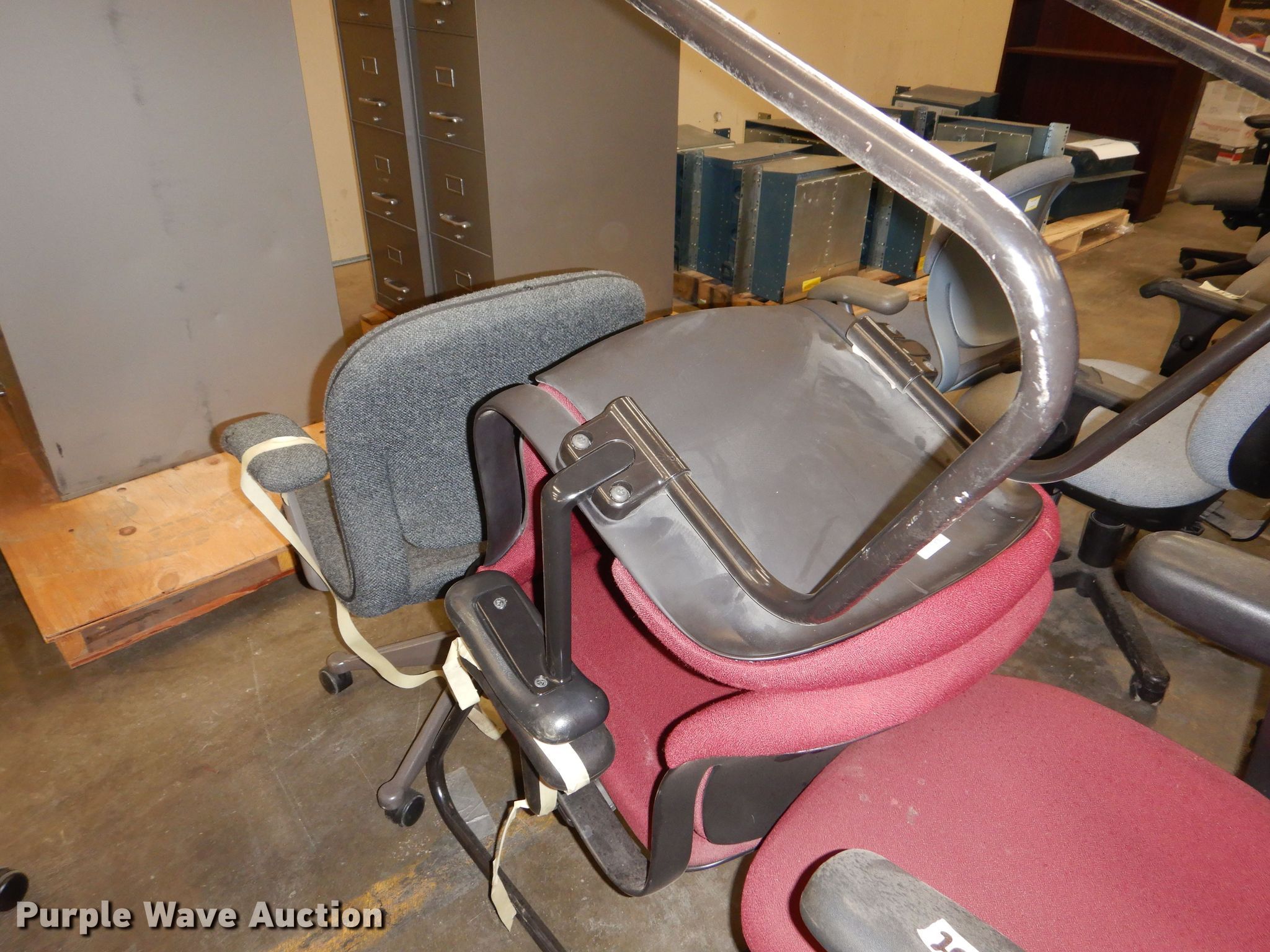 Purple Wave is selling a used Furniture in Kansas. This item is a Furniture with the following: (5) chairs, (2) All-Steel five drawer file cabinets, 28.5"W x 15"D x 60"H, No keys, KDOT ID: 23101716