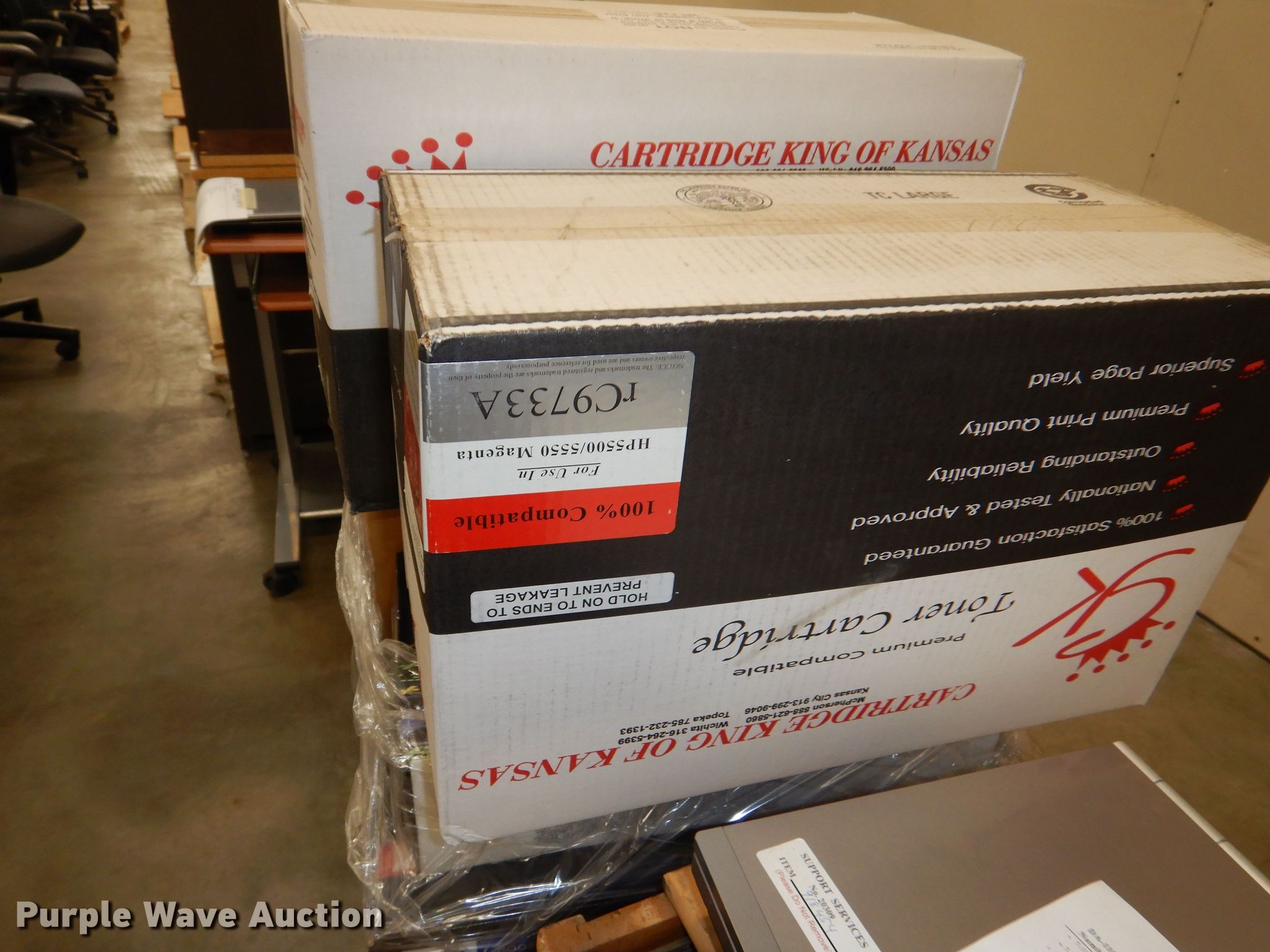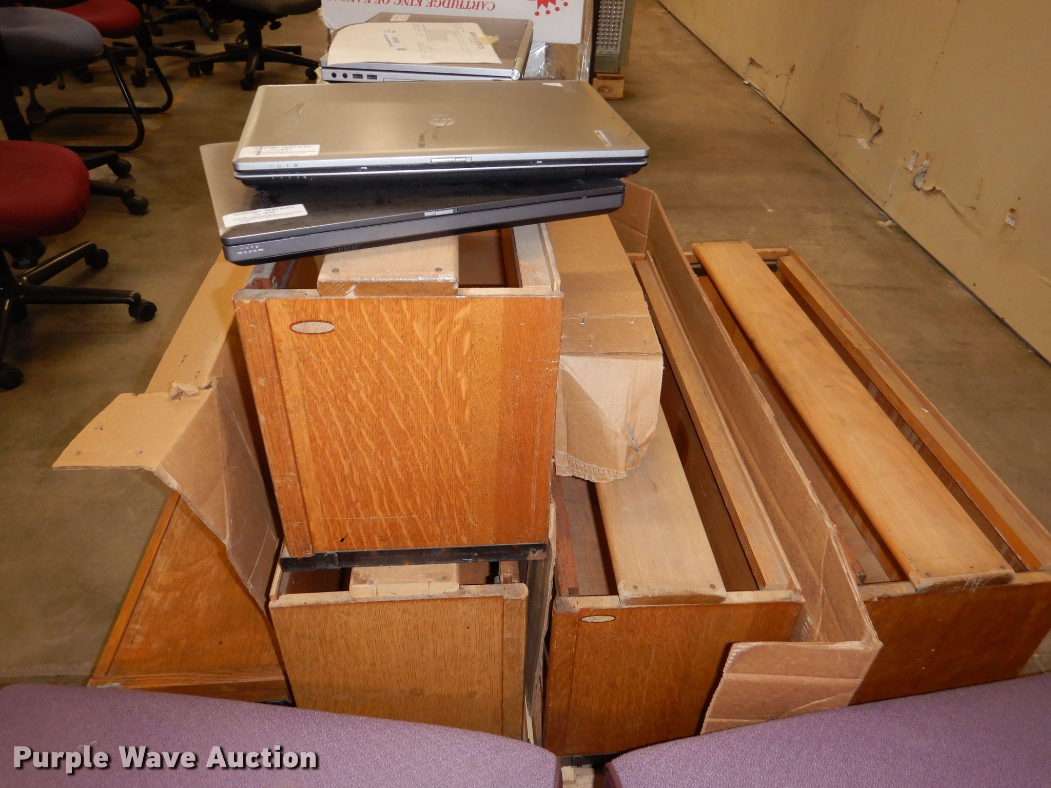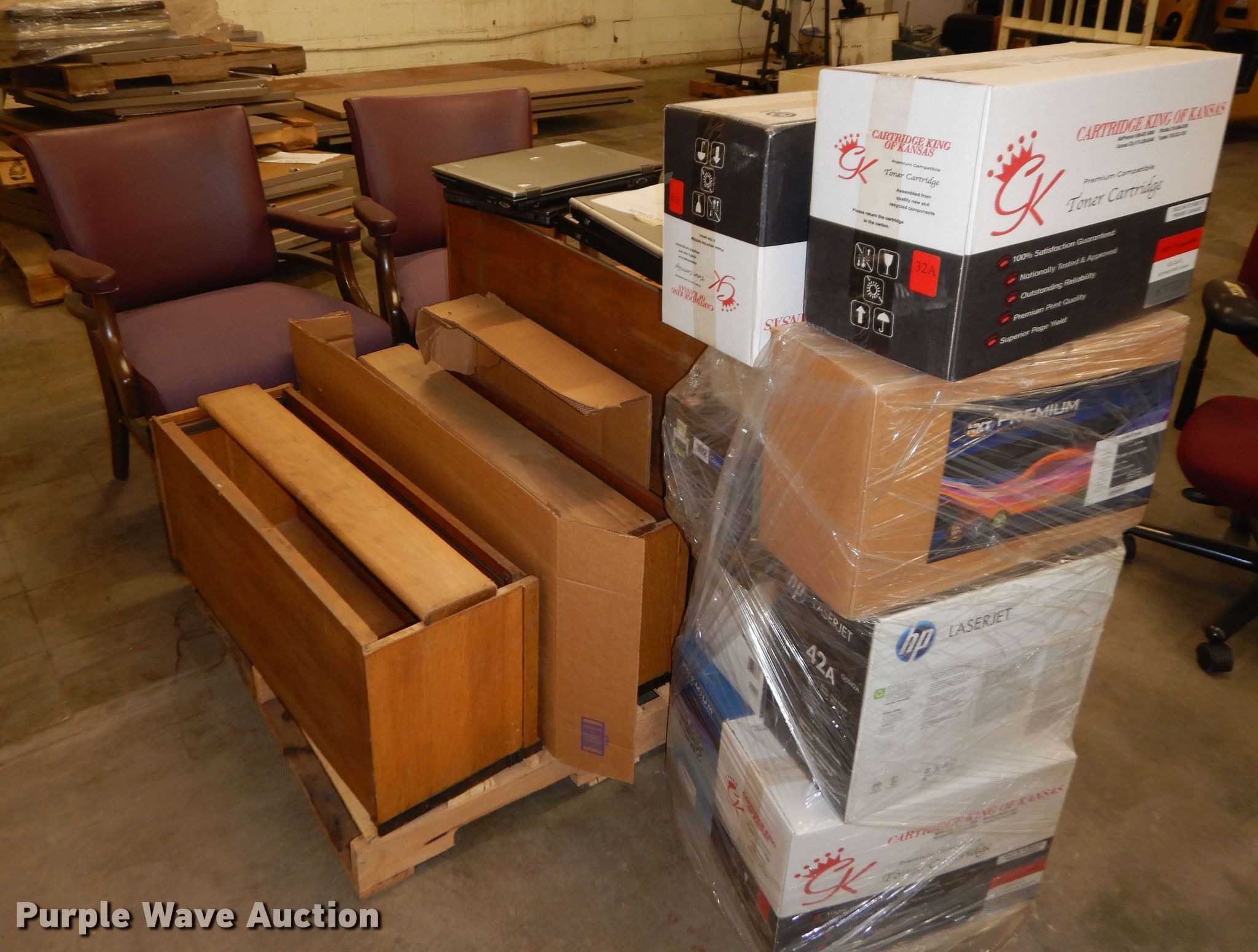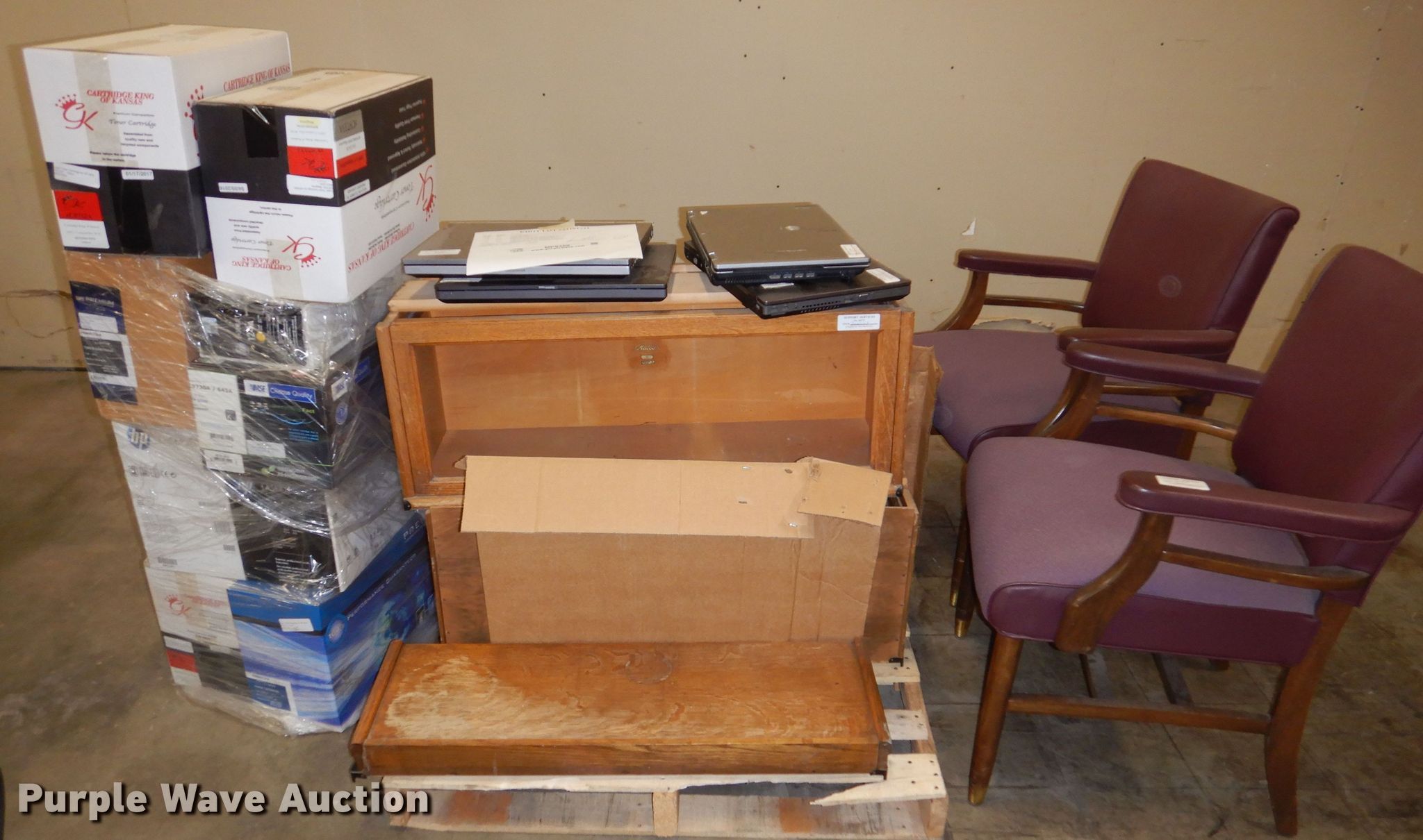 Purple Wave is selling a used Office Supplies and Equip. in Kansas. This item is a Office supplies and equipment with the following: Barrister bookcase, 34"W x 11"D x 55.5"H, (9) ink cartridges, (3) chairs, (6) laptops, HP Elitebook 8570P, HP Elitebook 8730W, HP Probook 6460B, HP Probook 6540B, (2) HP Probook 6560B, Hard drives have been reformatted and no operating system installed, KDOT ID: 23101721
