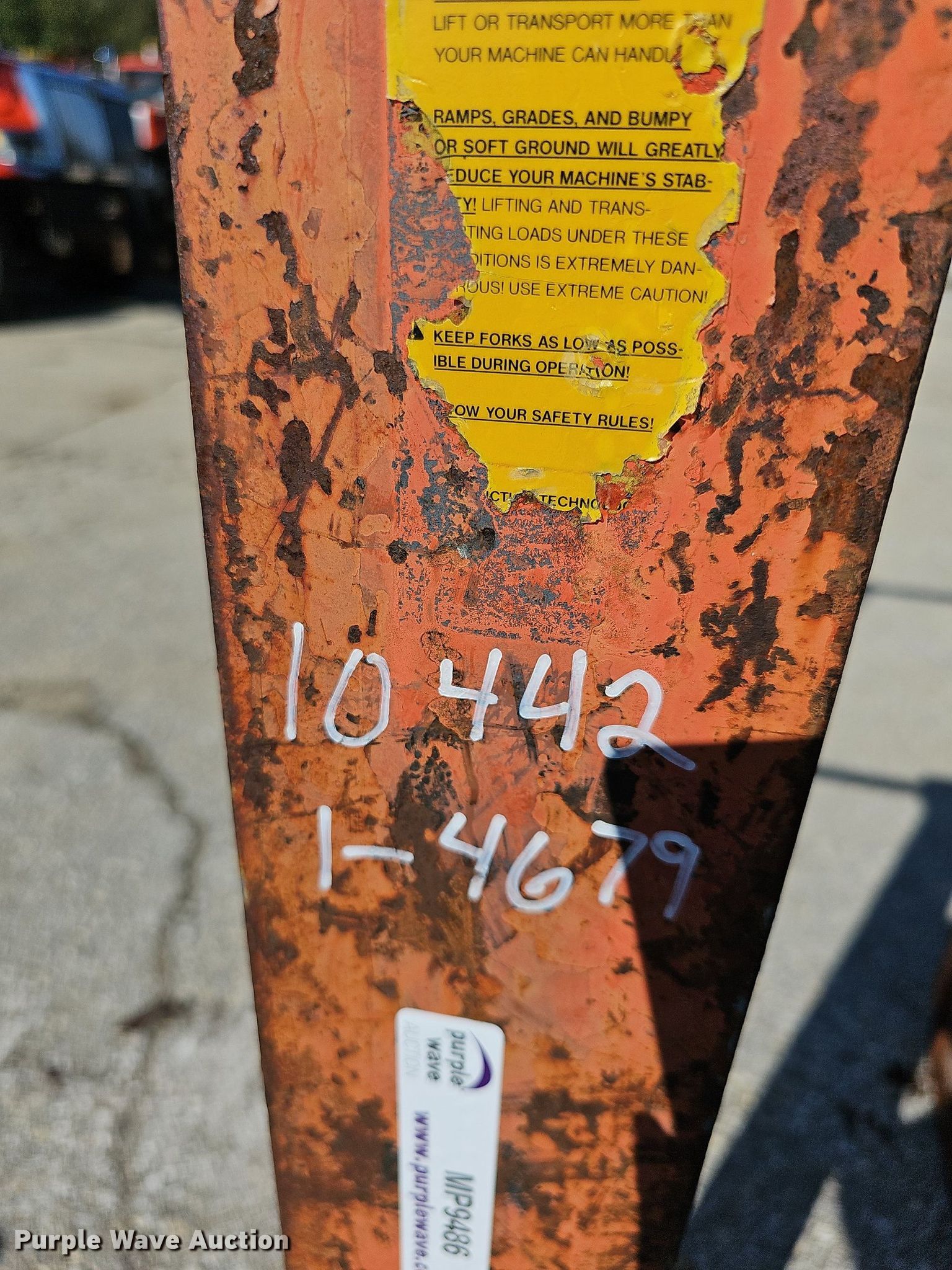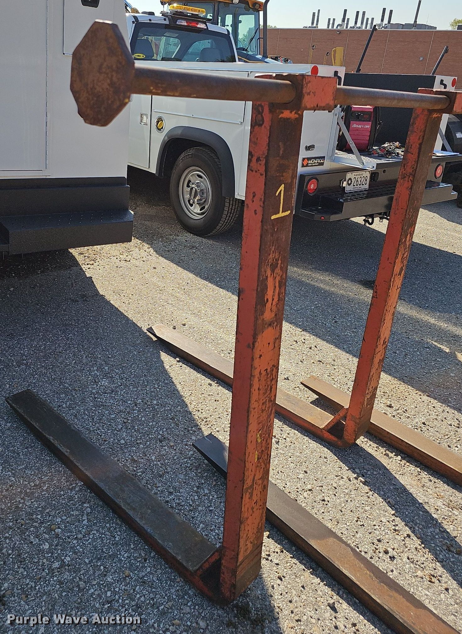 Purple Wave is selling a used Wheel Loader Attach. in Kansas. This item is a 42"L forks with the following: KDOT ID: 10442