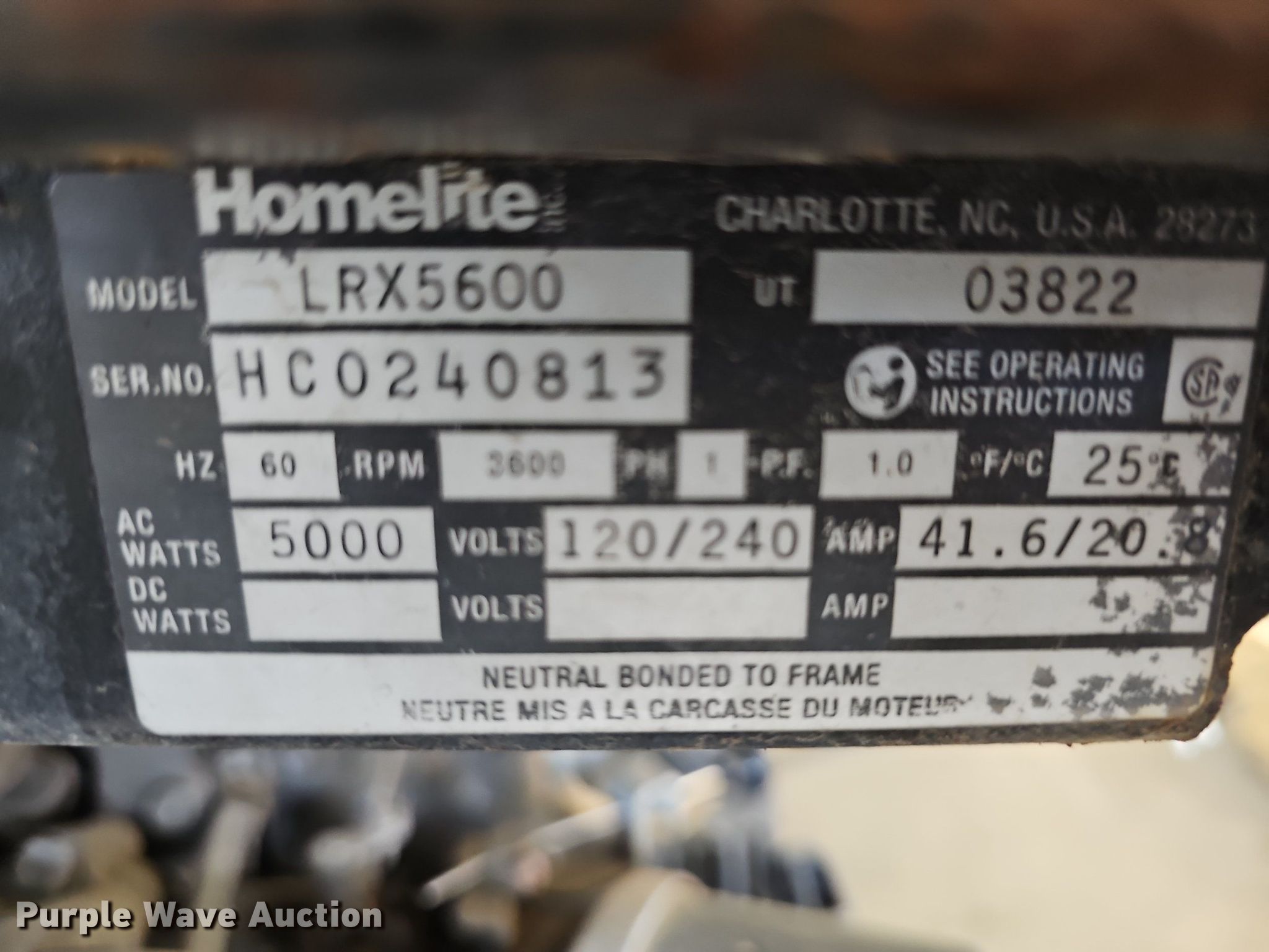 Take a look at this used 2001 Homelite LRXE5600 generator being sold on October 17th, 2023 in the SOLD! October 17 Kansas Department of Transportation Auction made by Homelite. Take a look at all of the item information below or take a look at similar auctions for Generators and Light Plants.