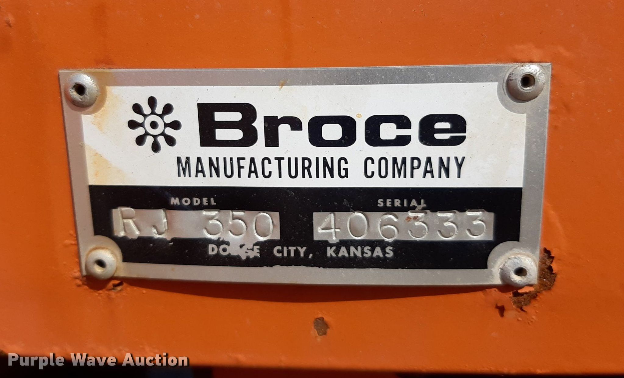 Purple Wave is selling a used Broom in Kansas. This item is a 2008 Broce RJ350 broom with the following: Hours: 1,311 on meter, Serial: 406333, KDOT ID: 689-5028