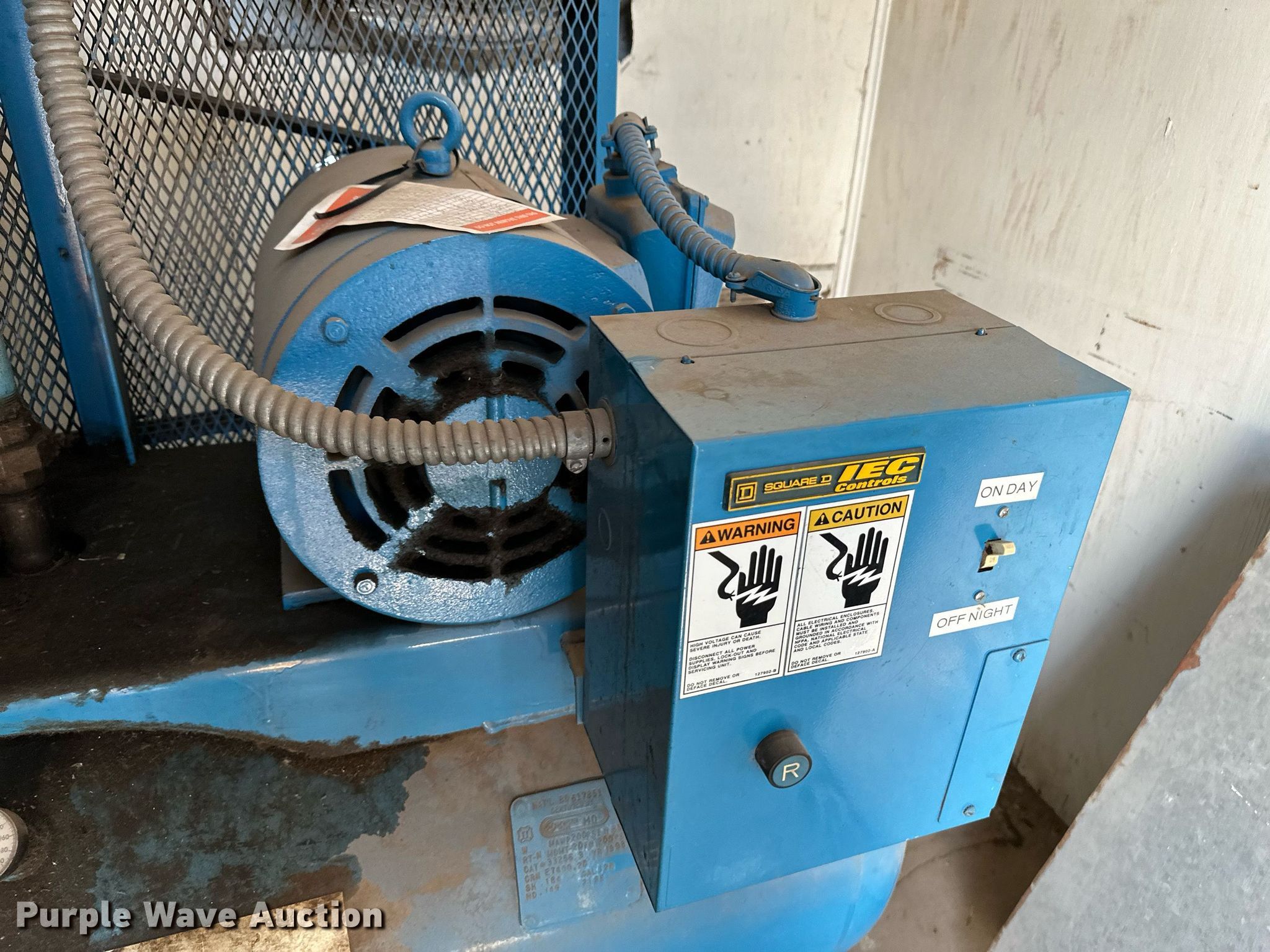 Manchester air compressor. KDOT ID: 50621. Electric Motor Leeson N254T 17DB1, HP: 15, Volts: 208-230/460, Phase: Three. Features Tank capacity: 120 gallons. Notes Building included, Unknown operating condition. Kansas Department of Transportation - Hutchinson Shop. 500 N. Hendricks. Hutchinson, KS 67501