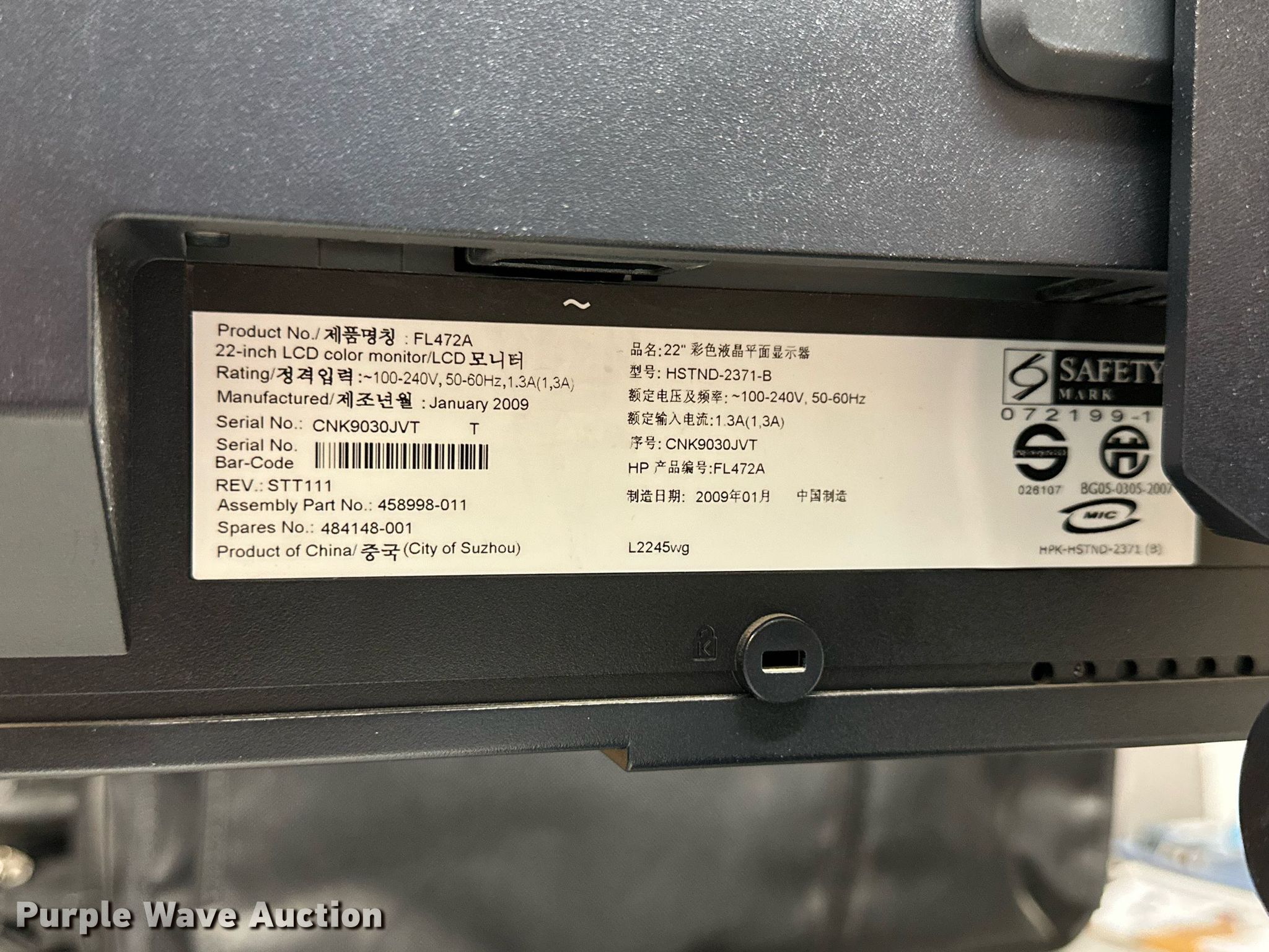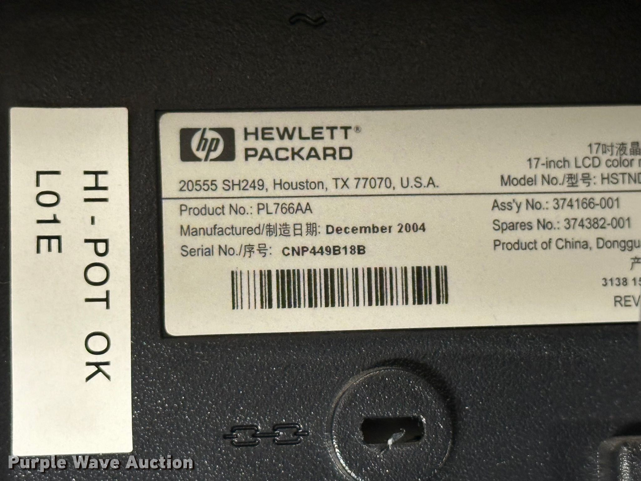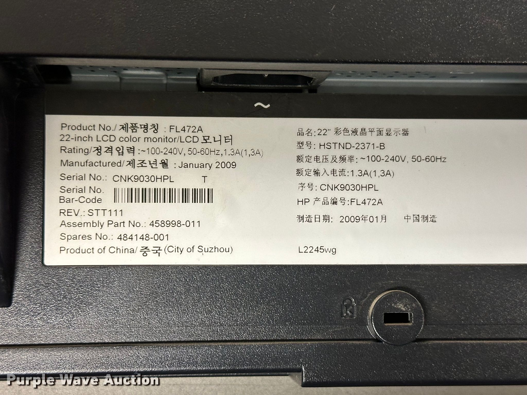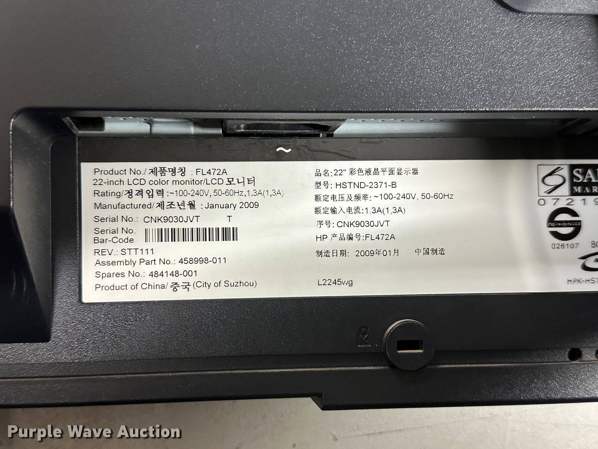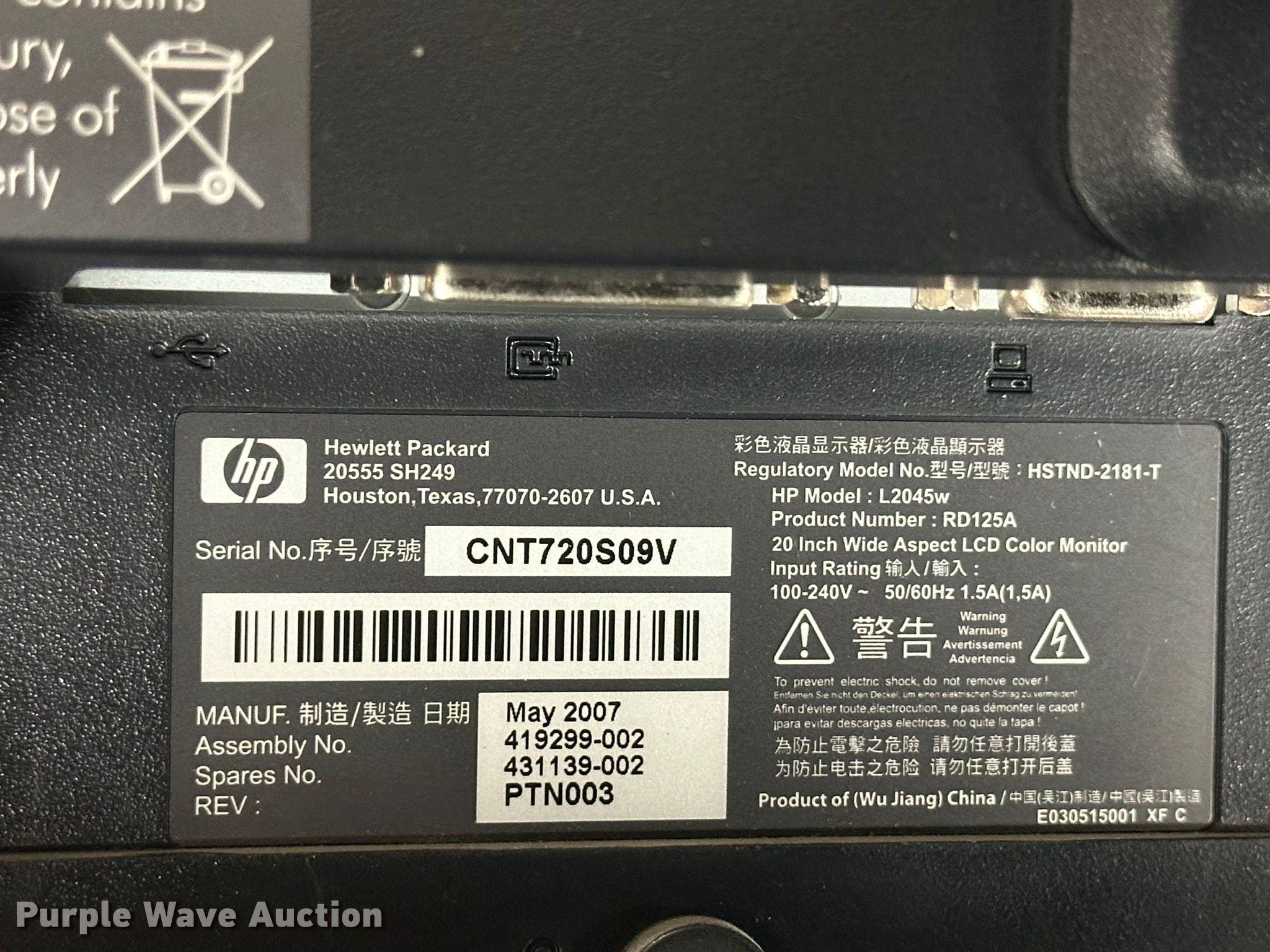 Purple Wave is selling a used Computers in Kansas. This item is a (10) HP monitors with the following: (2) model: L1950, Model: LA1951G, Model: L1730, (2) model: L1740, Model: L1925, Model: L2045W, (2) model: L2245WG, KDOT ID: D3-23101710