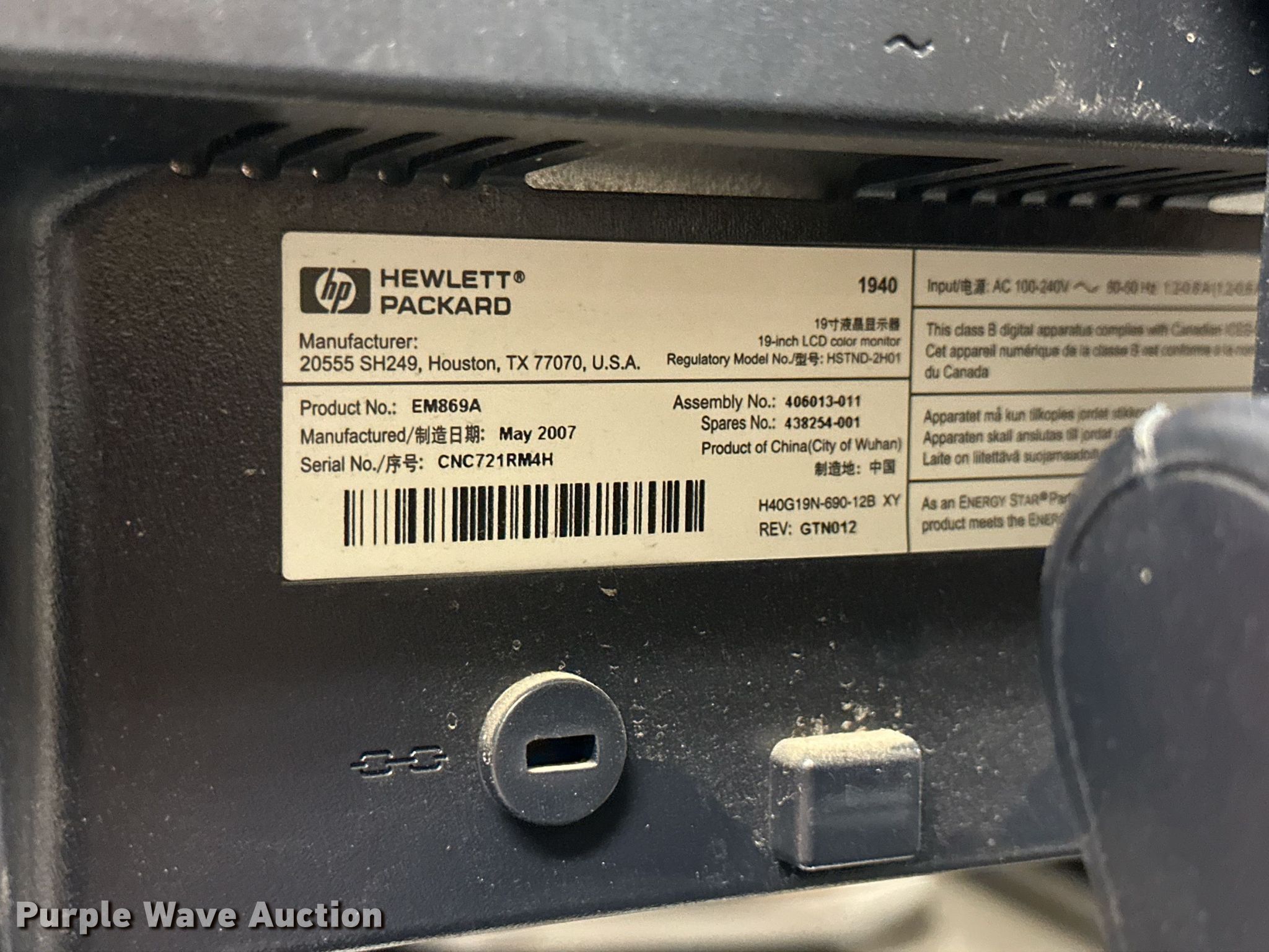 (10) HP monitors. (2) model: L1950, Model: LA1951G, Model: L1730, (2) model: L1740, Model: L1925, Model: L2045W, (2) model: L2245WG, KDOT ID: D3-23101710. View inventory for more information. Purple Wave reserves the right to obtain additional buyer information prior to item removal. Kansas Department of Transportation - Norton IT. 312 S 2nd Ave. Norton, KS 67654