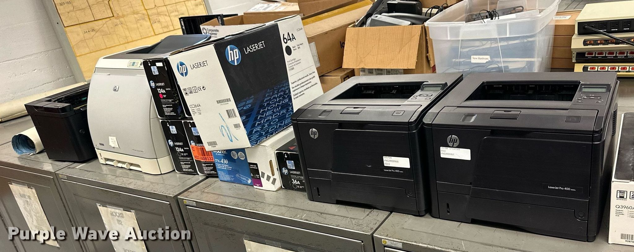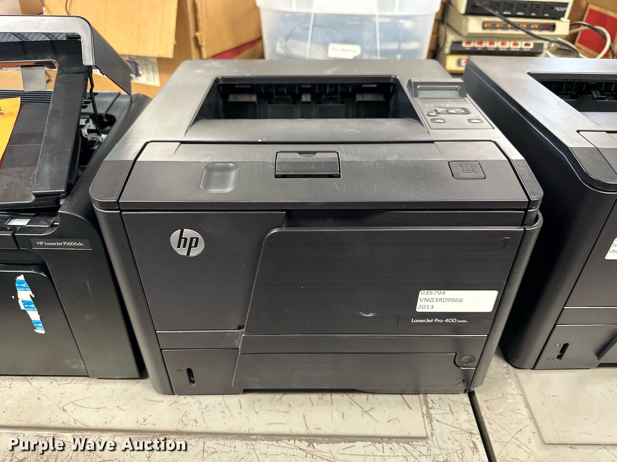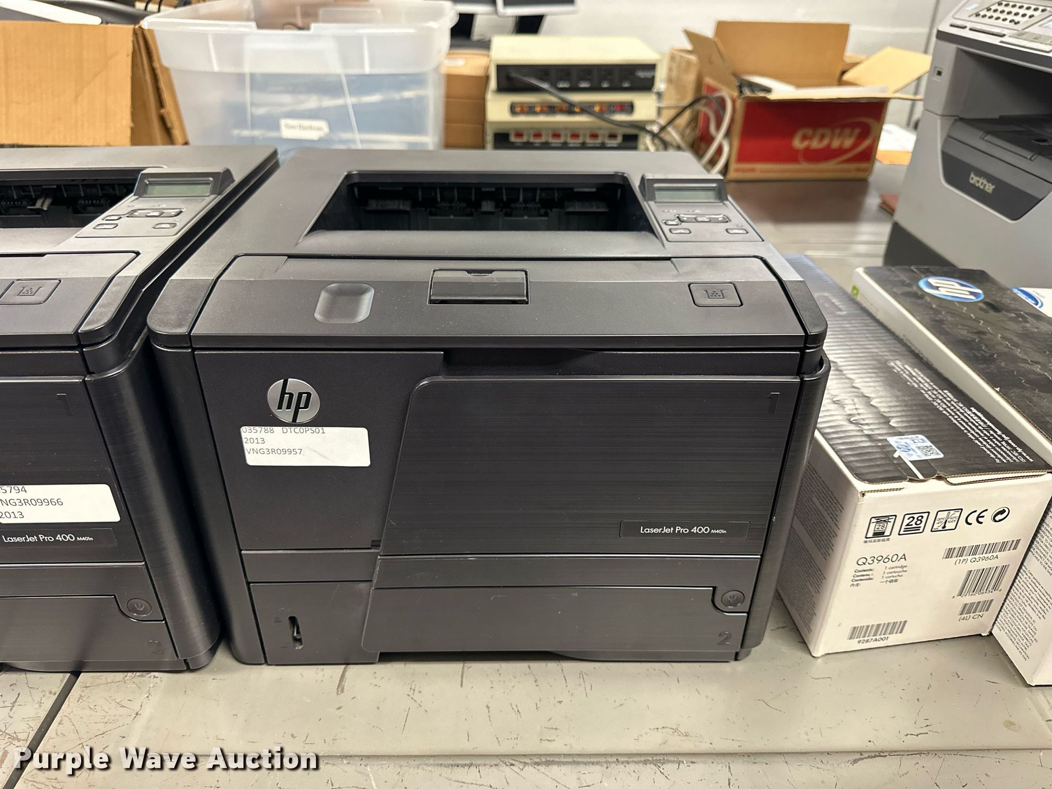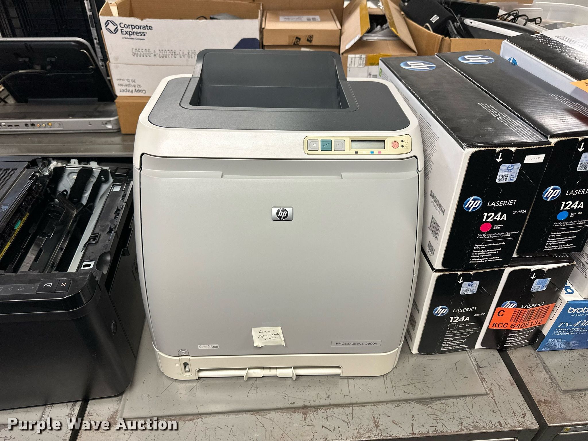 Purple Wave is selling a used Copy or Printing Machine in Kansas. This item is a (5) printers with the following: (2) HP Laserjet Pro 400 M401, HP Laserjet 2600N, Brother MCF-8480DN, HP Laserjet Pro P1606DN, (10) ink cartridges, KDOT ID: D3-23101702