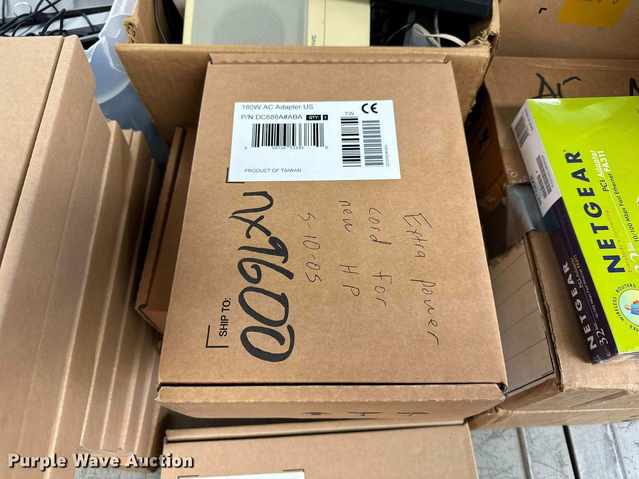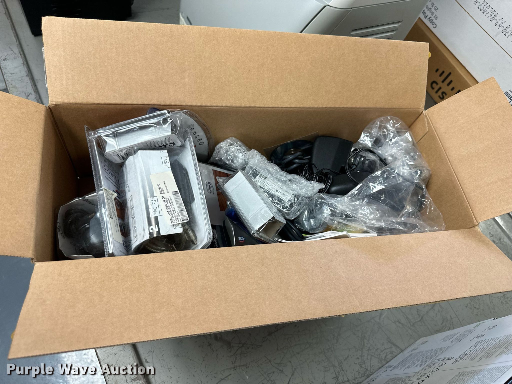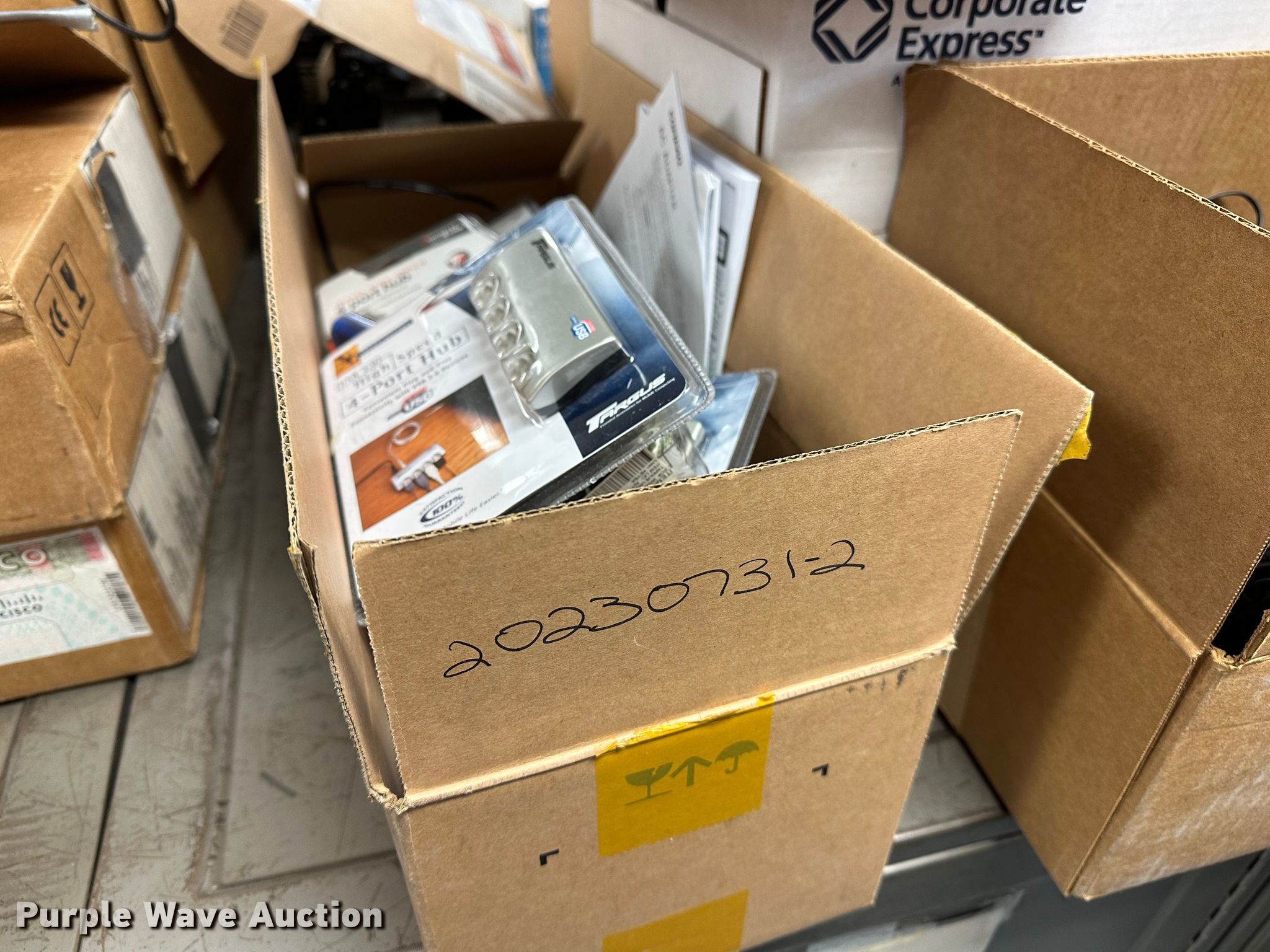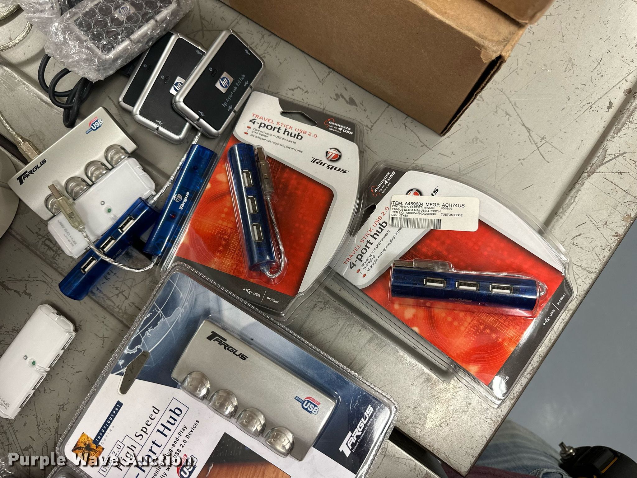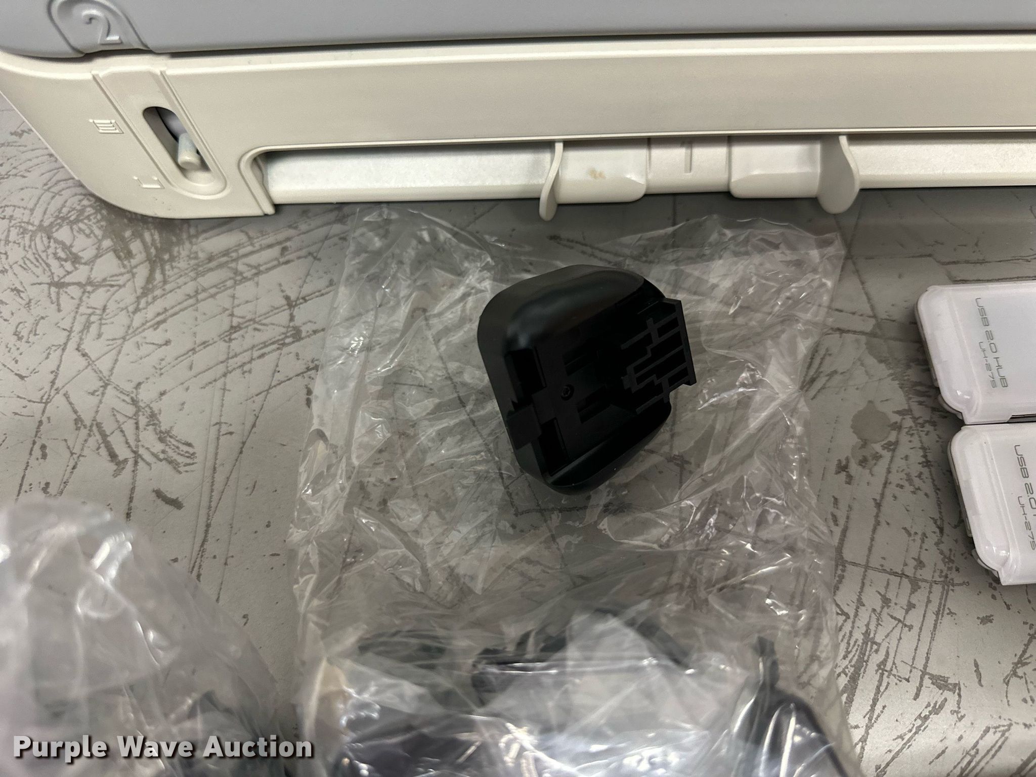 Purple Wave is selling a used Electronics in Kansas. This item is a Electronics with the following: (5) Axis 70U network document servers, (5) HP PB994A batteries, (7) HP PB992A batteries, HP PB993A battery, (7) HP QK643AA batteries, (18) NX 9600 180W AC adapters, (3) Sierra Airlink LS300, (3) Raven X wireless V4228, (7) DSL routers, (4) sets of speakers, (59) HP speaker bars, (8) Tarsus port hubs, (7) HP four port USB hubs, Armada HDD BAY, (30) DVI cables, (31) power supplies, (4) computer power controls, Netgear FA300, (6) Netgear eight port hubs, (2) HP Jetdirect300x, (2) HP Jetdirect175x, Jabara GN9330E, (19) wall adapters, (2) Linksys Wireless G access point WAP54G, (2) Linksys WPC54G, Laptop monitor stand, HP XB2000 Notebook expansion base, Intel five port hub, KDOT ID: D3-23101703