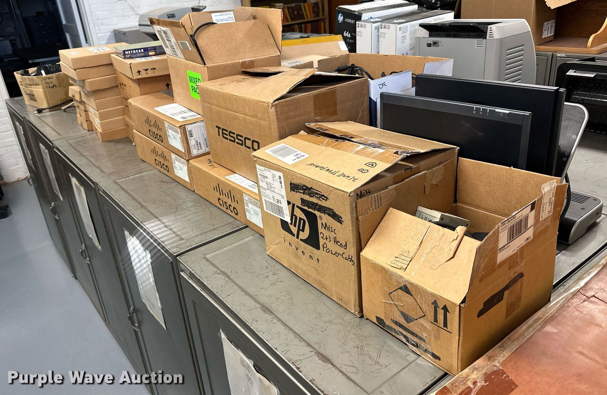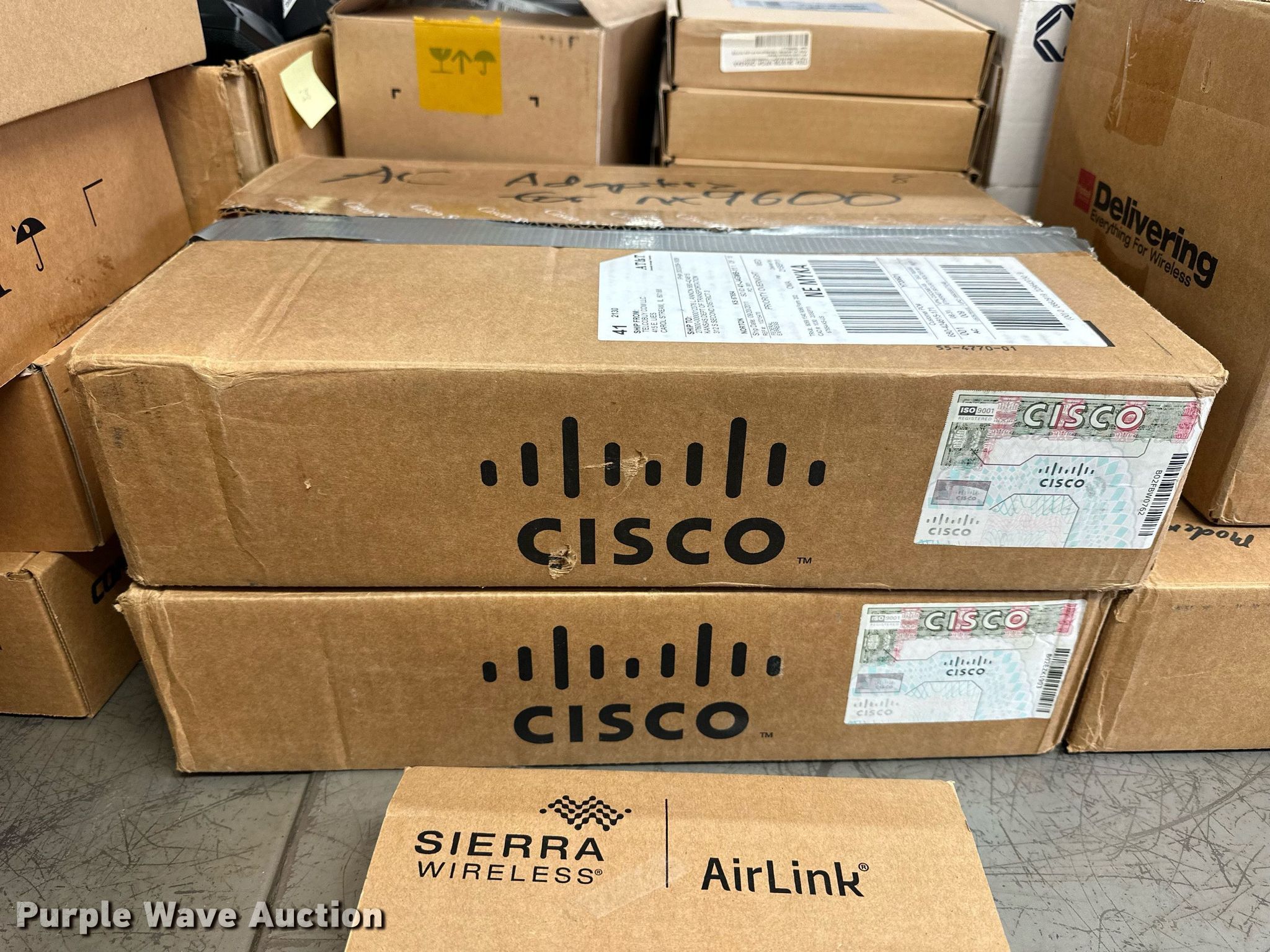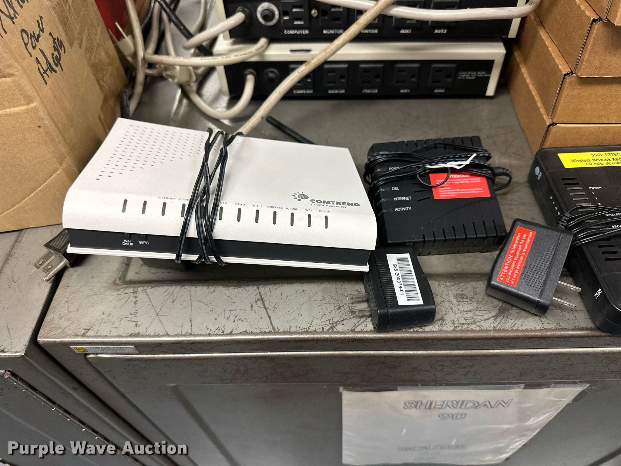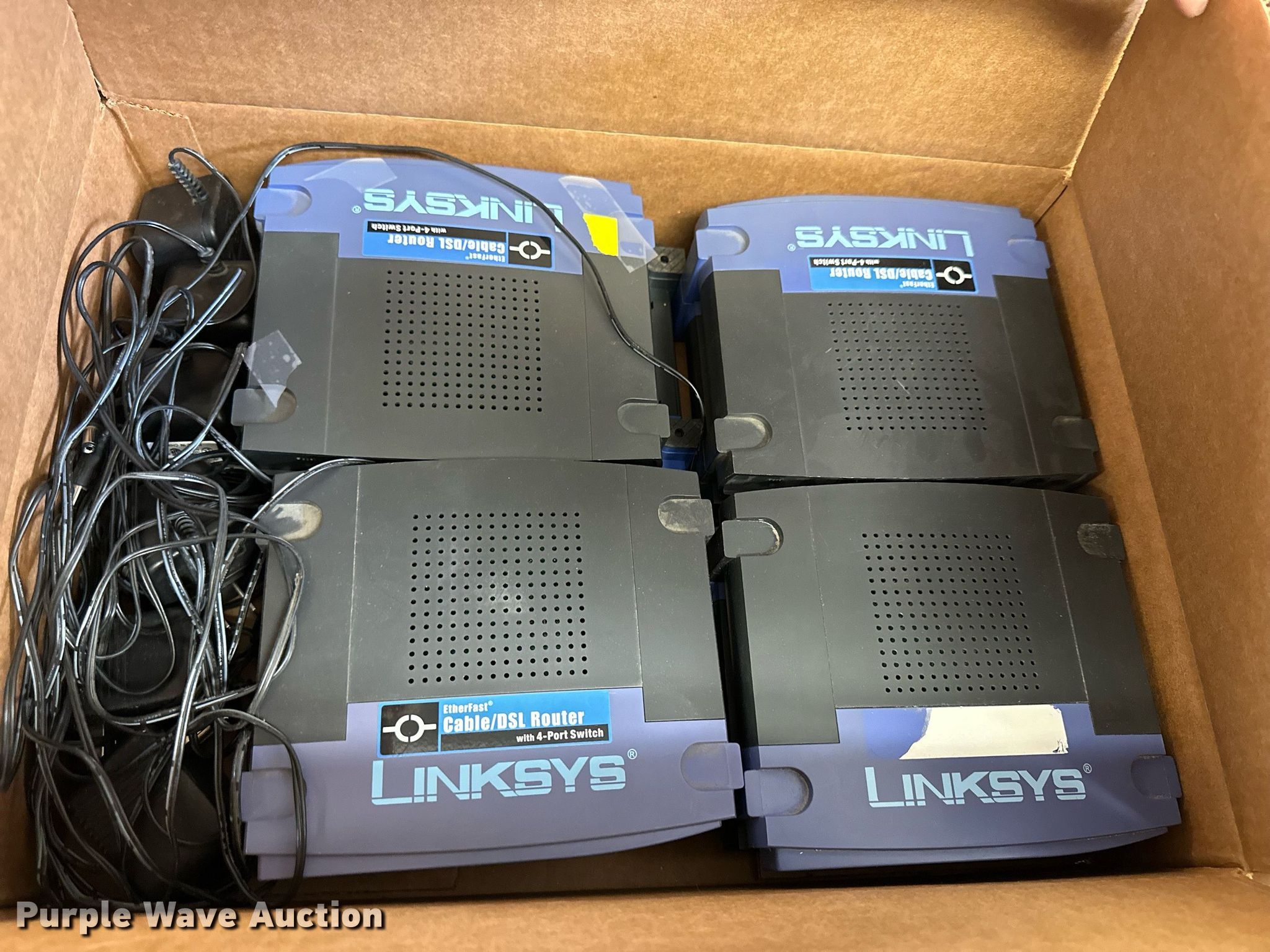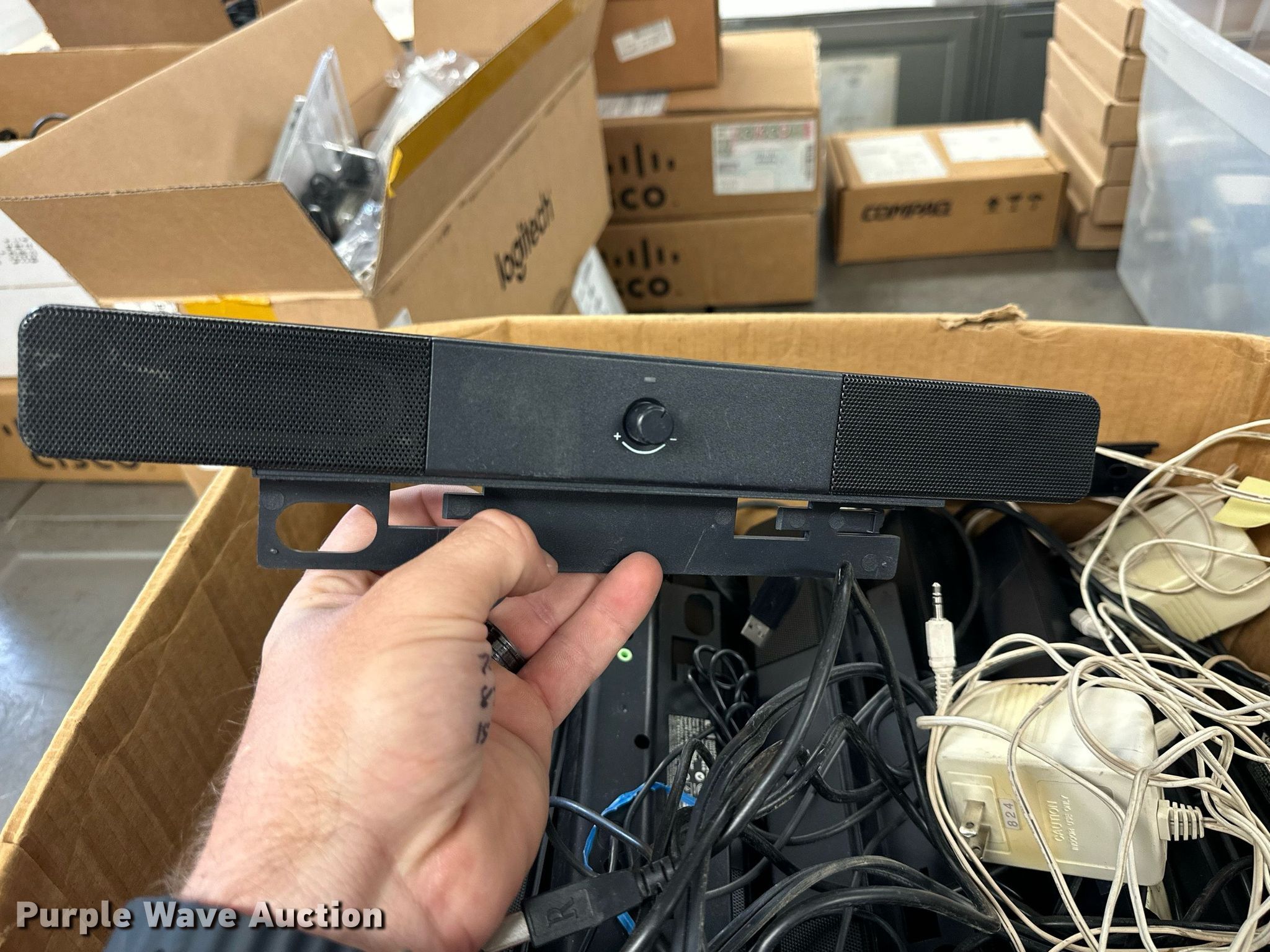 Purple Wave is selling a used Electronics in Kansas. This item is a Electronics with the following: (5) Axis 70U network document servers, (5) HP PB994A batteries, (7) HP PB992A batteries, HP PB993A battery, (7) HP QK643AA batteries, (18) NX 9600 180W AC adapters, (3) Sierra Airlink LS300, (3) Raven X wireless V4228, (7) DSL routers, (4) sets of speakers, (59) HP speaker bars, (8) Tarsus port hubs, (7) HP four port USB hubs, Armada HDD BAY, (30) DVI cables, (31) power supplies, (4) computer power controls, Netgear FA300, (6) Netgear eight port hubs, (2) HP Jetdirect300x, (2) HP Jetdirect175x, Jabara GN9330E, (19) wall adapters, (2) Linksys Wireless G access point WAP54G, (2) Linksys WPC54G, Laptop monitor stand, HP XB2000 Notebook expansion base, Intel five port hub, KDOT ID: D3-23101703