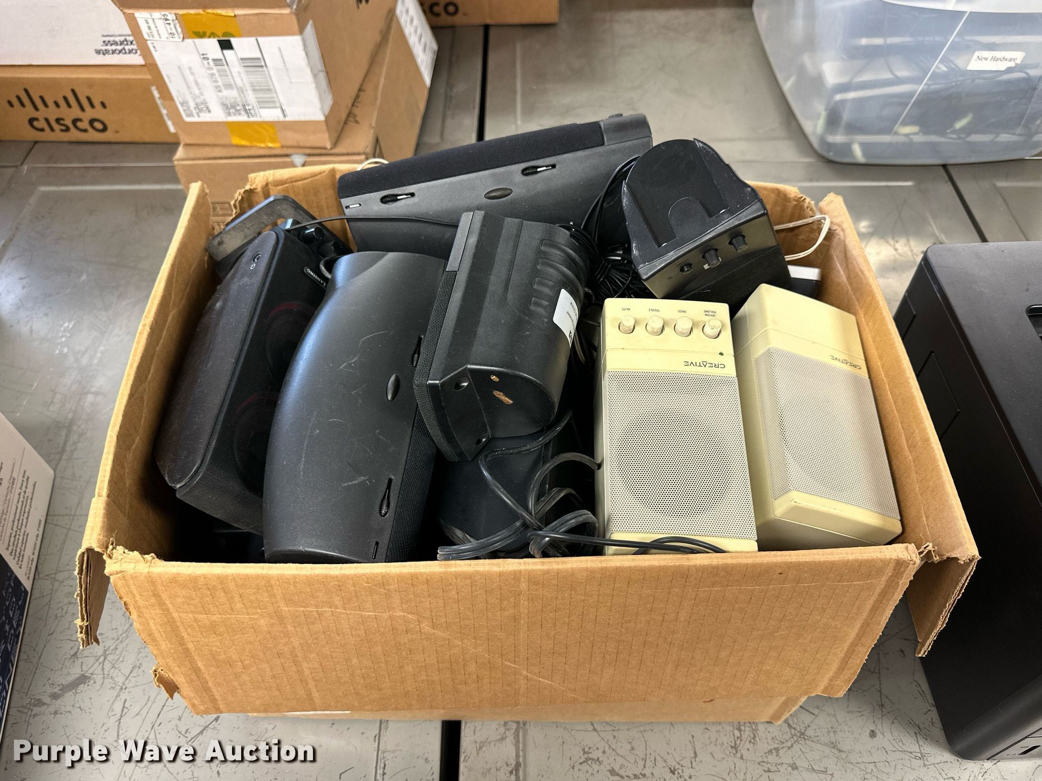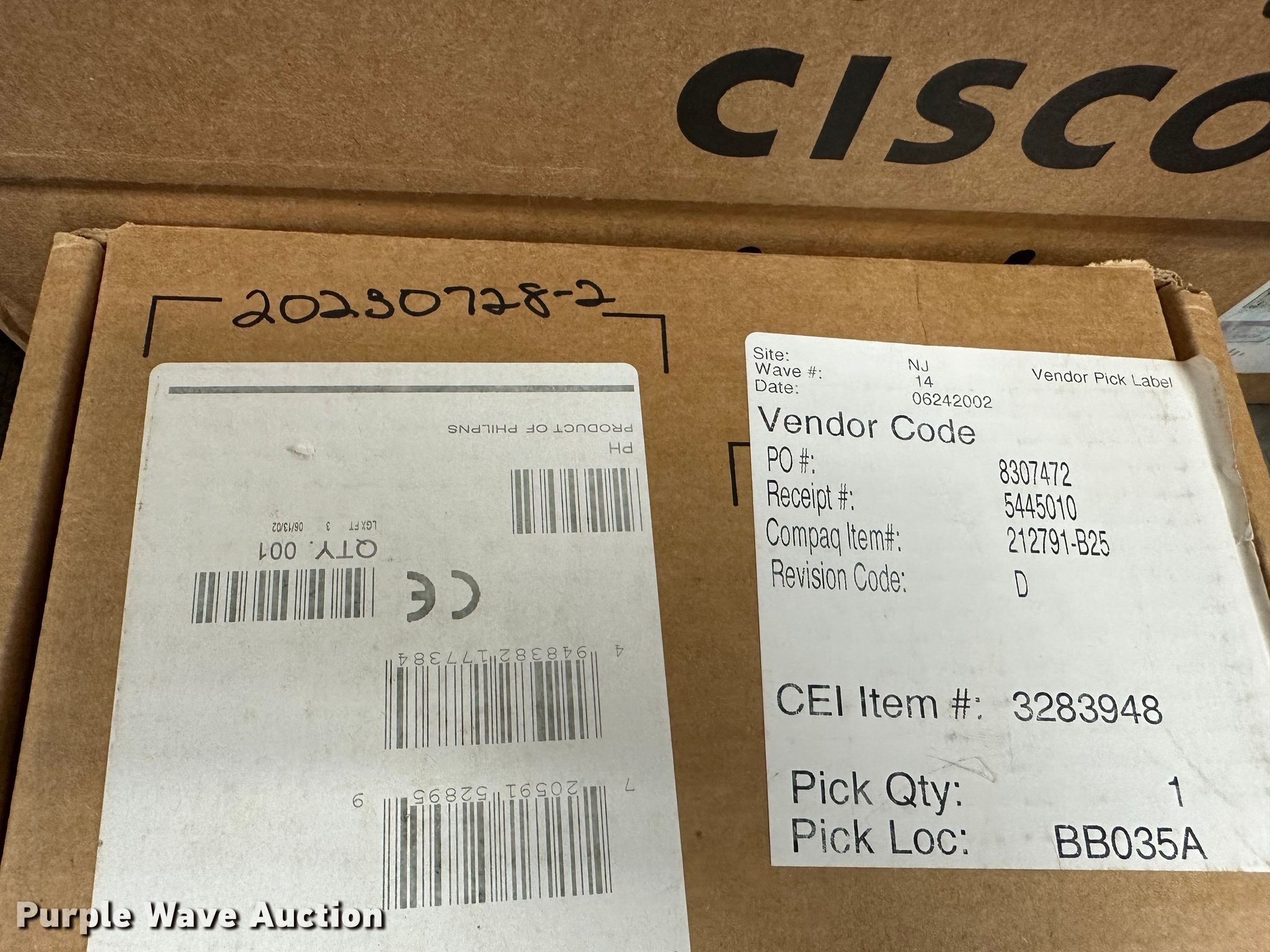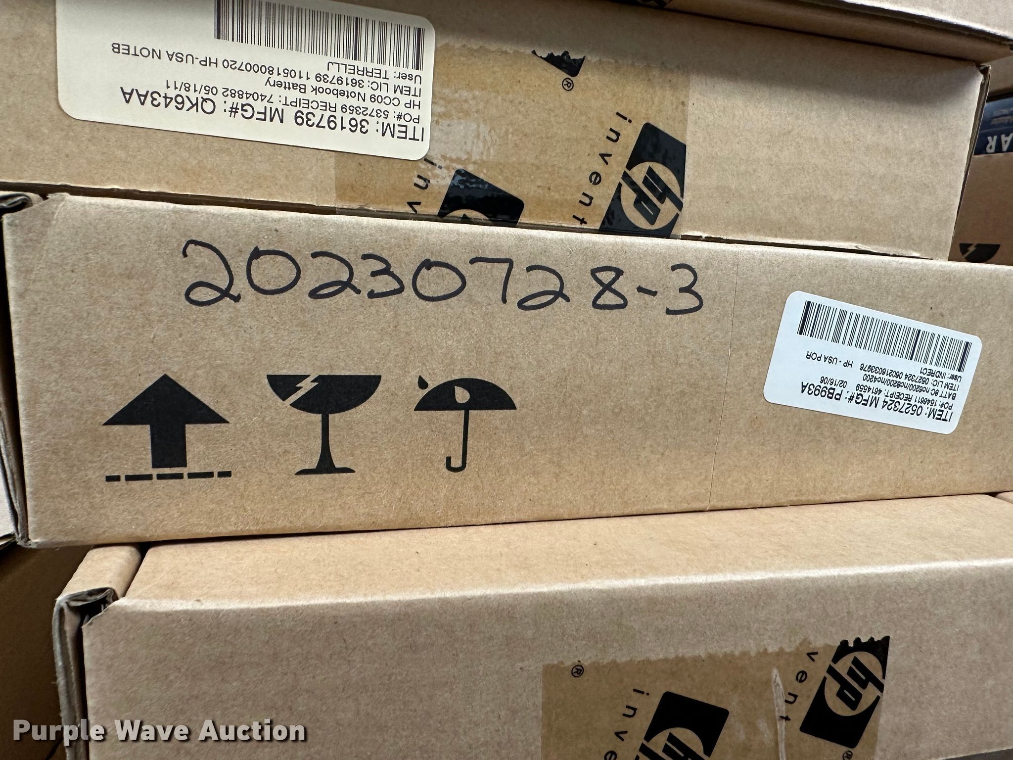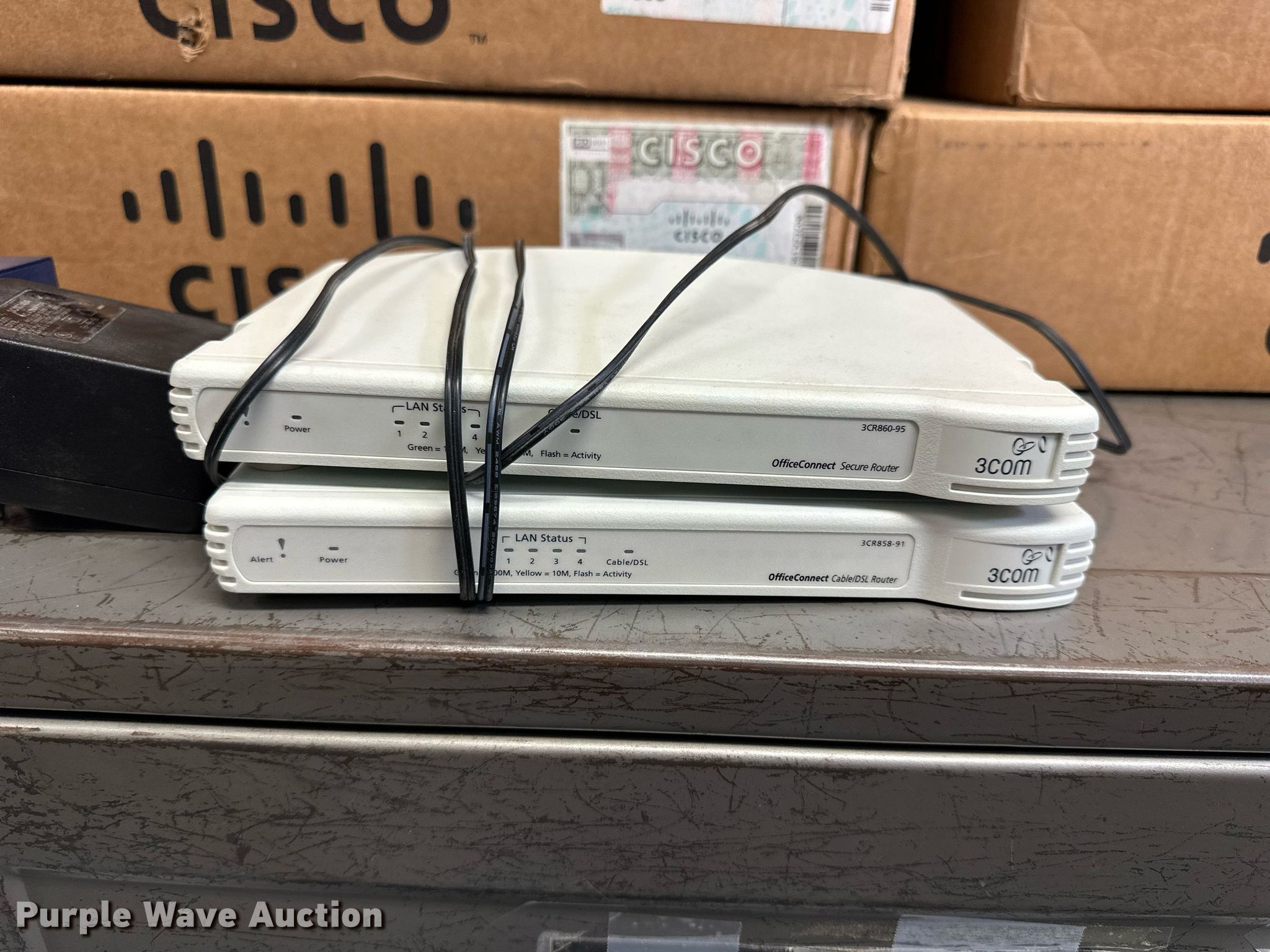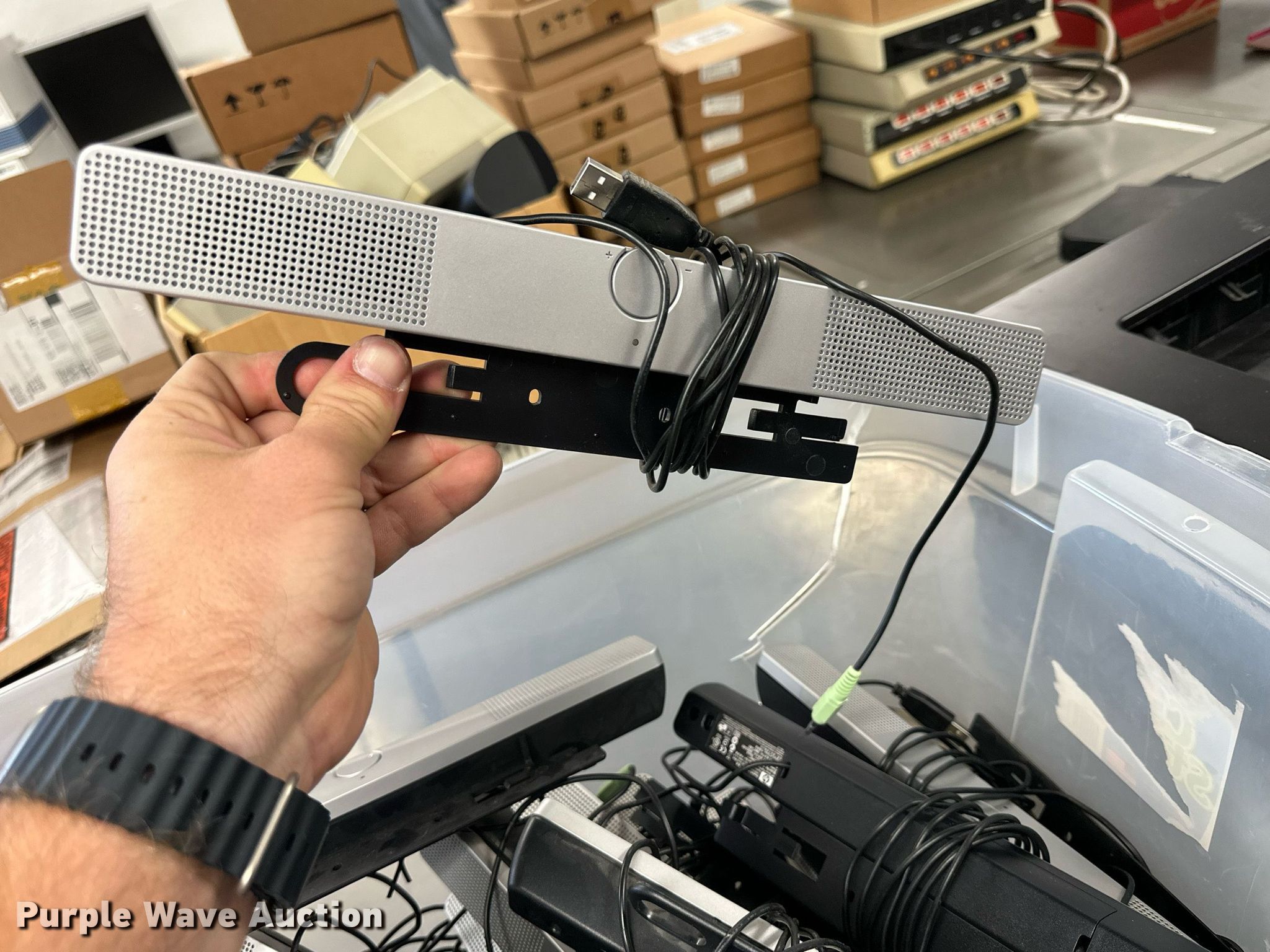 Purple Wave is selling a used Electronics in Kansas. This item is a Electronics with the following: (5) Axis 70U network document servers, (5) HP PB994A batteries, (7) HP PB992A batteries, HP PB993A battery, (7) HP QK643AA batteries, (18) NX 9600 180W AC adapters, (3) Sierra Airlink LS300, (3) Raven X wireless V4228, (7) DSL routers, (4) sets of speakers, (59) HP speaker bars, (8) Tarsus port hubs, (7) HP four port USB hubs, Armada HDD BAY, (30) DVI cables, (31) power supplies, (4) computer power controls, Netgear FA300, (6) Netgear eight port hubs, (2) HP Jetdirect300x, (2) HP Jetdirect175x, Jabara GN9330E, (19) wall adapters, (2) Linksys Wireless G access point WAP54G, (2) Linksys WPC54G, Laptop monitor stand, HP XB2000 Notebook expansion base, Intel five port hub, KDOT ID: D3-23101703