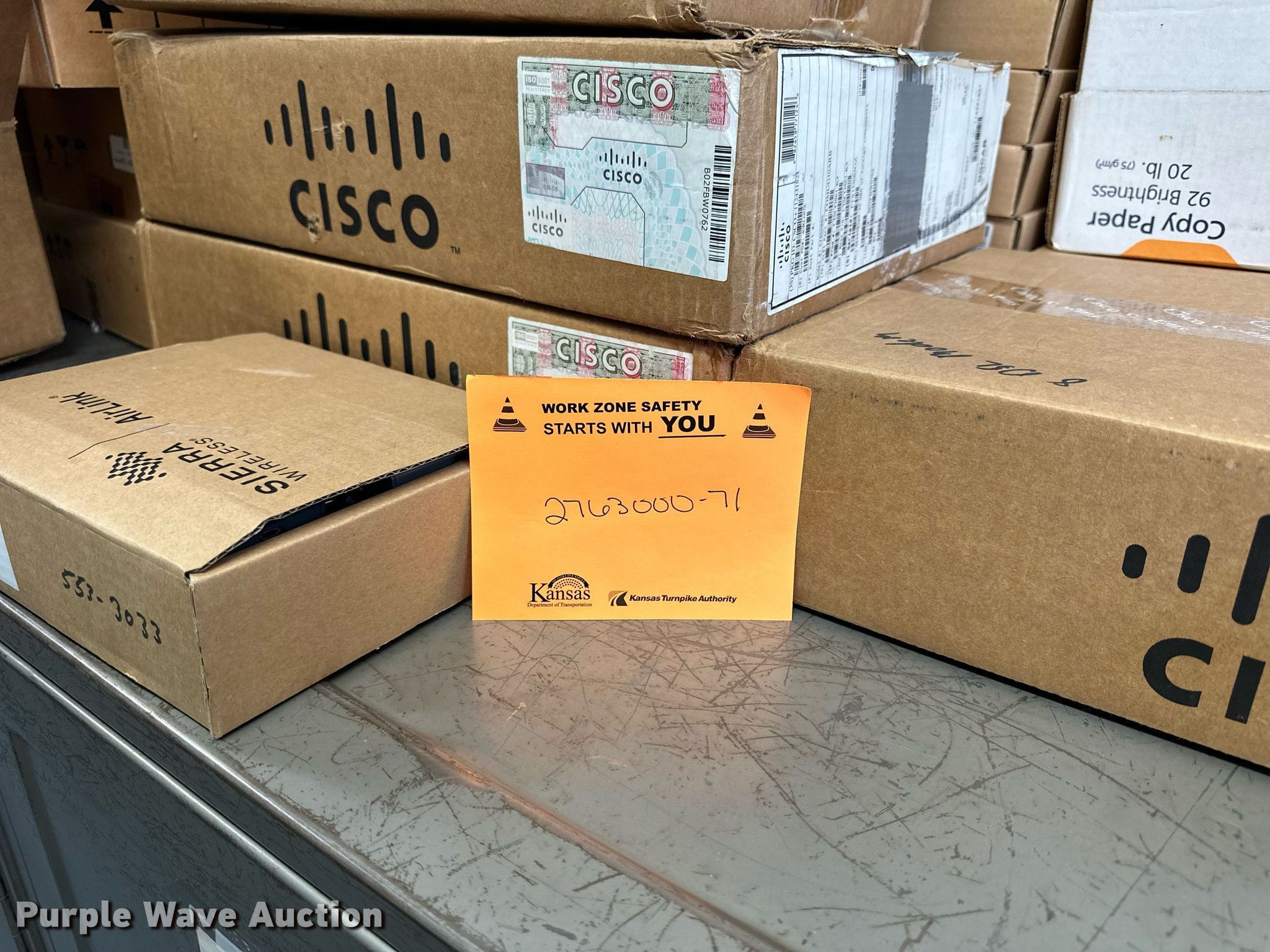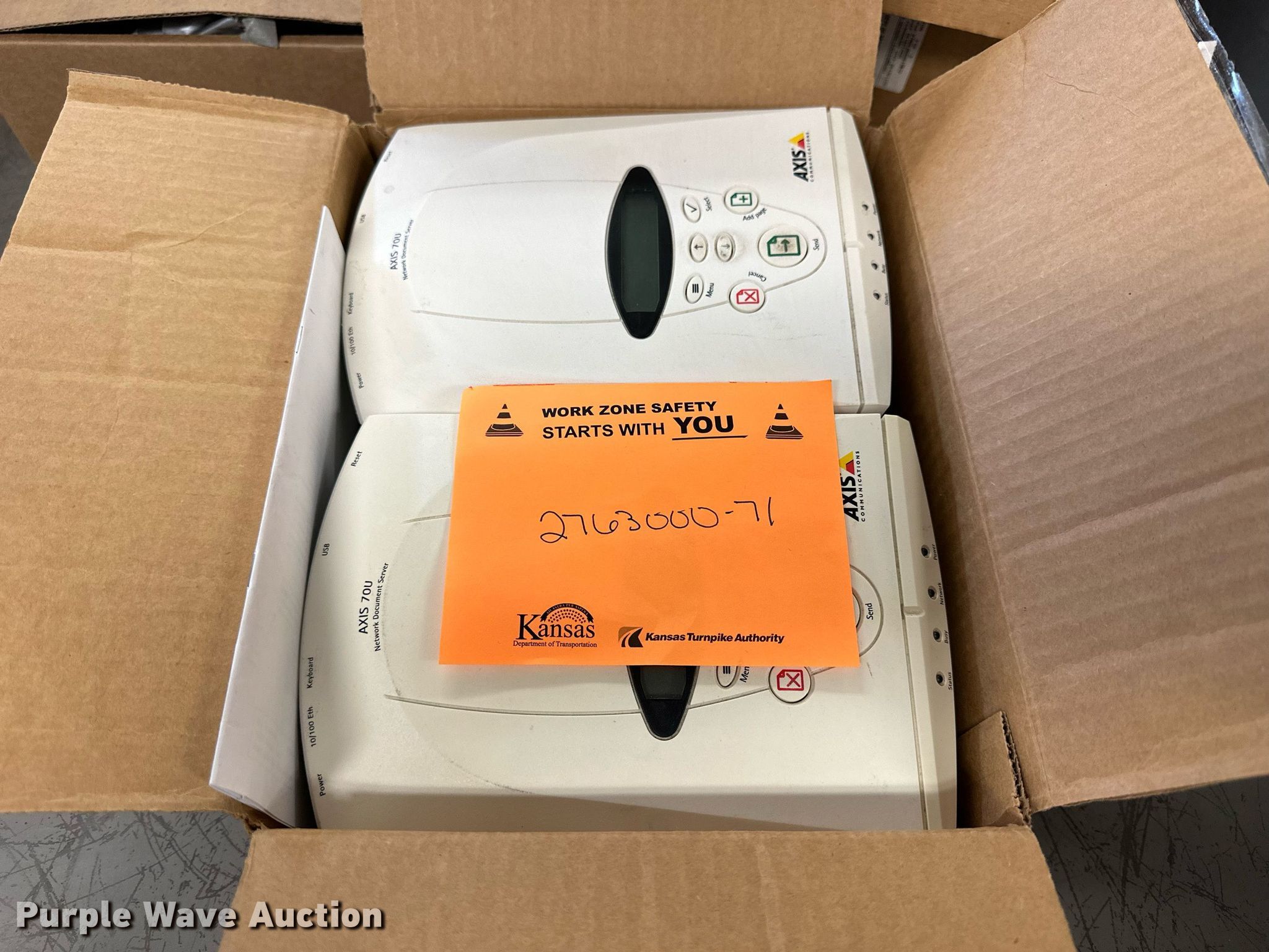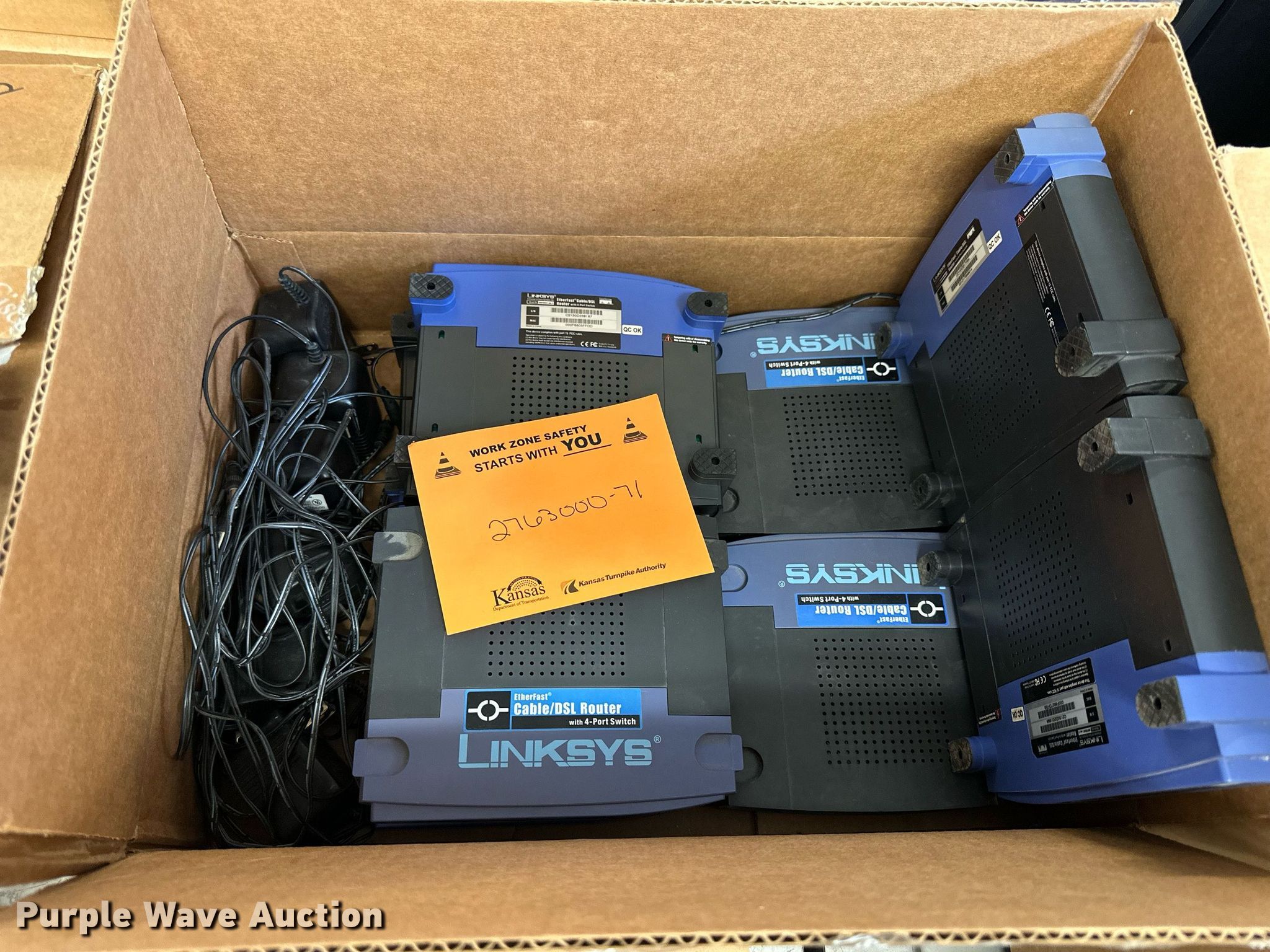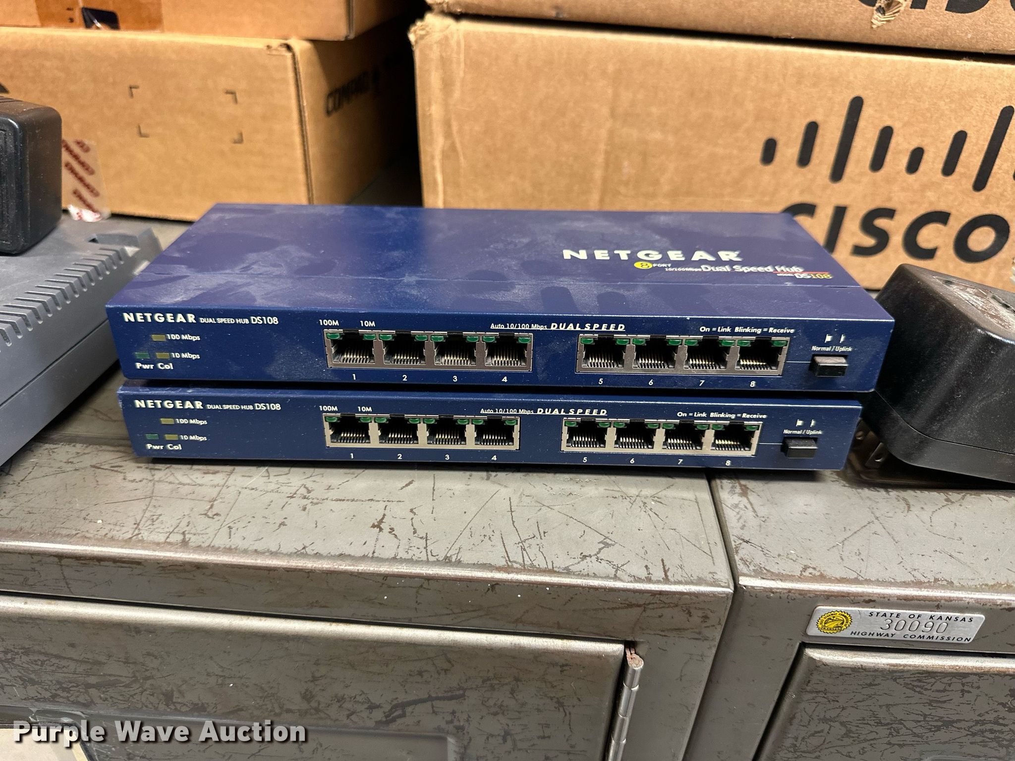Electronics. (5) Axis 70U network document servers, (5) HP PB994A batteries, (7) HP PB992A batteries, HP PB993A battery, (7) HP QK643AA batteries, (18) NX 9600 180W AC adapters, (3) Sierra Airlink LS300 , (3) Raven X wireless V4228, (7) DSL routers, (4) sets of speakers, (59) HP speaker bars, (8) Tarsus port hubs, (7) HP four port USB hubs, Armada HDD BAY, (30) DVI cables, (31) power supplies, (4) computer power controls, Netgear FA300, (6) Netgear eight port hubs, (2) HP Jetdirect300x, (2) HP Jetdirect175x, Jabara GN9330E, (19) wall adapters, (2) Linksys Wireless G access point WAP54G, (2) Linksys WPC54G, Laptop monitor stand, HP XB2000 Notebook expansion base, Intel five port hub, KDOT ID: D3-23101703. View inventory for more information. Purple Wave reserves the right to obtain additional buyer information prior to item removal. Kansas Department of Transportation - Norton IT. 312 S 2nd Ave. Norton, KS 67654