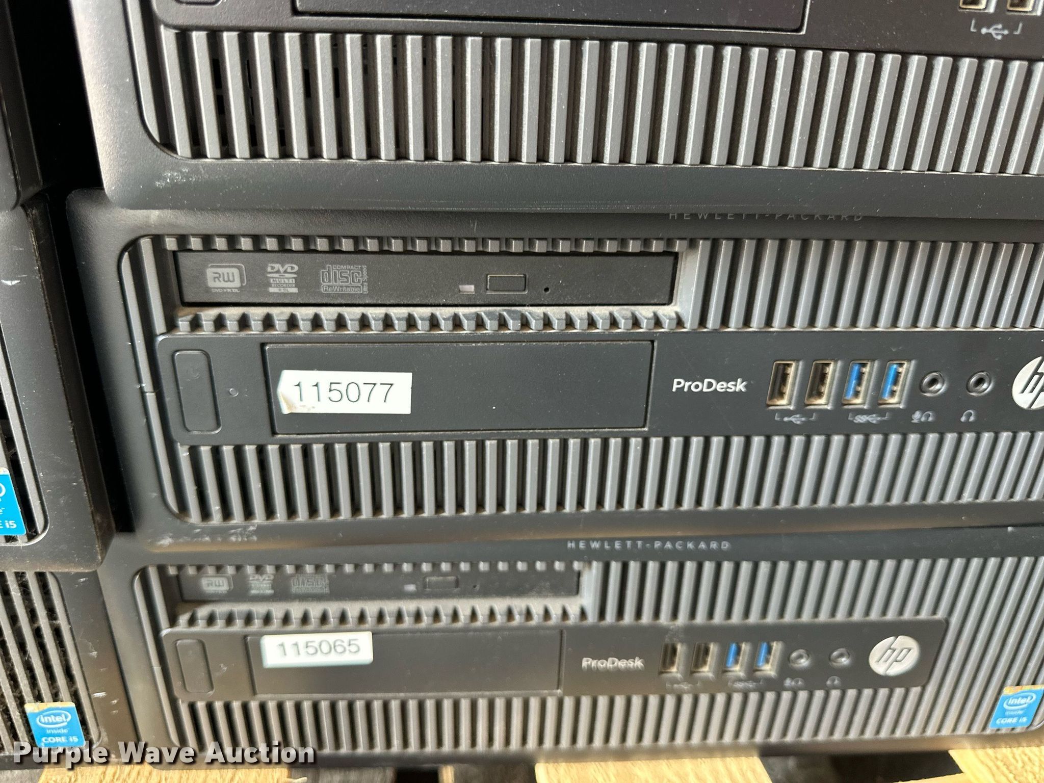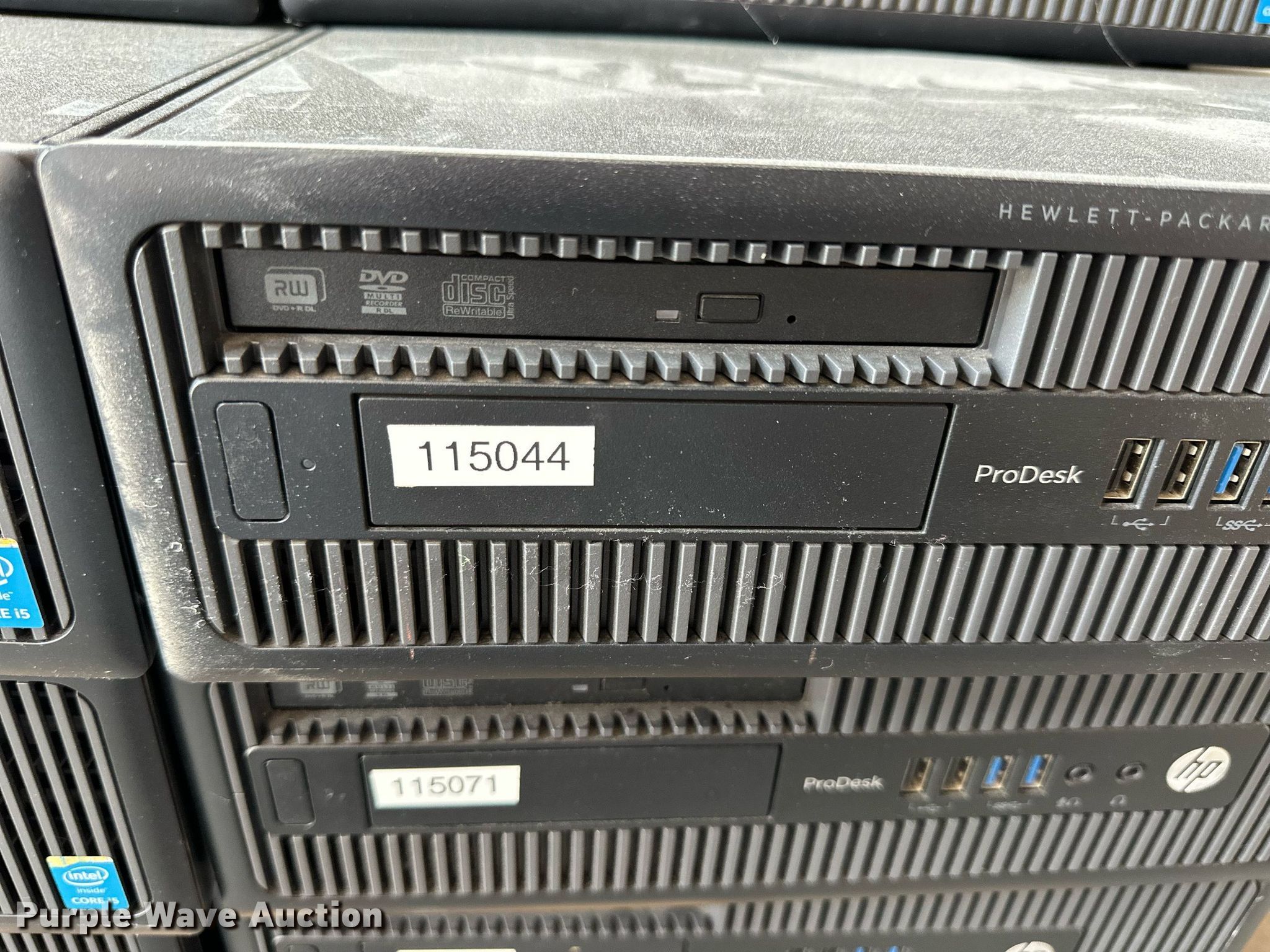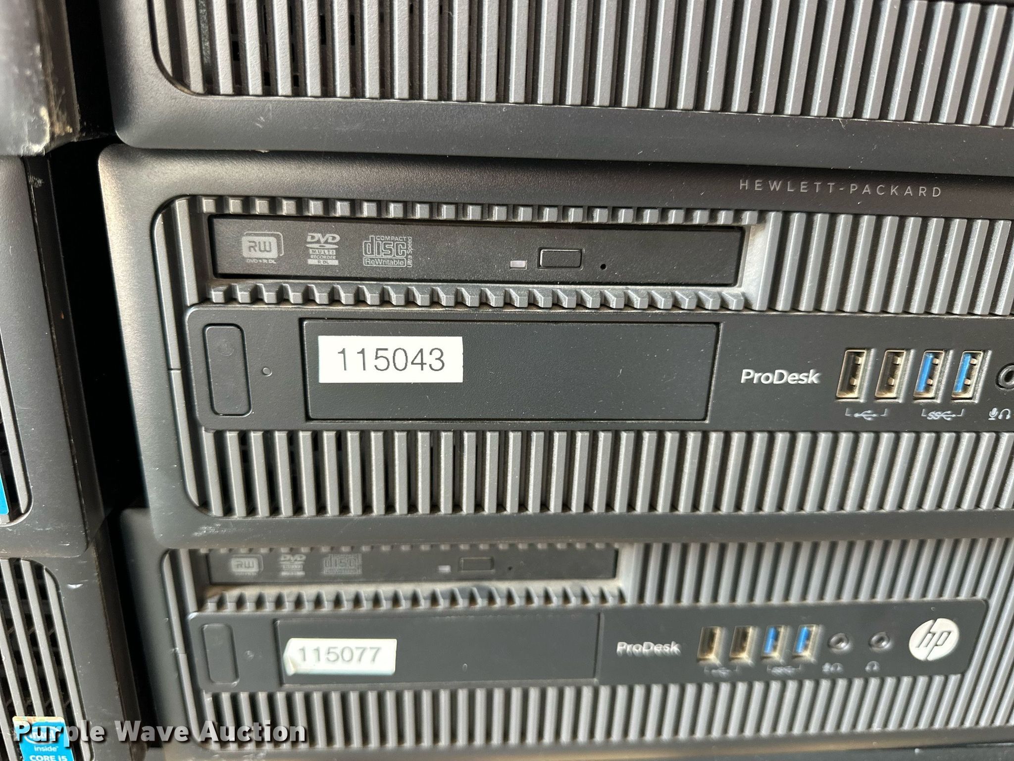 Purple Wave is selling a used Computers in Kansas. This item is a (27) HP Prodesk 600 G1 CPUs with the following: Intel i5-4590 processors, 3.30 GHz, 8 GB RAM, 500 GB HDD, Hard drives have been reformatted and no operating system installed, KDOT ID: D3-23101707