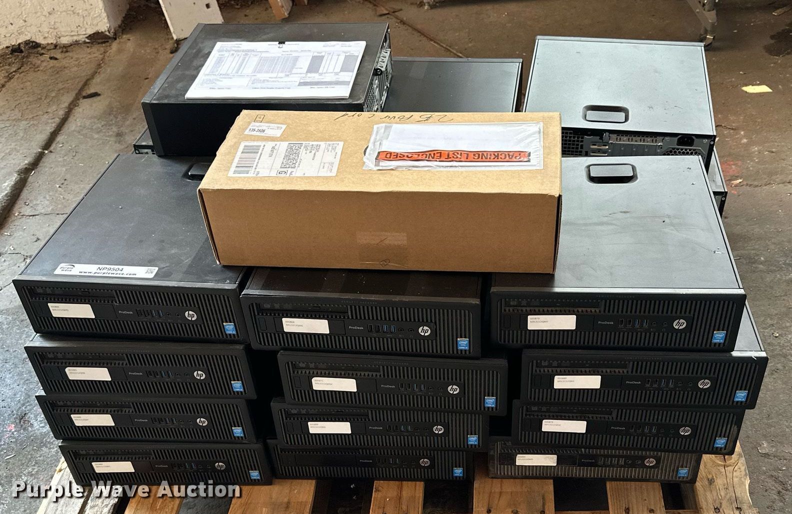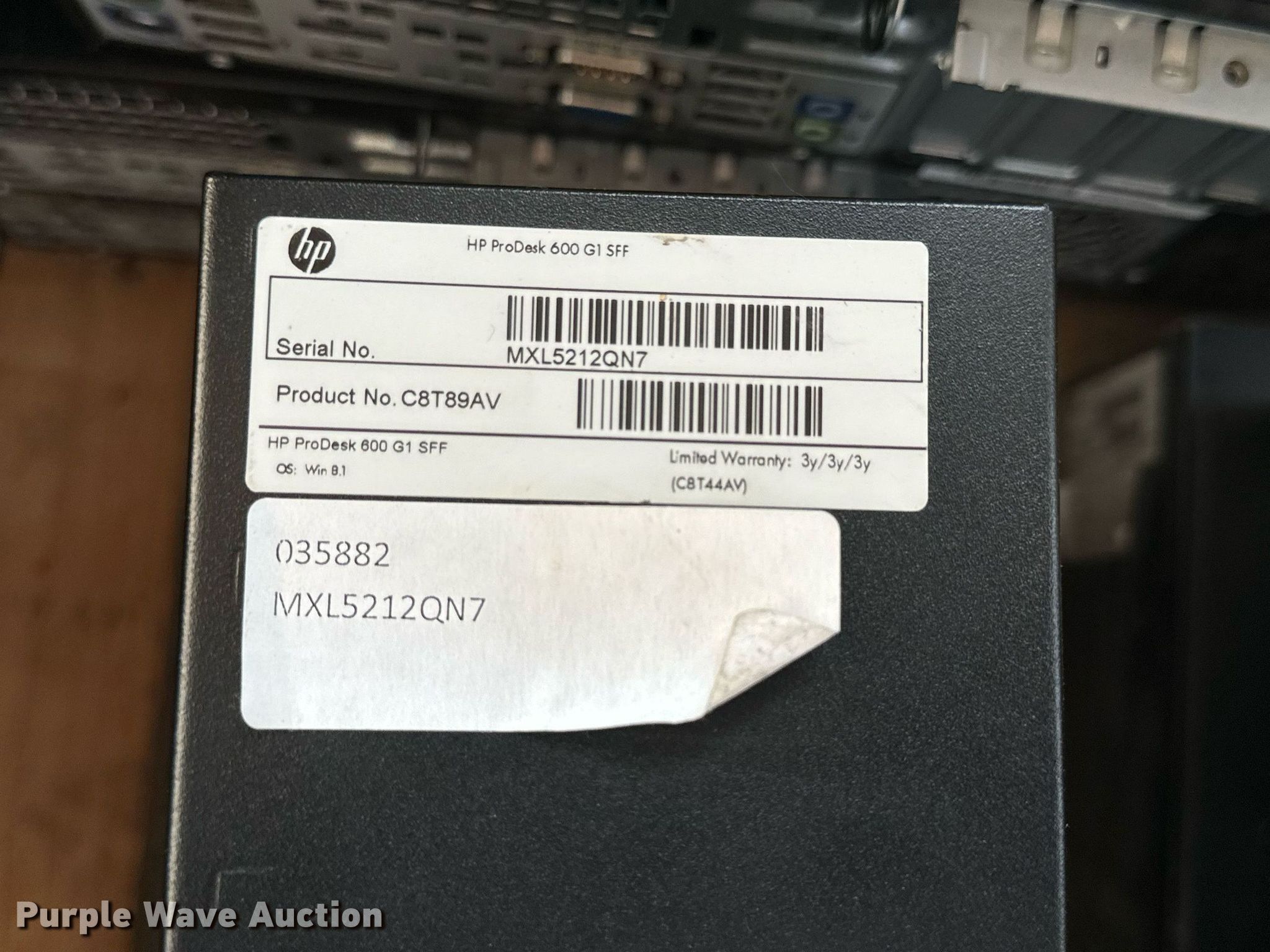 Purple Wave is selling a used Computers in Kansas. This item is a (25) HP Prodesk 600 G1 CPUs with the following: Intel i5-4590 processors, 3.3 GHz, 8 GB RAM, 500 GB HDD, Hard drives have been reformatted and no operating system installed, KDOT ID: D3-23101704