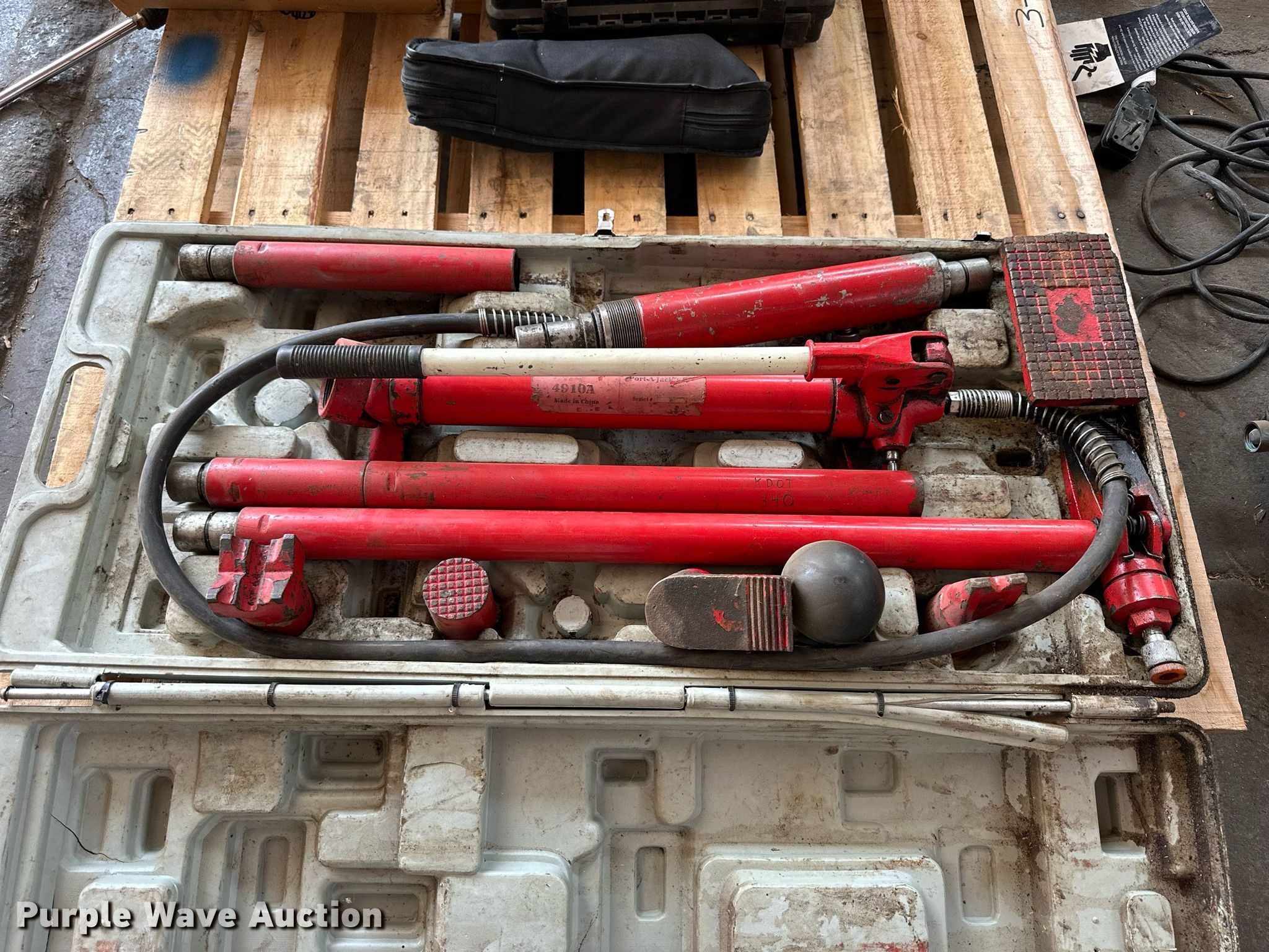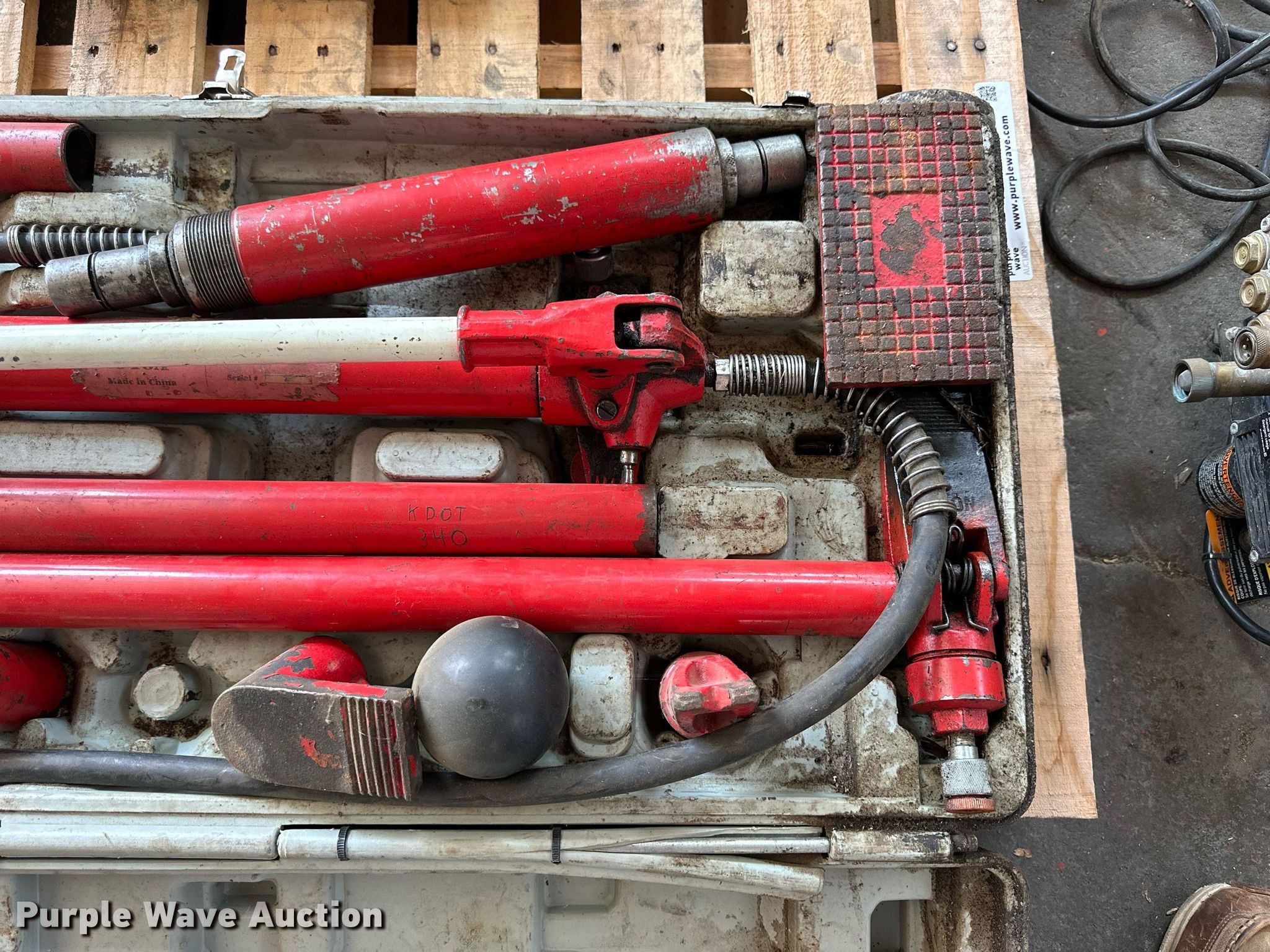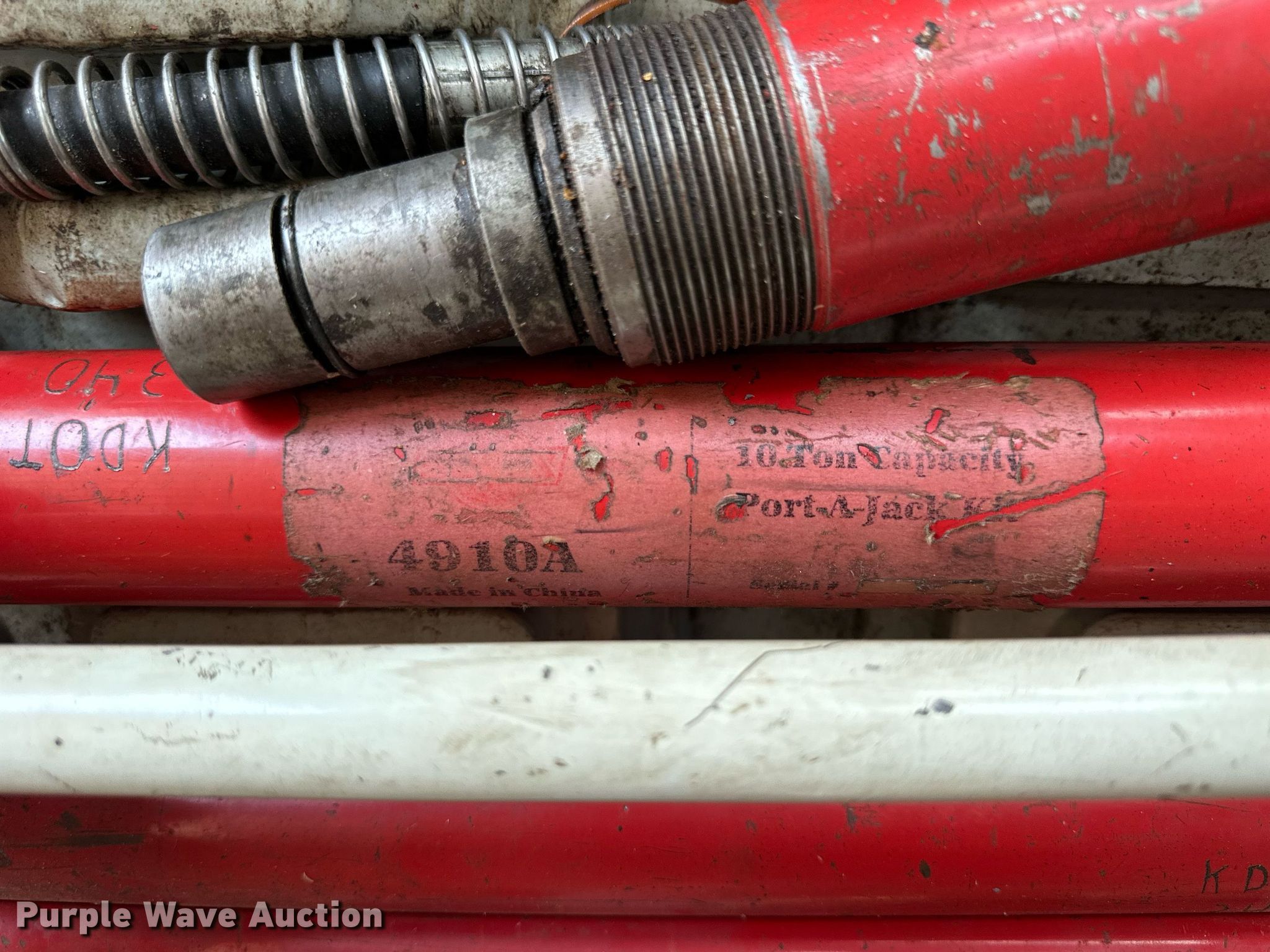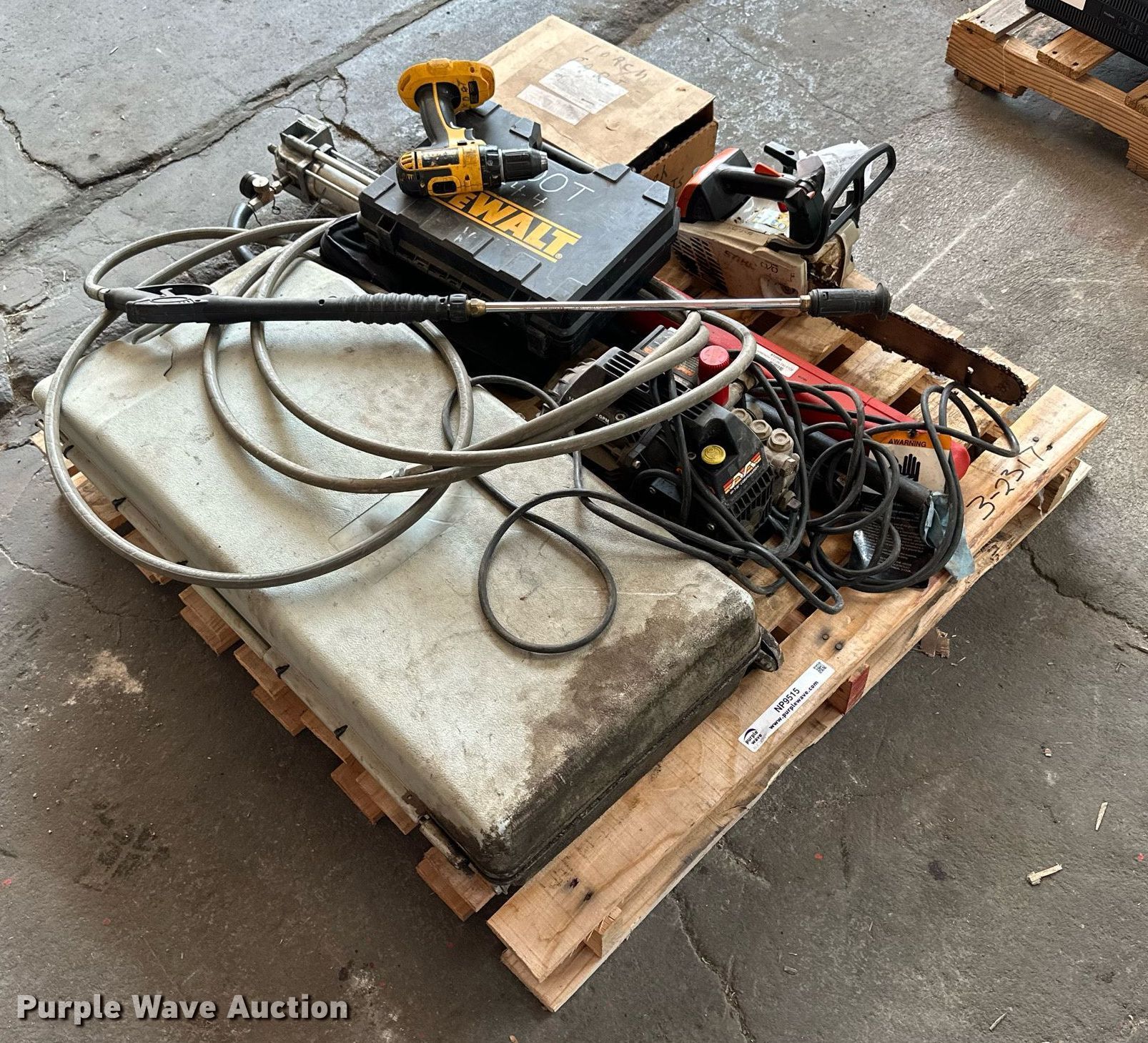 Purple Wave is selling a used Tools in Kansas. This item is a (12) tools with the following: Sunex 4910A Port-A-Jack, Capacity: 10 tons, Mi-T-M pressure washer pump, 110V, PSI: 1,400, GPM: 1.5, Wand, Stihl MS192T chainsaw, Engine issues, scored cylinder head, (2) Dewalt DC720 18V drills, (2) batteries, Non-operational, Battery charger, Torch parts, Acetylene tank, Gauges, Tips, Storm 1/2" torque wrench, 25 ft/lbs to 250 ft/lbs, Setting issues, not accurate, TIF ZX-1 refrigerant leak detector, Lincoln 282396 Bare Stub oil pump, Series B, Serial: 002358, Unknown operating conditions, KDOT ID: 3-2317