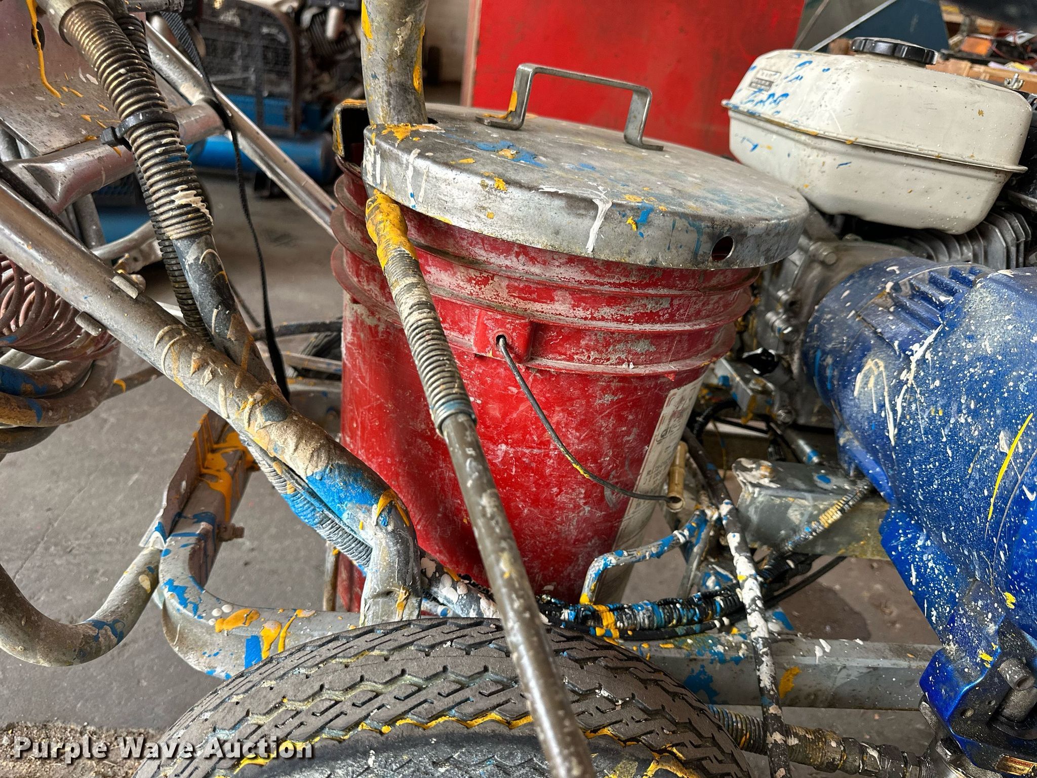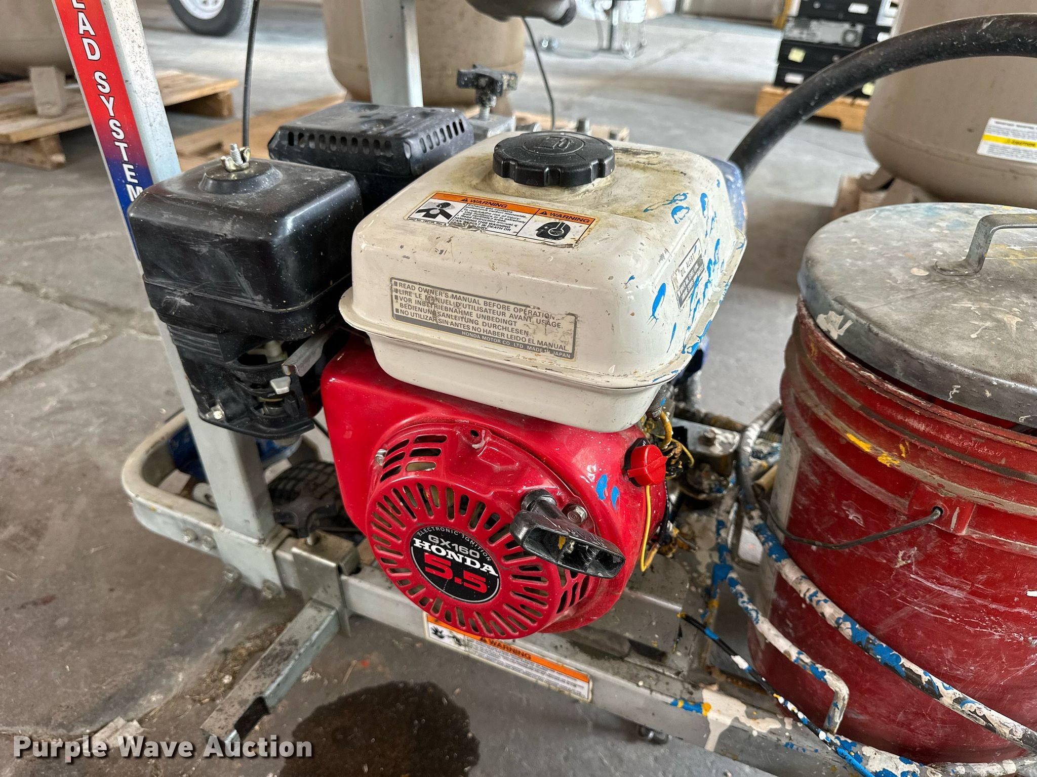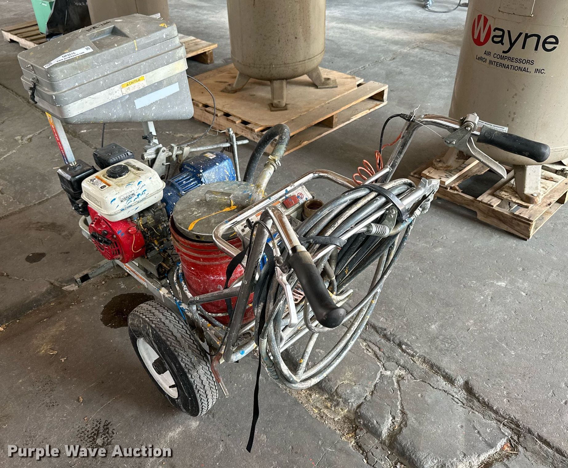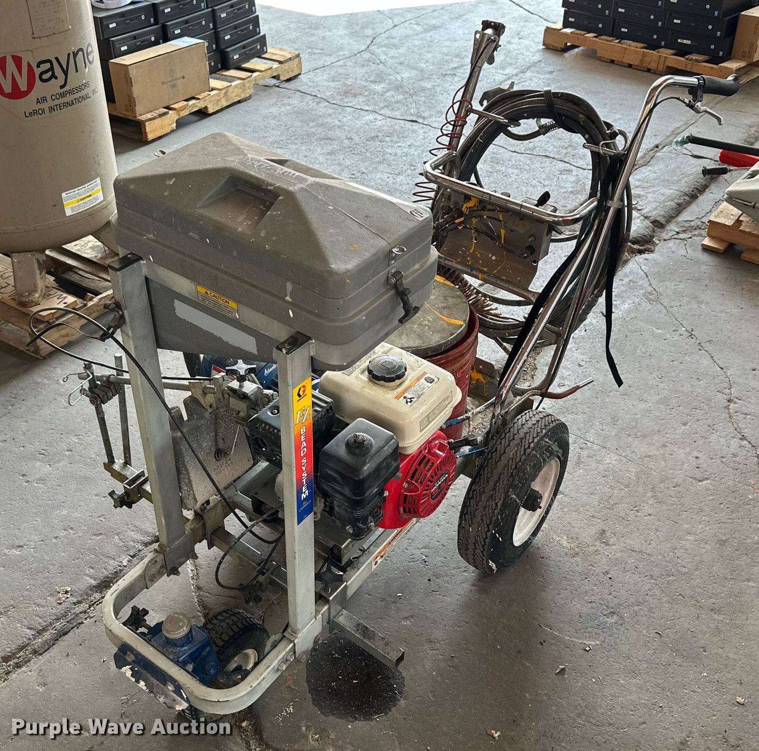 Purple Wave is selling a used Road Safety Equip. in Kansas. This item is a 2001 Graco Line Lazer II 5900 paint striper with the following: Honda GX160 single cylinder gas engine, 5.5 HP, EZ bead system, Pump issues, will not hold pressure, Paint pressure control switch issues, Non-operational engine kill switch, Oil leaks, Serial: BA1426, KDOT ID: 447-3011