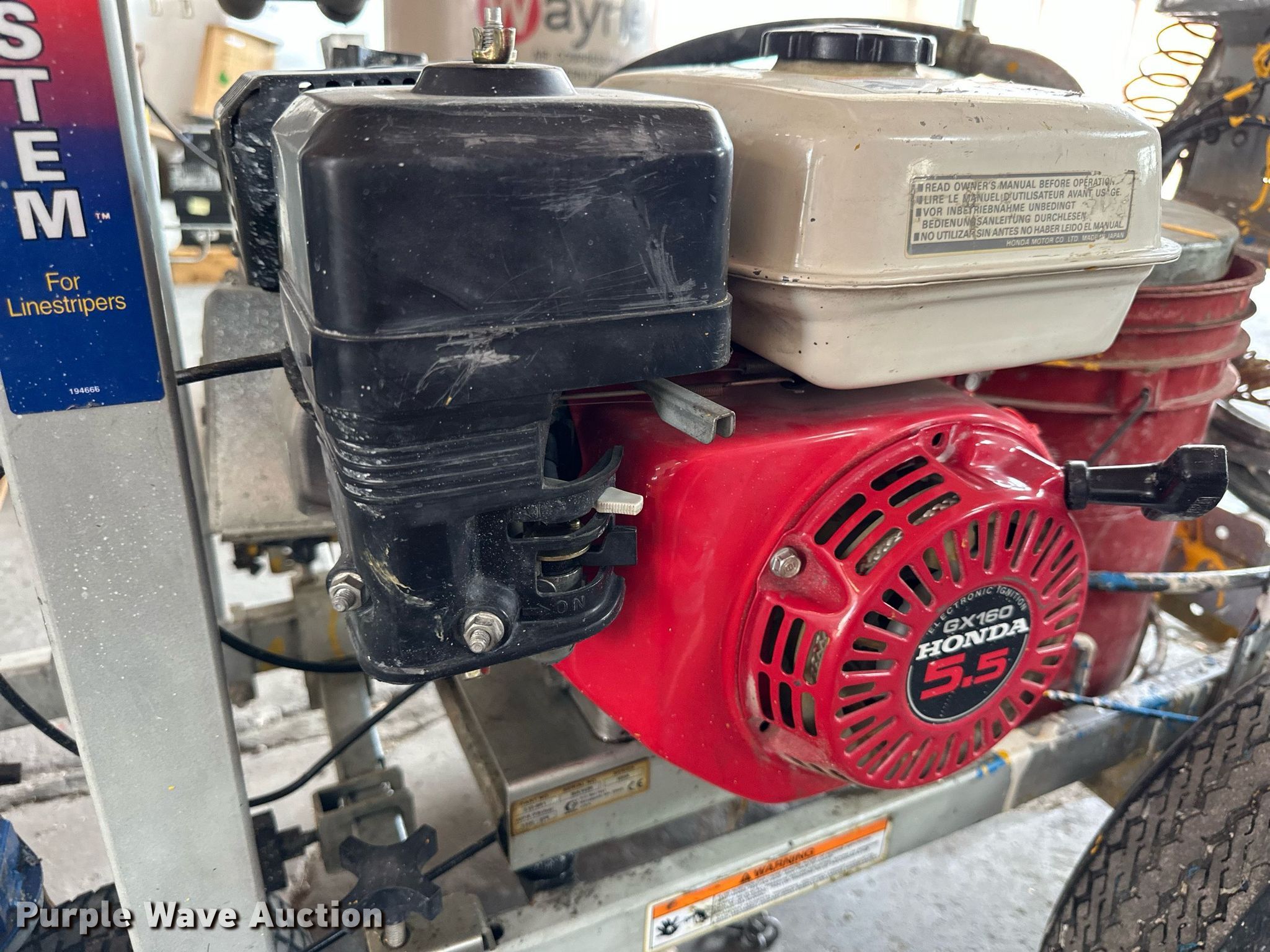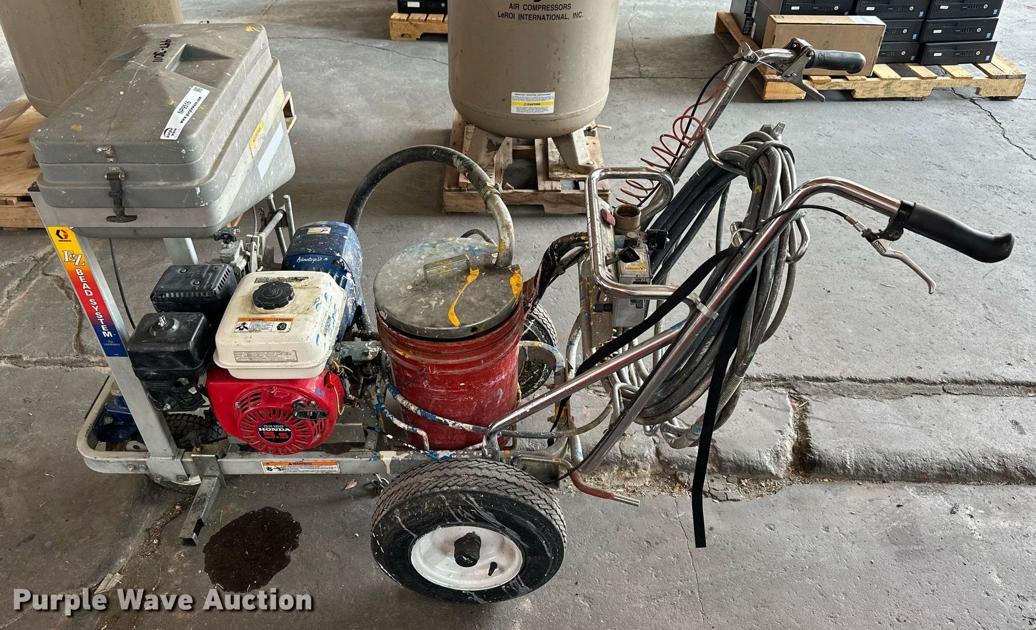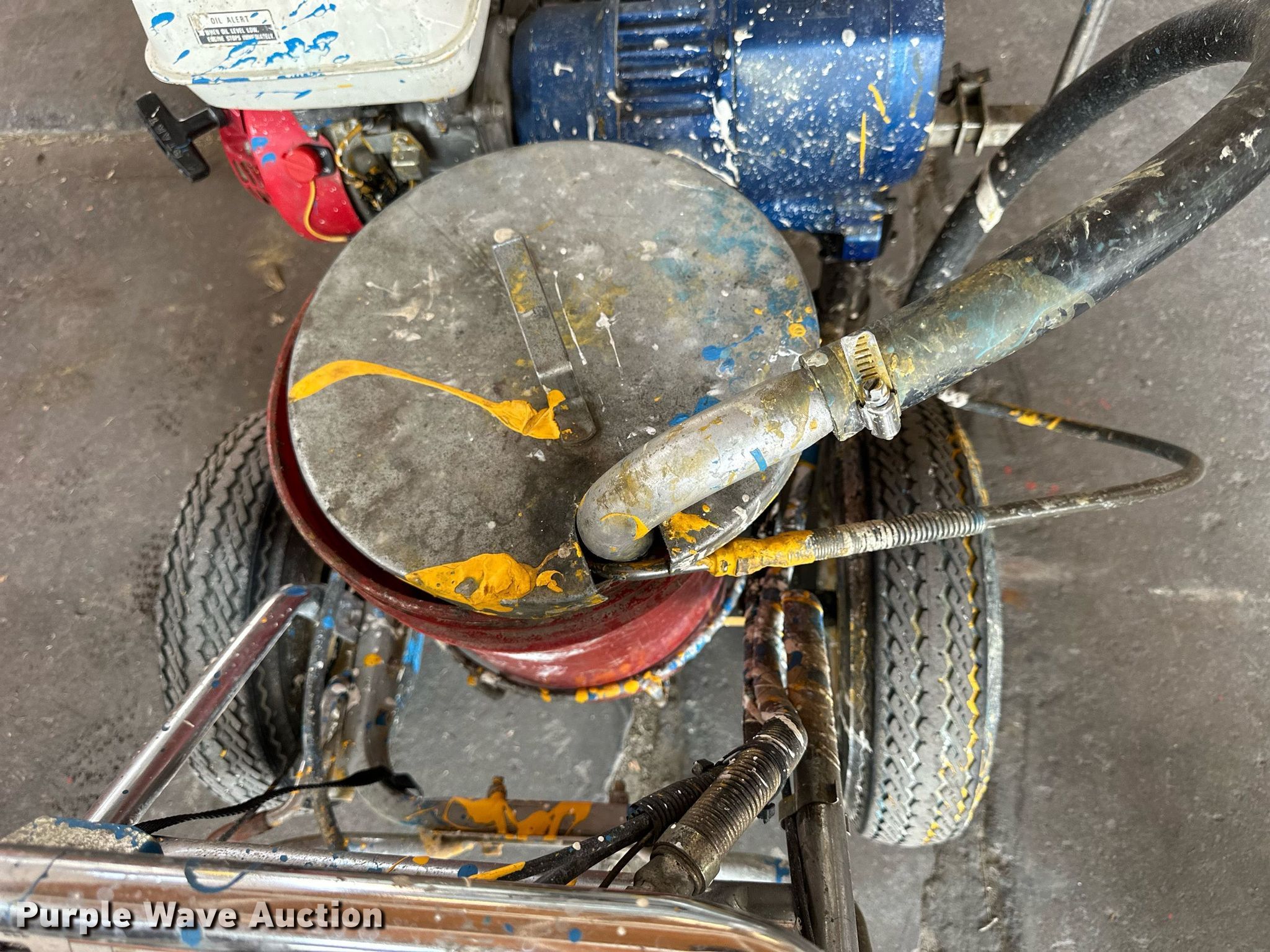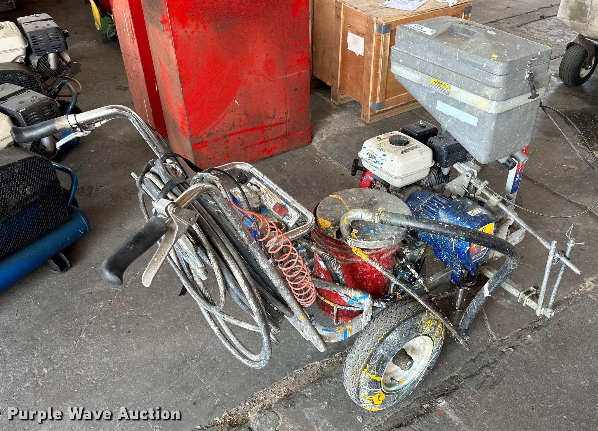 Purple Wave is selling a used Road Safety Equip. in Kansas. This item is a 2001 Graco Line Lazer II 5900 paint striper with the following: Honda GX160 single cylinder gas engine, 5.5 HP, EZ bead system, Pump issues, will not hold pressure, Paint pressure control switch issues, Non-operational engine kill switch, Oil leaks, Serial: BA1426, KDOT ID: 447-3011