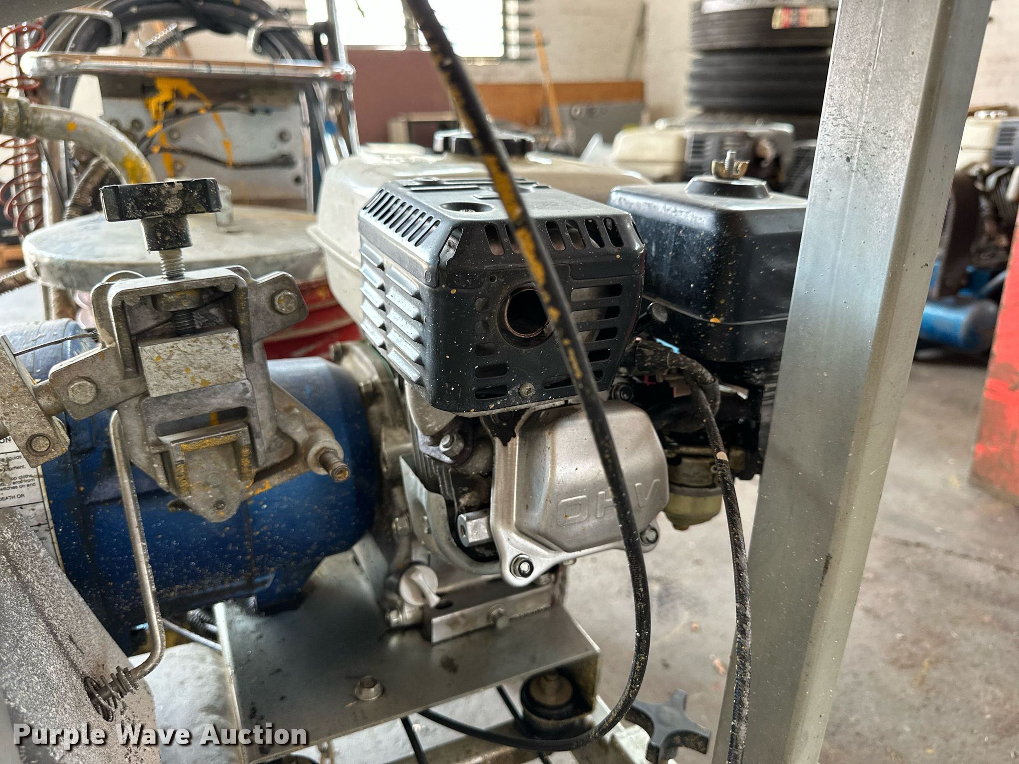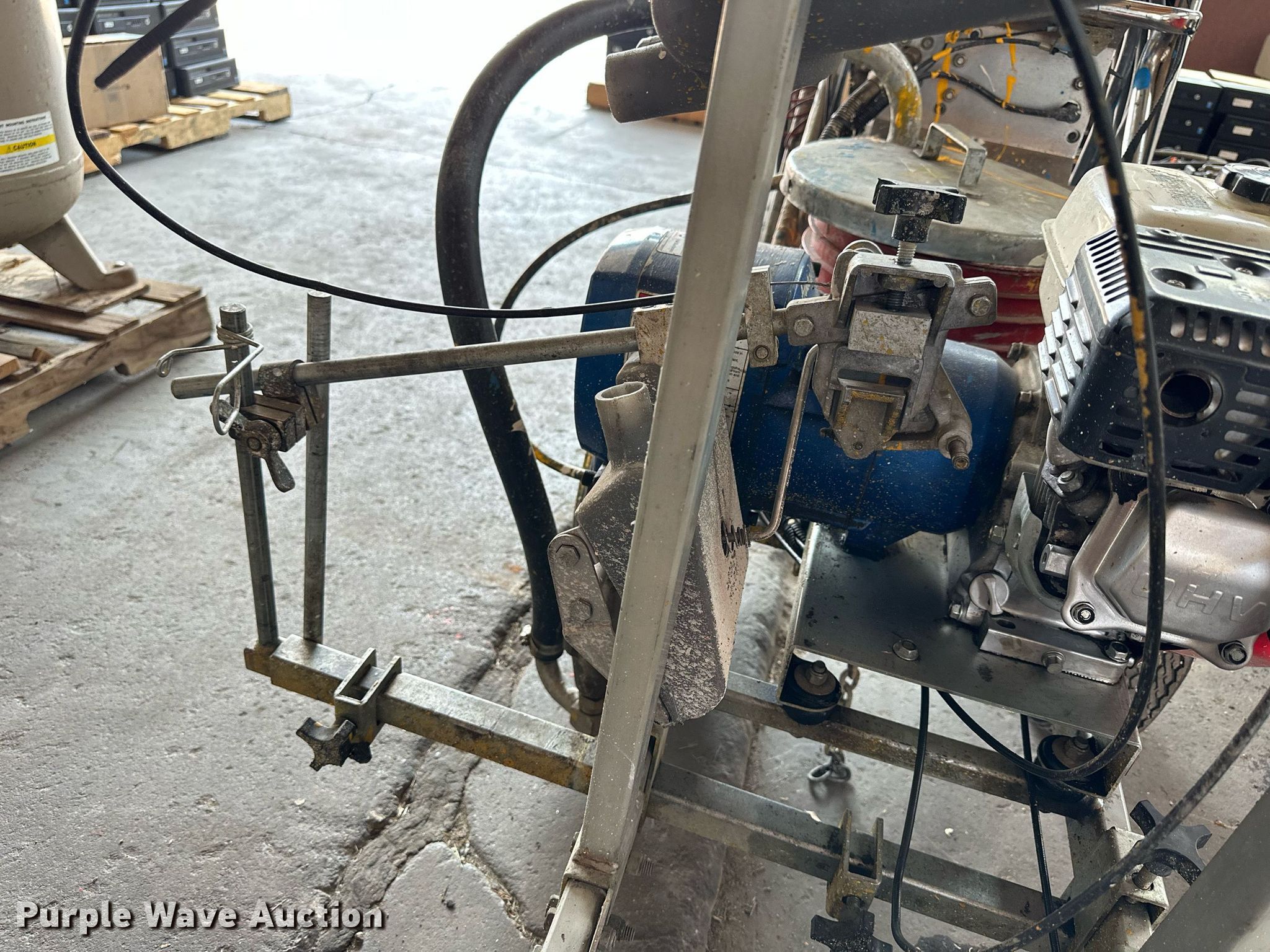 2001 Graco Line Lazer II 5900 paint striper. Honda GX160 single cylinder gas engine 5.5 HP, EZ bead system, Pump issues, will not hold pressure, Paint pressure control switch issues, Non-operational engine kill switch, Oil leaks, Serial: BA1426, KDOT ID: 447-3011. Kansas Department of Transportation - Norton. 312 S 2nd Ave. Norton, KS 67654