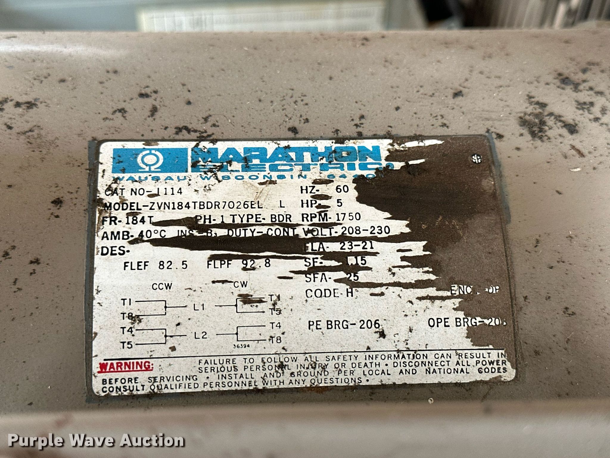 1994 Wayne air compressor. Serial: 79378, KDOT ID: 031-3394. Electric Motor Marathon , HP: 5, Volts: 208-230. Features PSI: 200, Tank capacity: 60 gallons. Notes Compressor issues, slow to build pressure. Kansas Department of Transportation - Norton. 312 S 2nd Ave. Norton, KS 67654