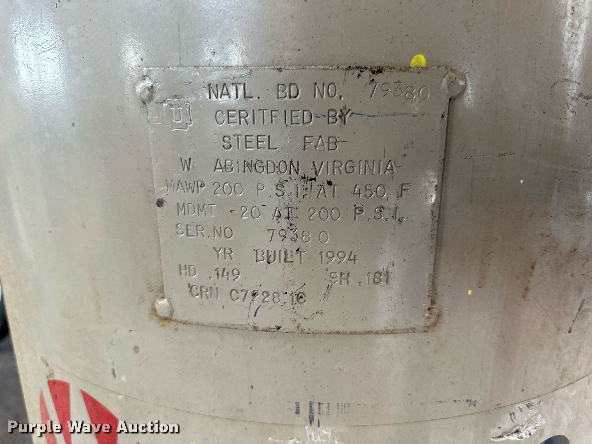 1994 Wayne TRU5N air compressor. Serial: 79380, KDOT ID: 031-3494. Electric Motor Marathon , HP: 5, Volts: 208-230. Features PSI: 200, Tank capacity: 60 gallons. Kansas Department of Transportation - Norton. 312 S 2nd Ave. Norton, KS 67654