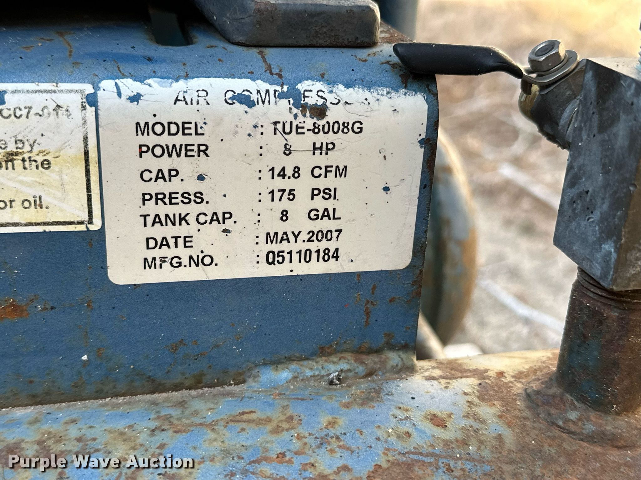 2007 Puma TUE-8008G air compressor has sold in Hutchinson, Kansas for $209. Item OF9425 sold on October 17th, 2023.
