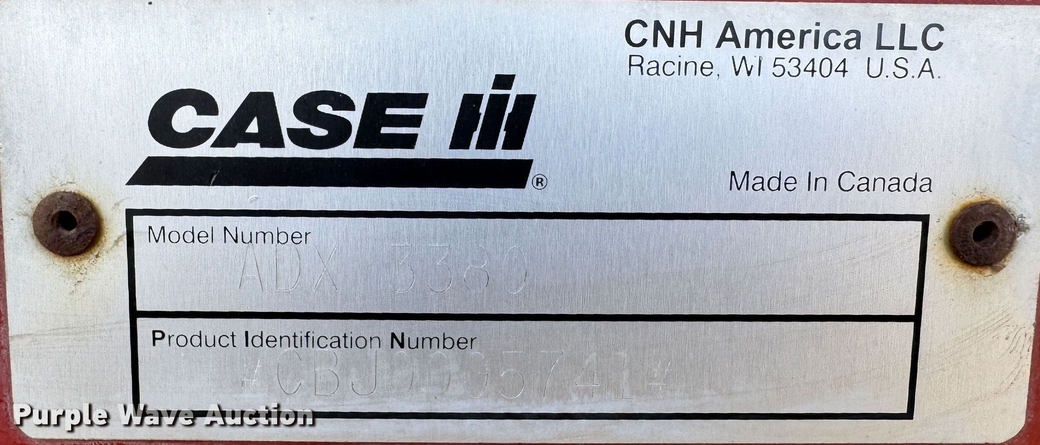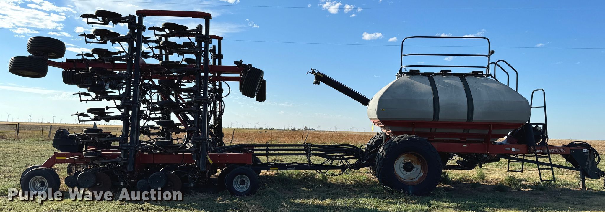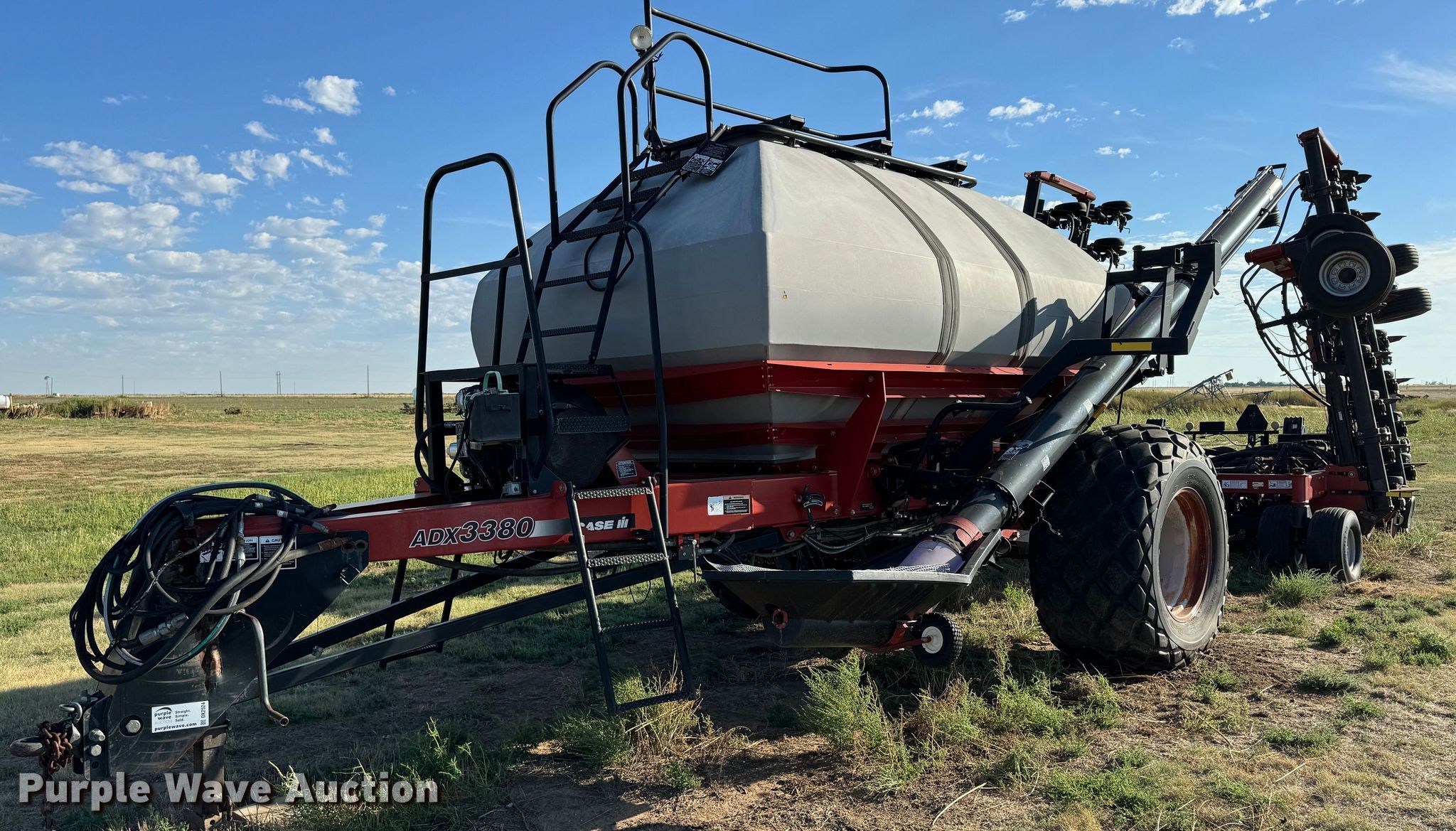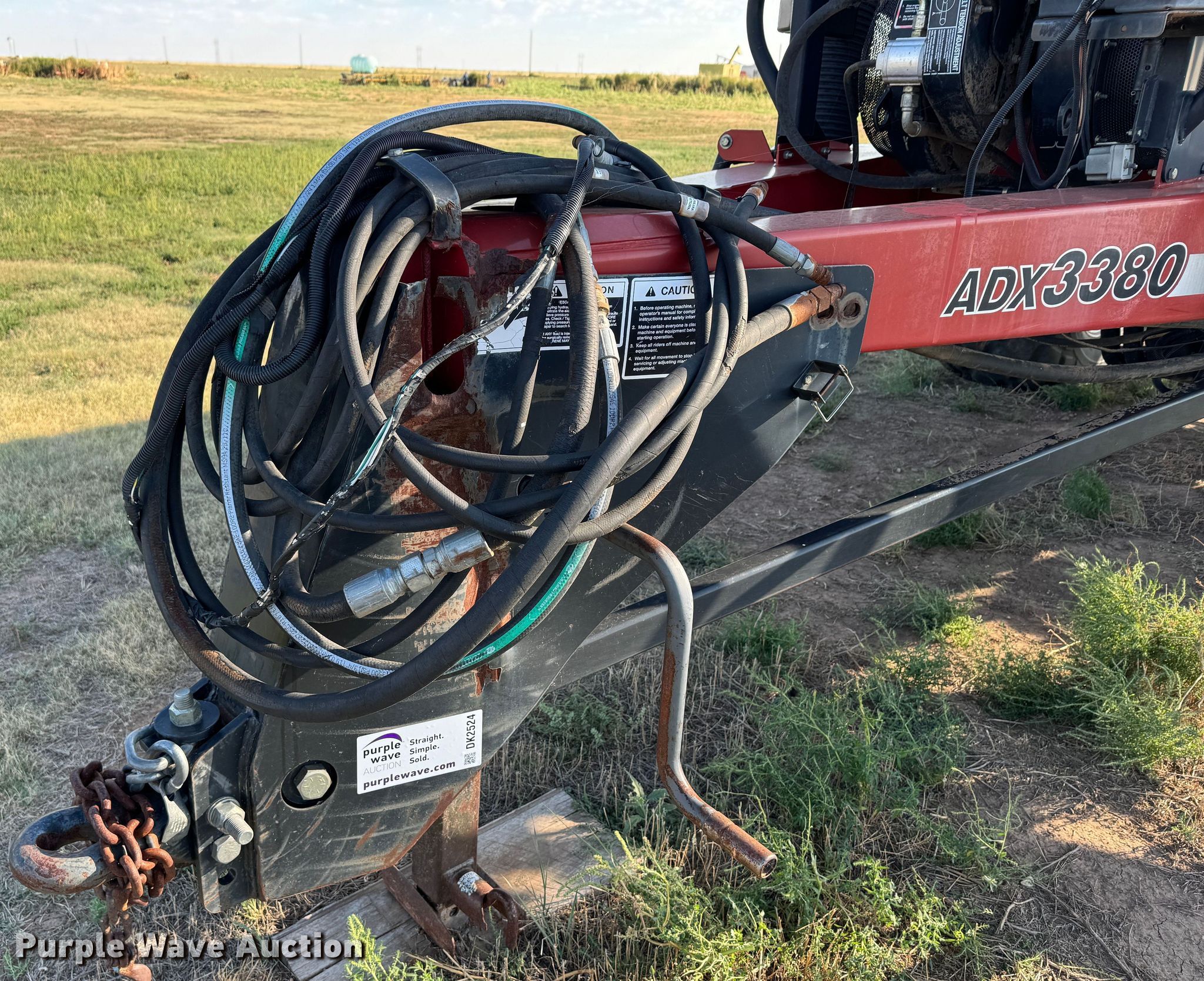 Case SDX 40 air seeder. Width: 40', Row units: 48, Row spacing: 10", Serial: CBJ0017661. Features Frame Rear hitch, Hydraulic fold Wing fold, Seed delivery Bulk fill system, Air commodity cart Case ADX3380, Serial: CBJ0005741, Capacity: 380 bushels, Row units Vacuum metering, Meter drive: Electric, Down pressure: Spring, Seed firmers, Disk openers: Single , Gauge wheels: Single, Closing system: Double Type: Rubber, 18'L x 9" diameter auger. Tires Transport tire size: 30.5L-32 Quantity: 2, Drive/ outside tire size: 31x13.50-15 Quantity: 16. Pampa, TX 79065