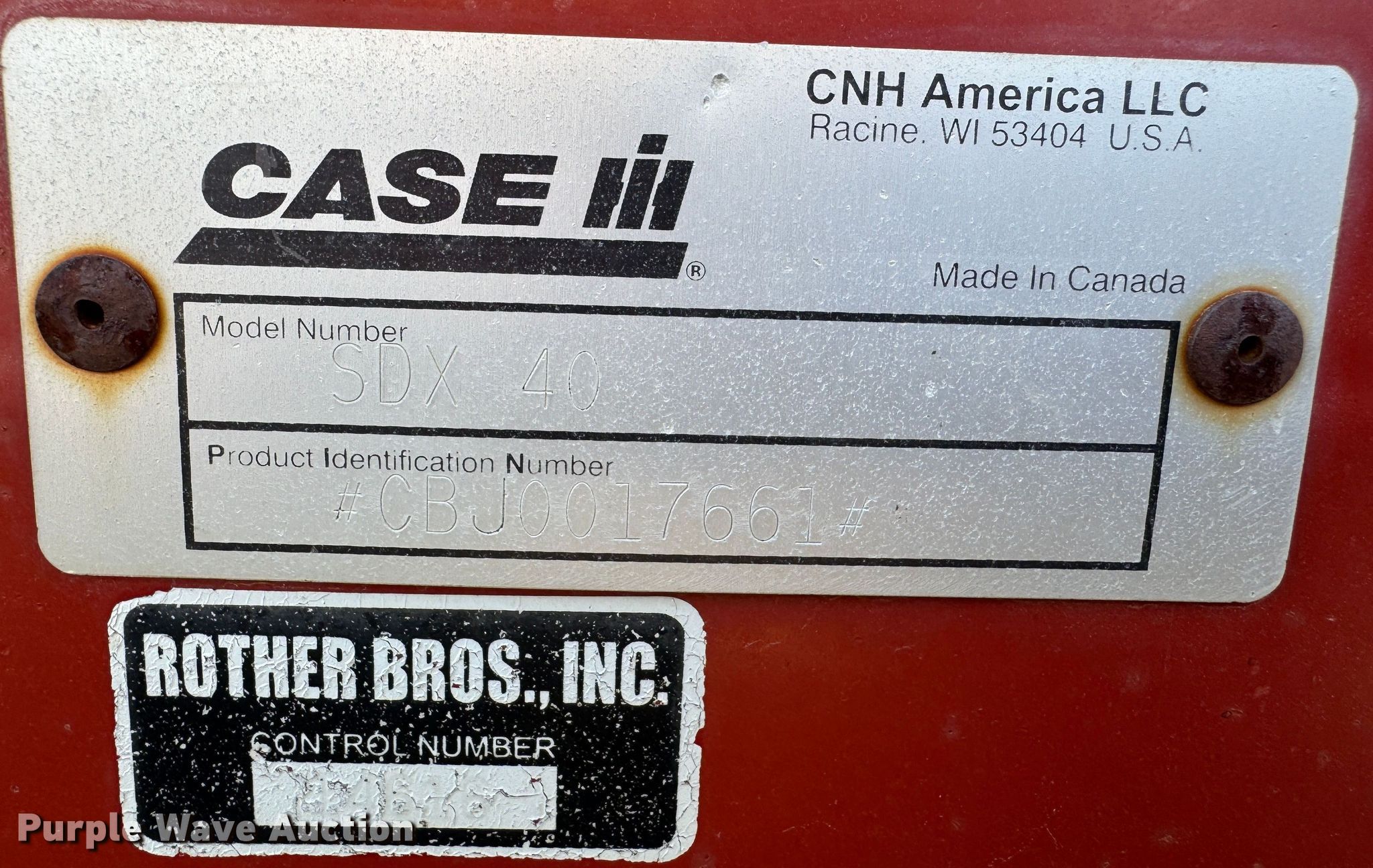 Purple Wave is selling a used Air Seeder in Texas. This item is a Case SDX 40 air seeder with the following: Width: 40', Row units: 48, Row spacing: 10", Serial: CBJ0017661