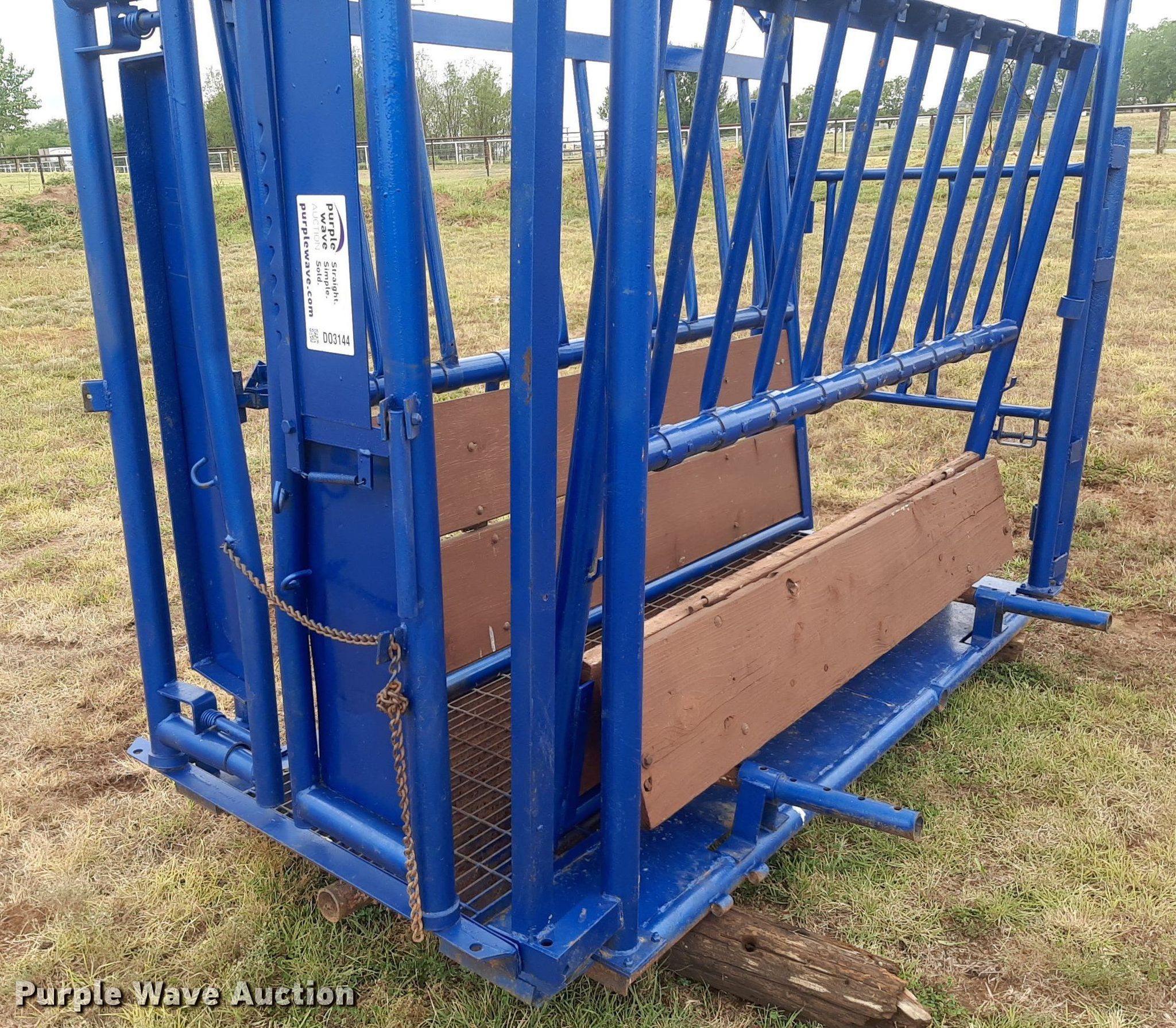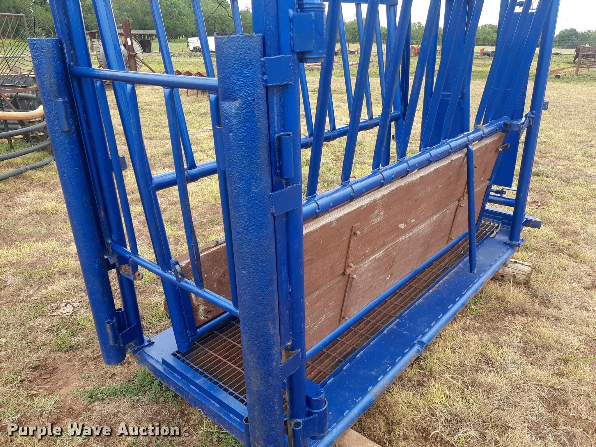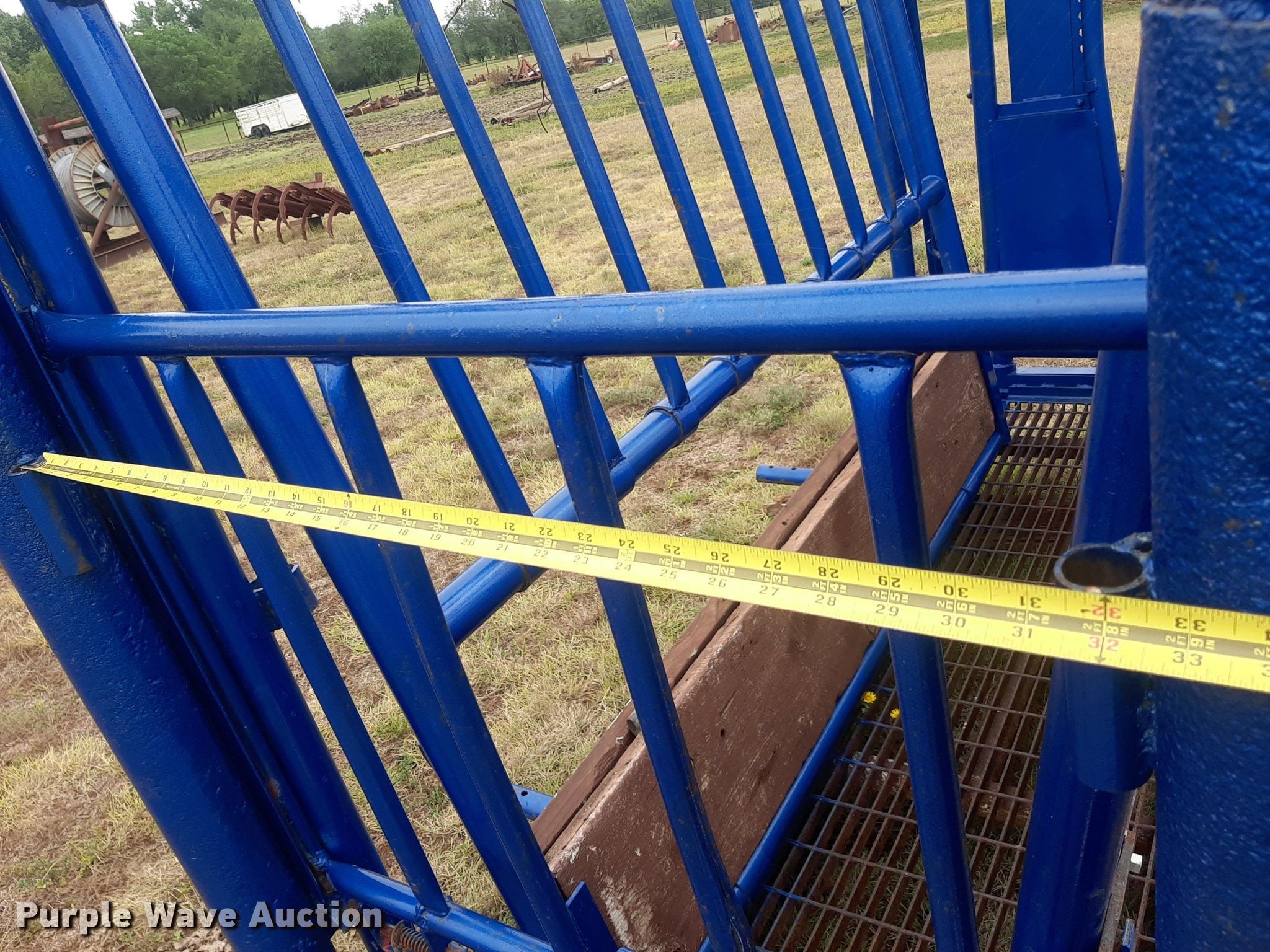 Purple Wave is selling a used Livestock Equip. in Oklahoma. This item is a Squeeze chute with the following: Opening: 33"