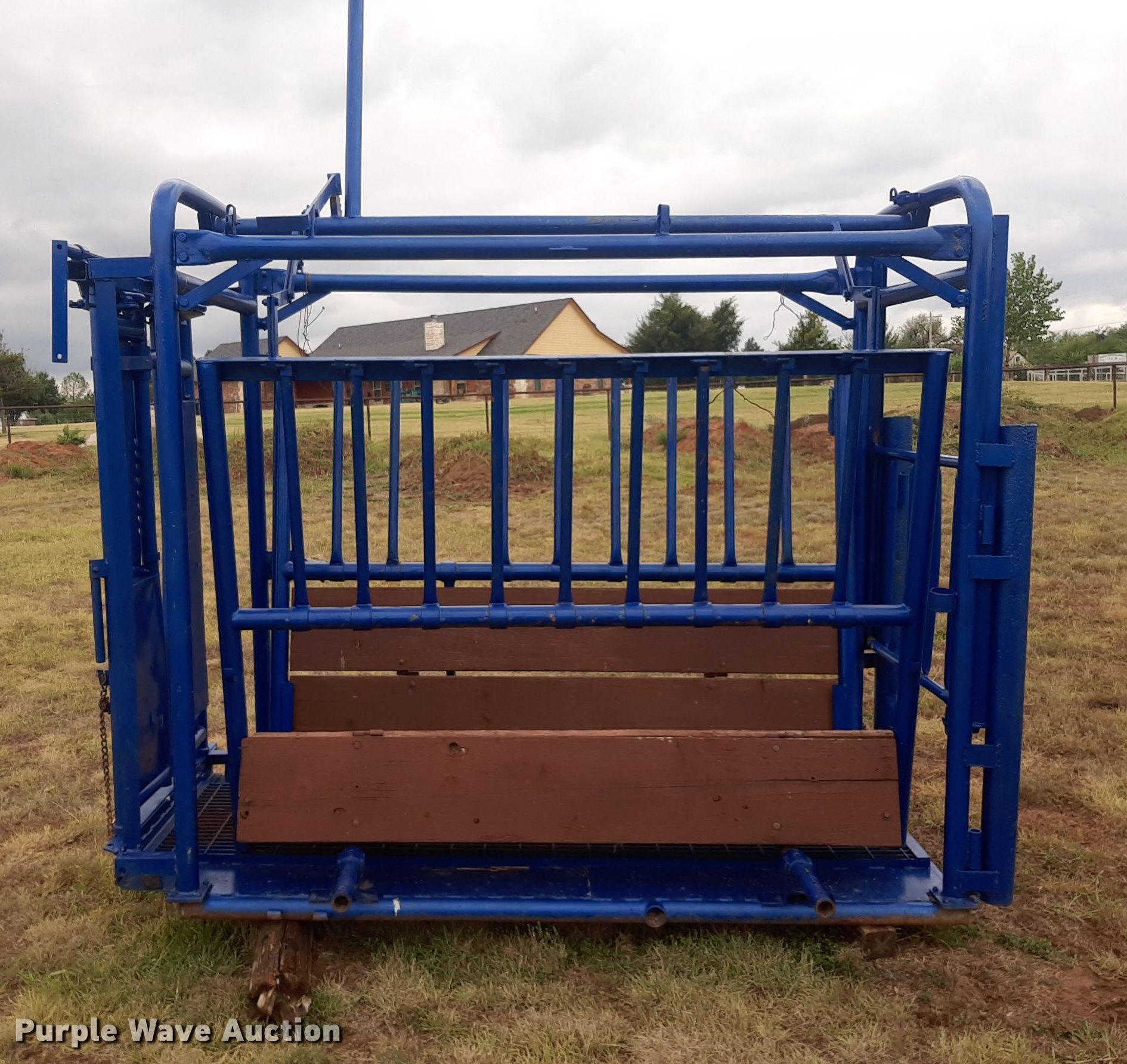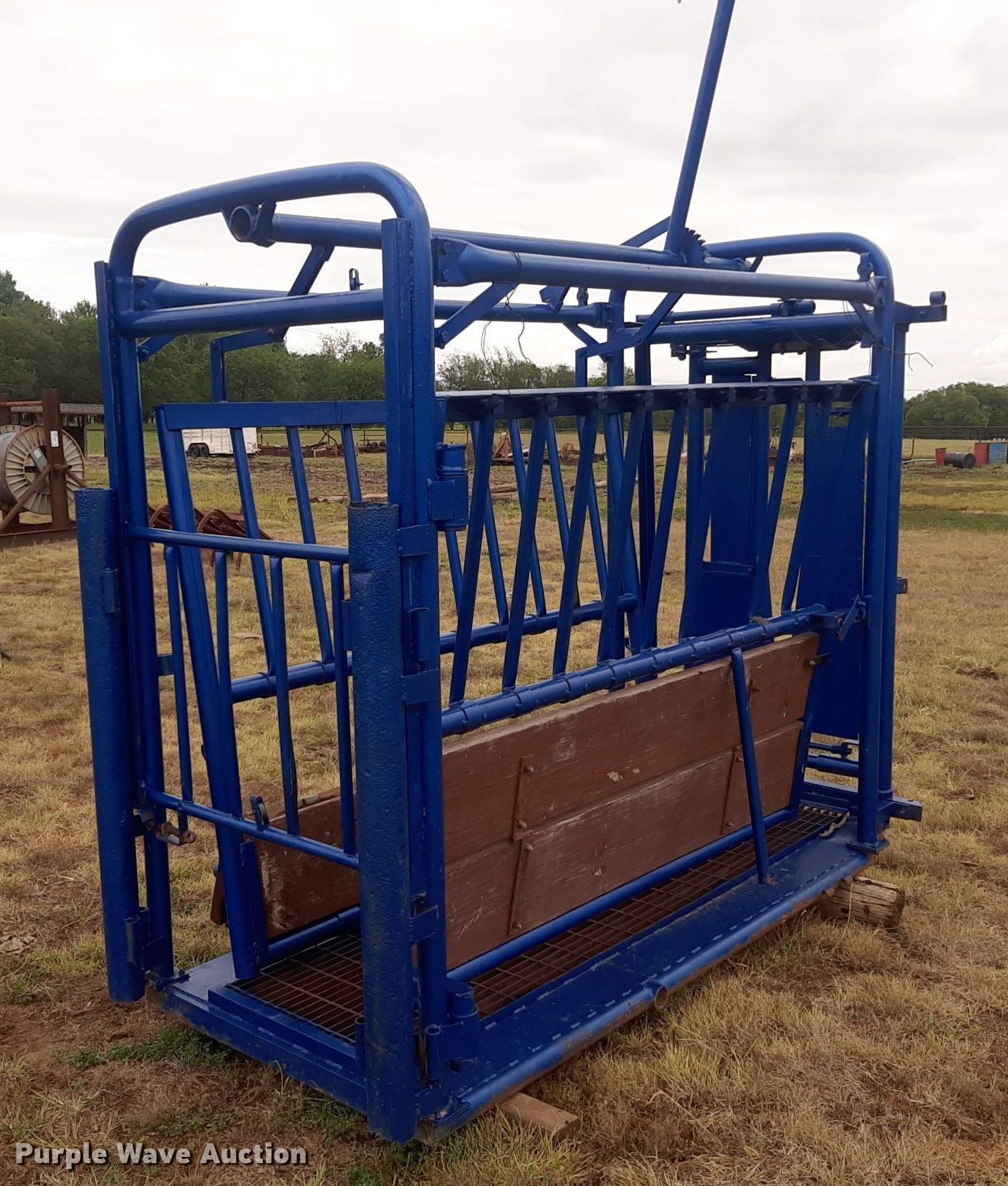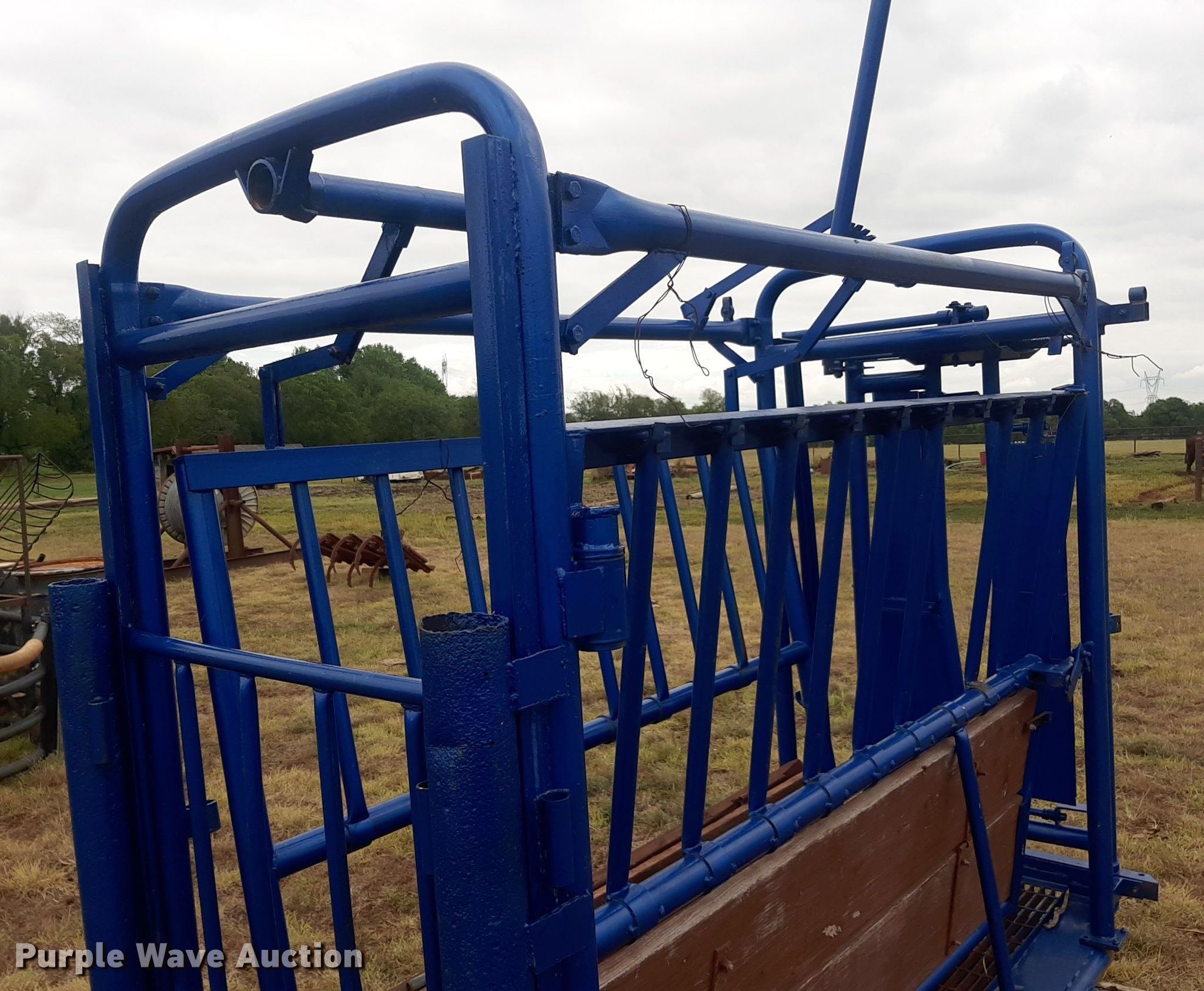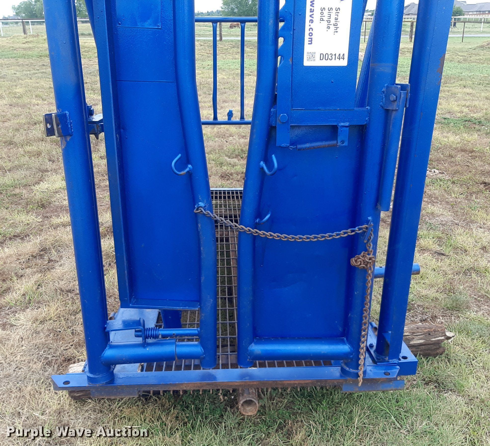 Purple Wave is selling a used Livestock Equip. in Oklahoma. This item is a Squeeze chute with the following: Opening: 33"