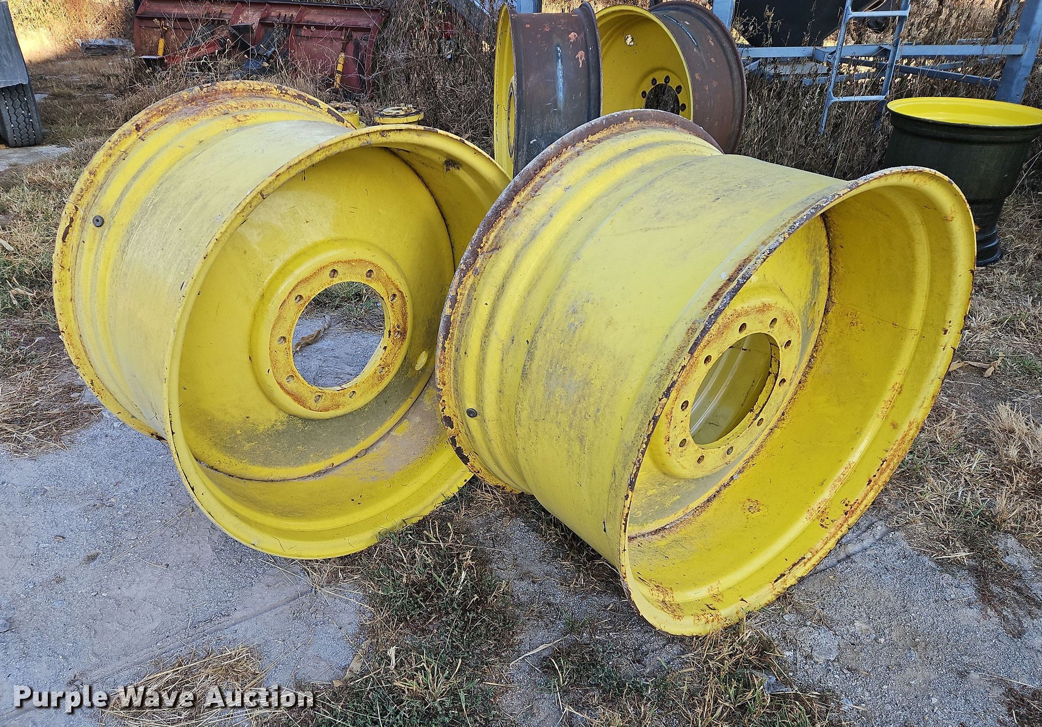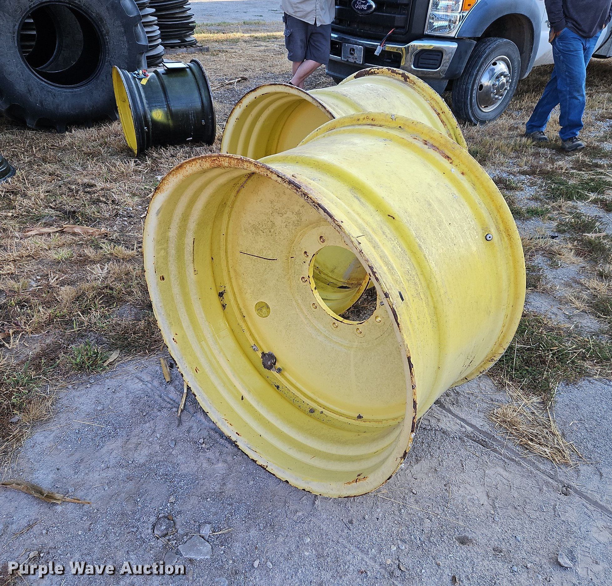 Purple Wave is selling a used Industrial Tires or Tracks in Kansas. This item is a (2) John Deere 1910 commodity cart wheels with the following: (2) John Deere 1910 commodity cart wheels. Paddock Farms. 6360 Ingrahm Road. Mound City, KS 66056