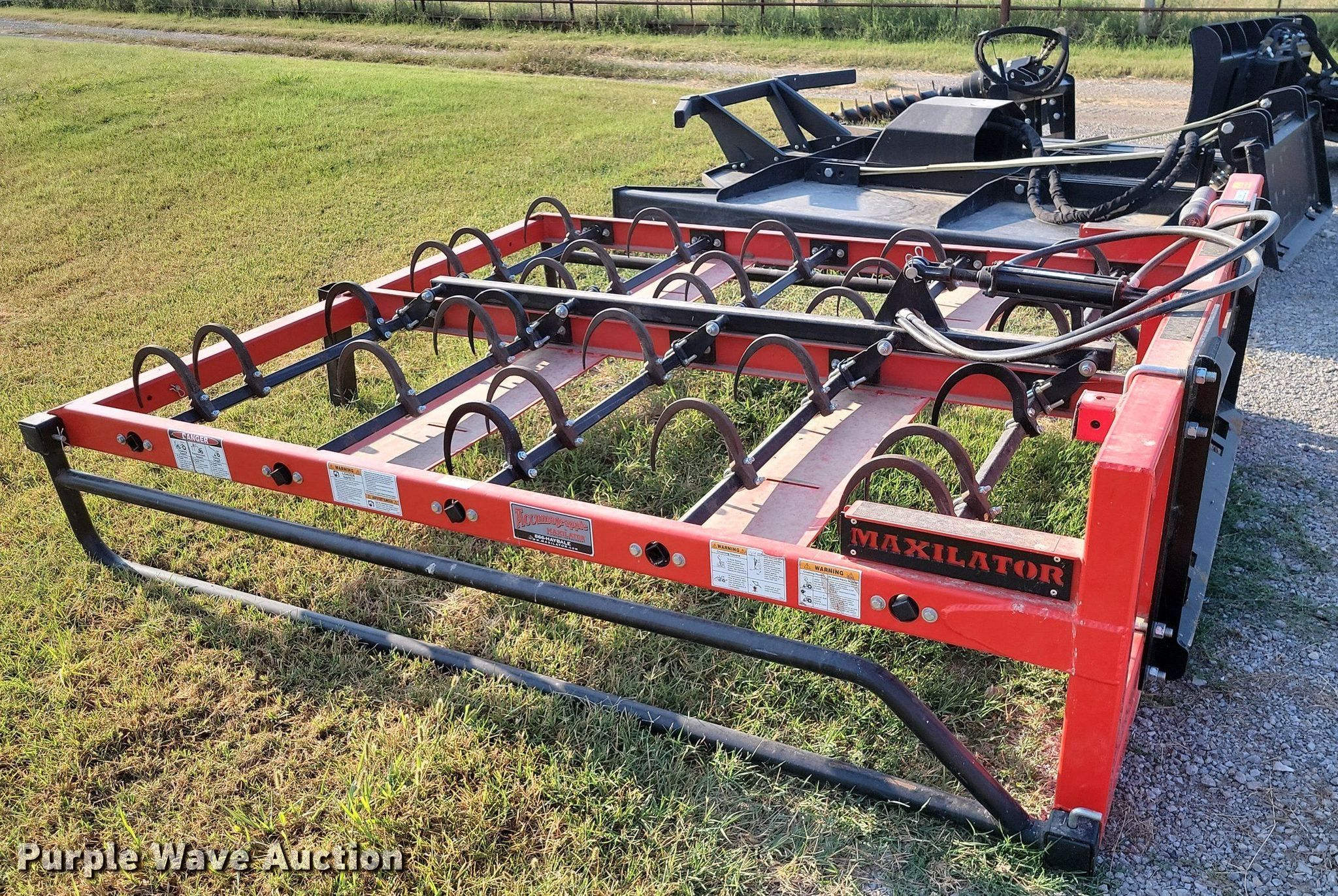 Purple Wave is selling a used Skid Steer Attach. in Oklahoma. This item is a Maxilator MXE skid steer bale accumulator grapple with the following: 8' L x 79" W, Serial: 6429