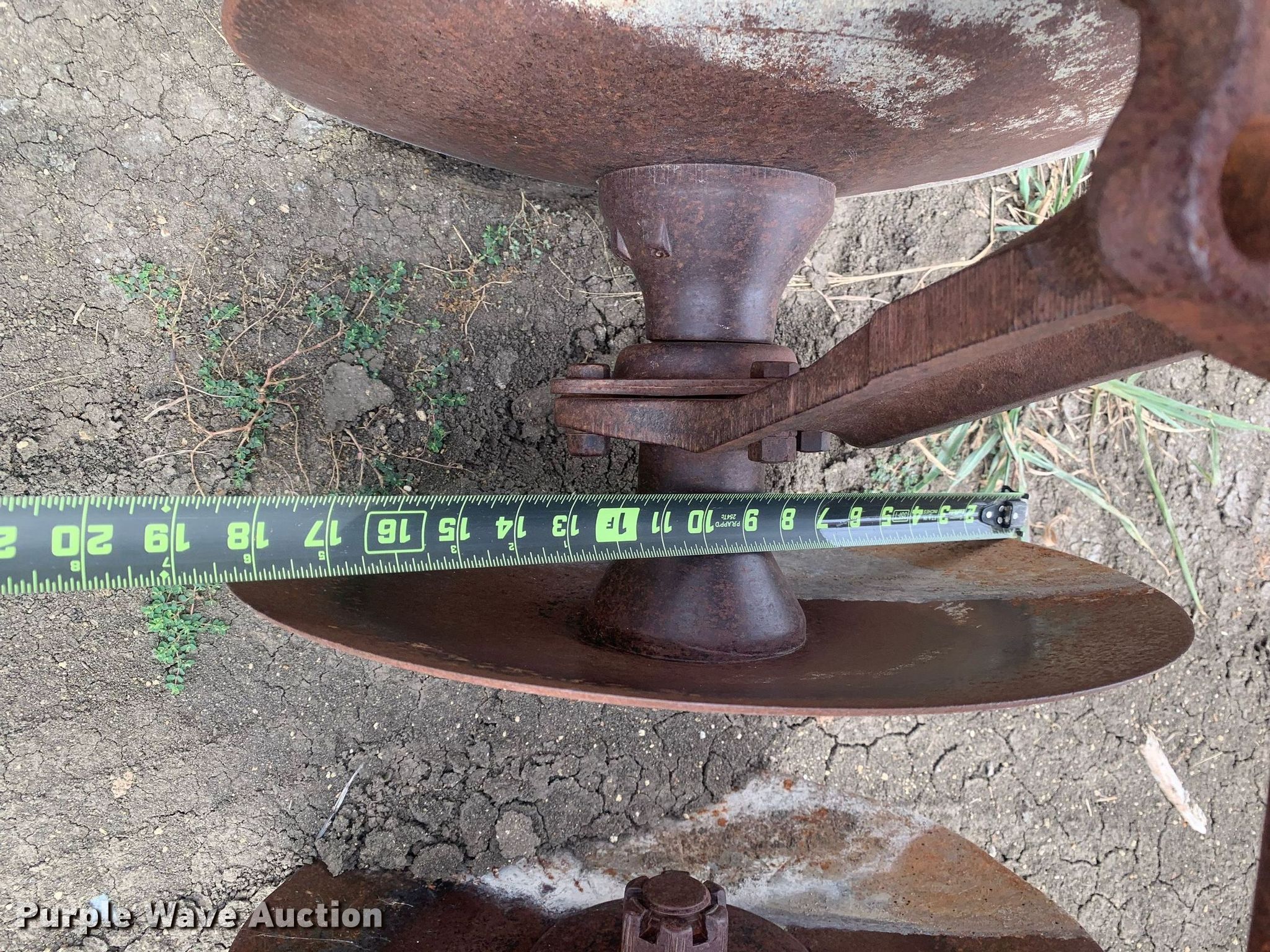 Case International HP3900 tandem disk. Overall width: 33'. Features Diameter: 18", Spacing: 9", Leveler: Hydraulic. Tires Tire size: H29x9.0-15, Gauge wheels Size: 9.5L-15. Notes Tires may need replaced. 17425 Farm To Market 38 N. Honey Grove, TX 75446