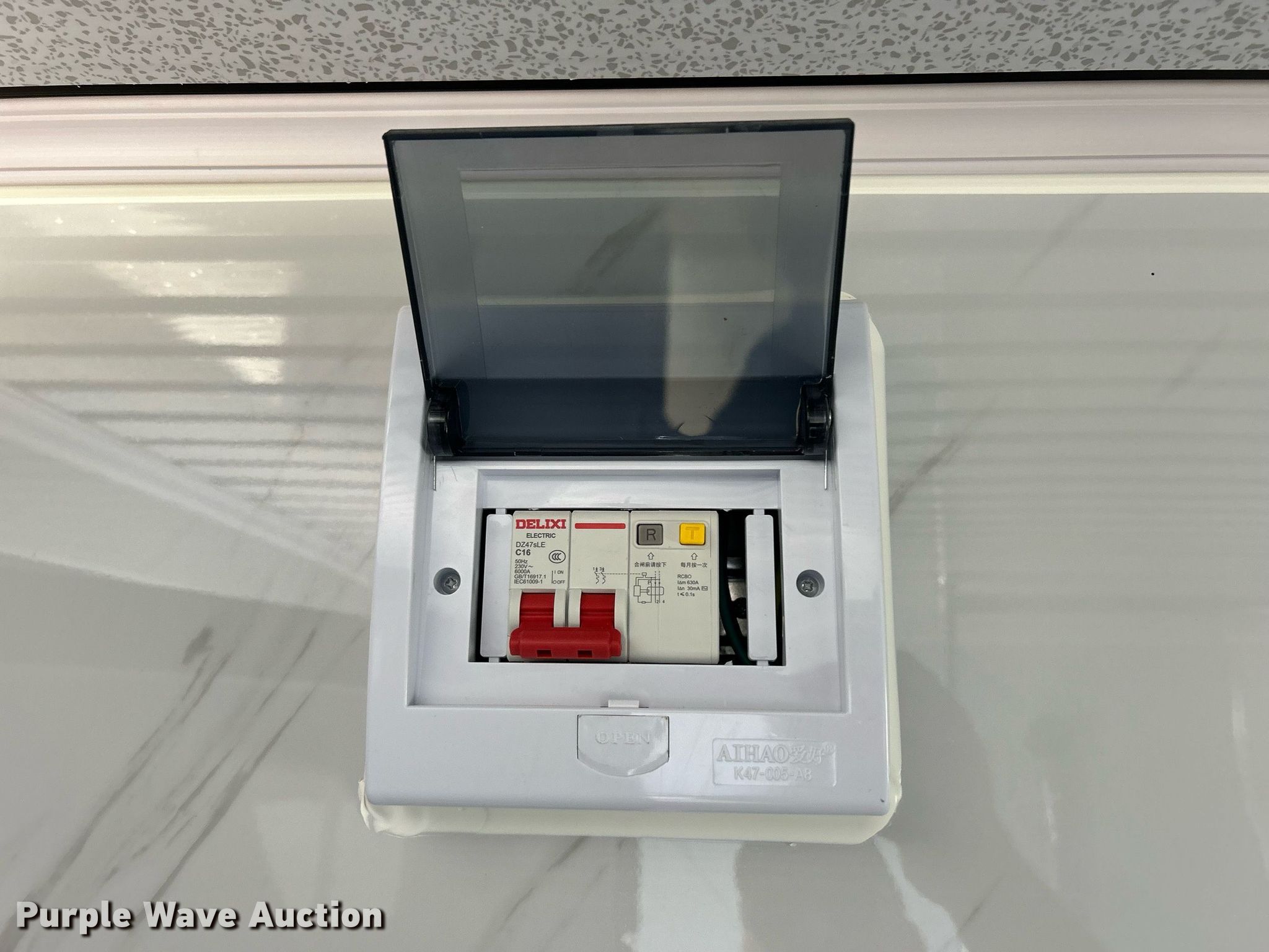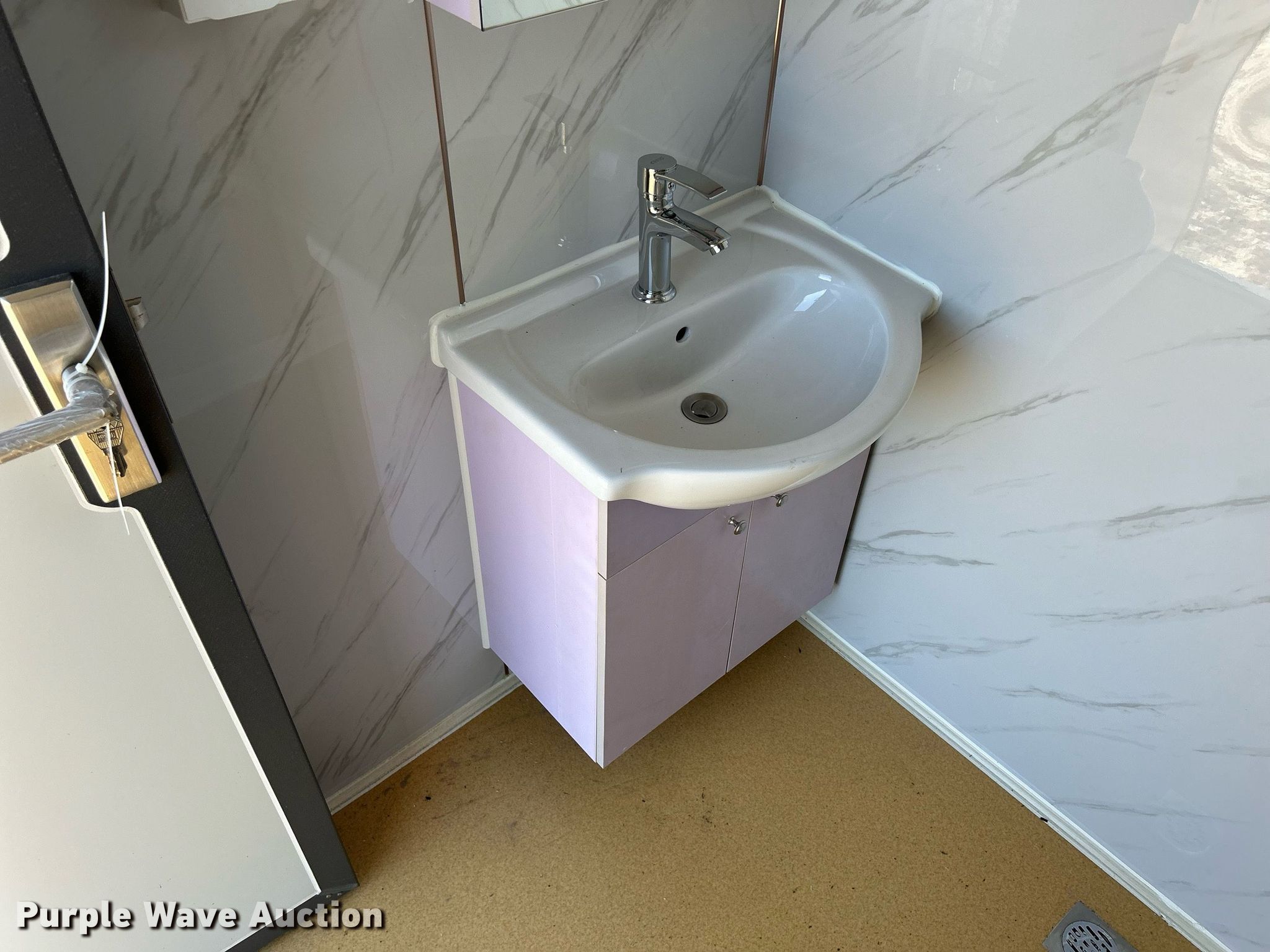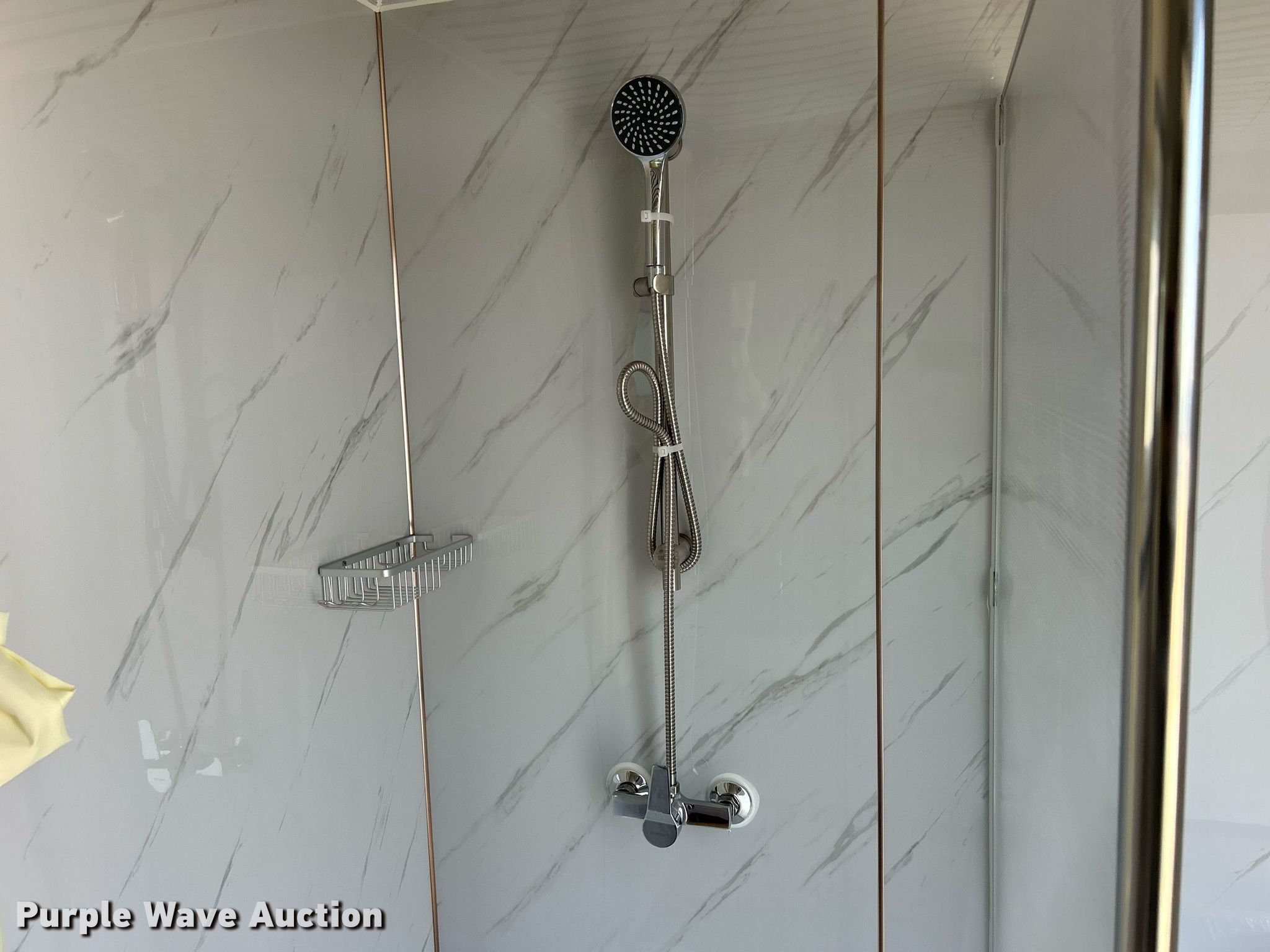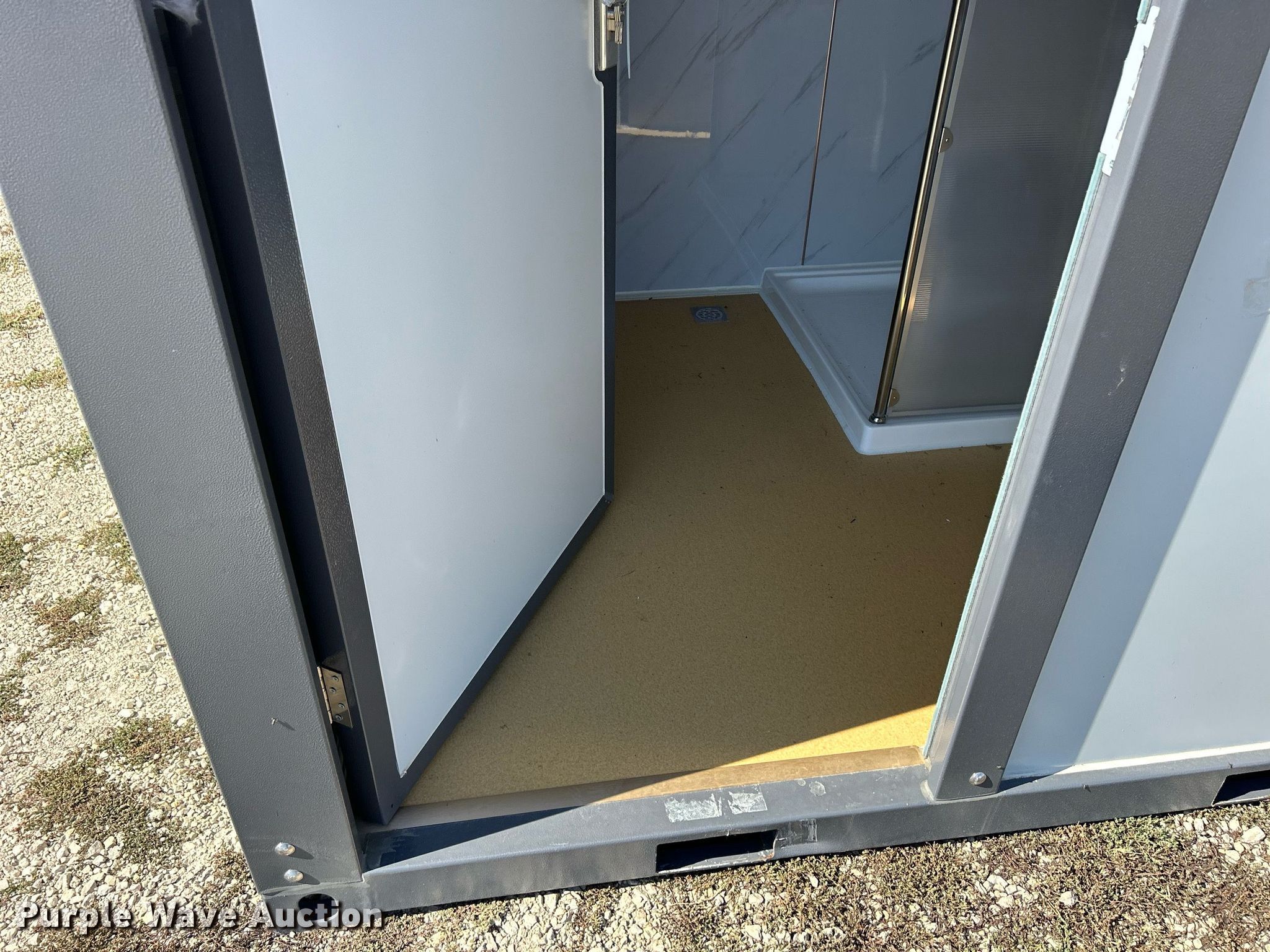 Purple Wave is selling a used Building Materials in Iowa. This item is a Bastone mobile restroom with the following: 65" D x 75" W x 92" H, Sink, Toilet, Shower, Water and sewer connections, 110v electric connection
