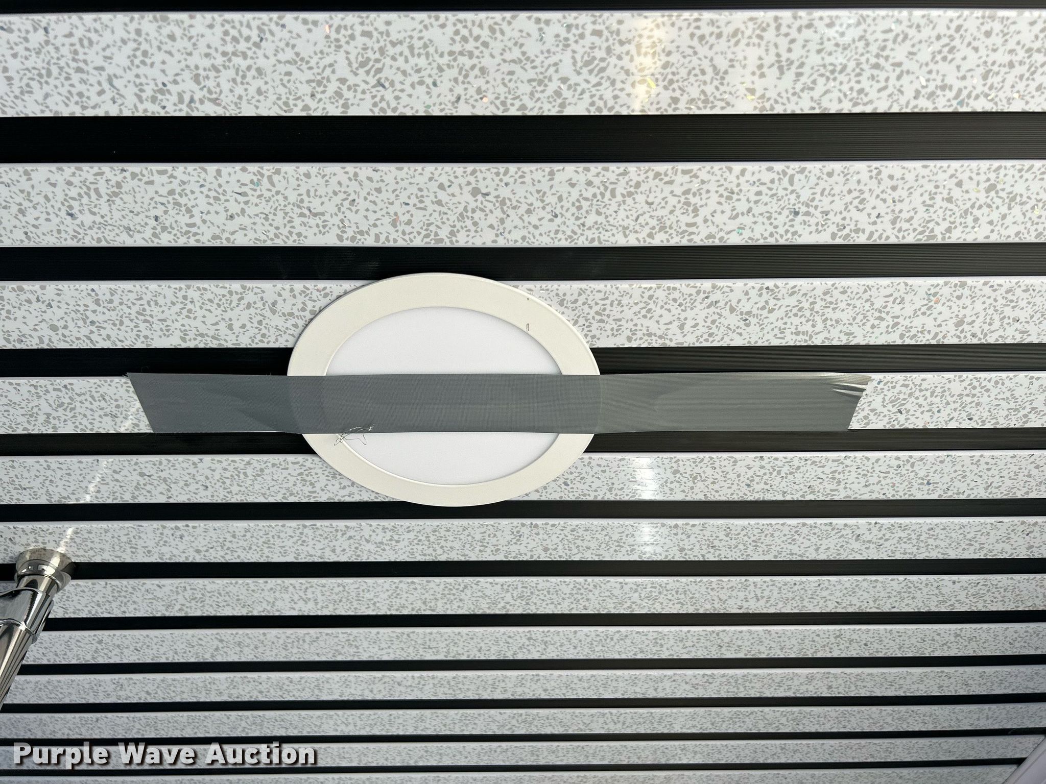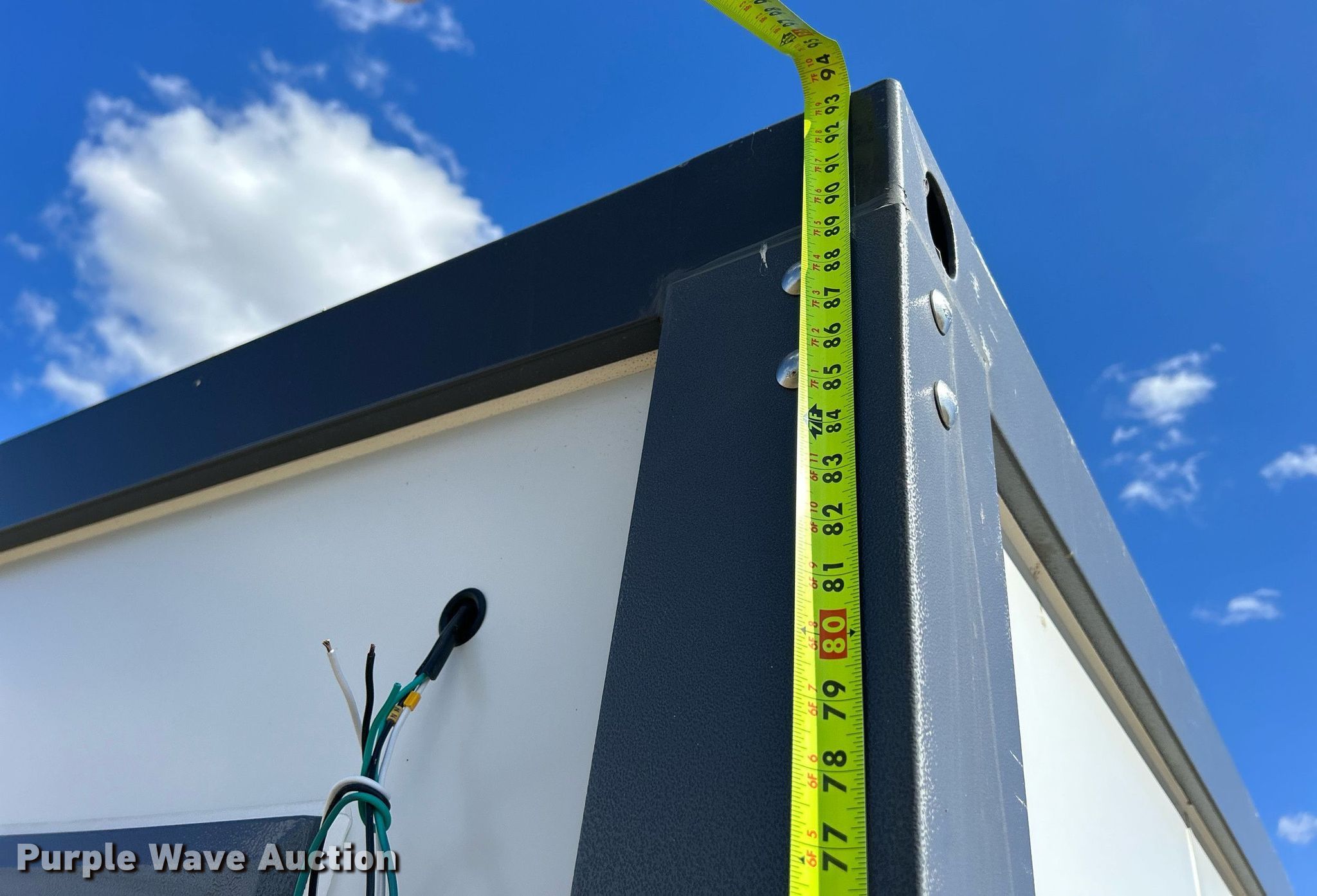 Bastone mobile restroom. 65" D x 75" W x 92" H, Sink, Toilet , Shower, Water and sewer connections, 110v electric connection. Notes Unused. 3477 Whittier Road. Springville, IA 52336