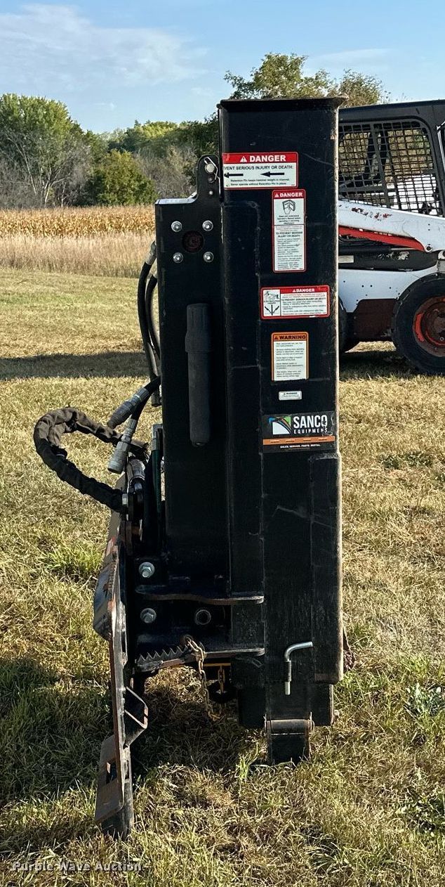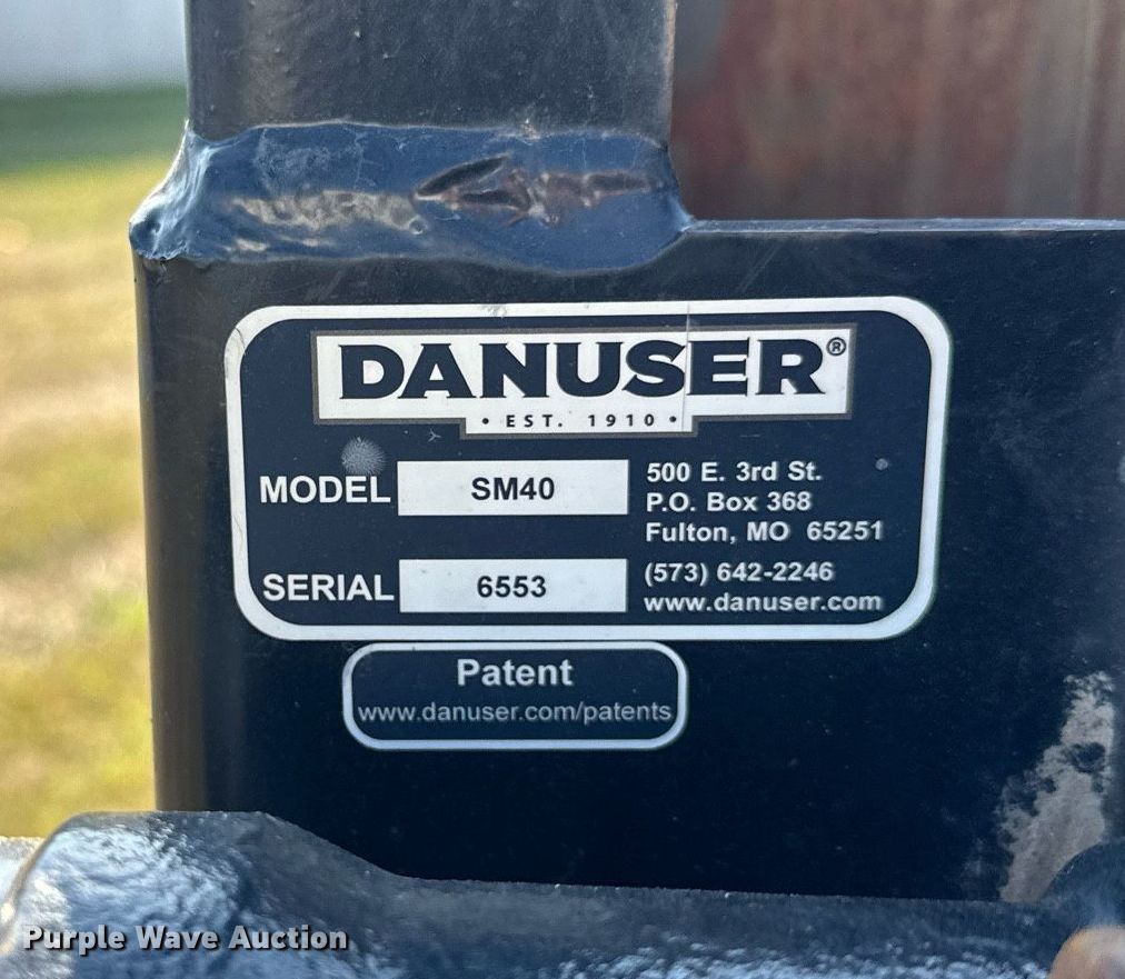 Danuser SM40 skid steer post driver. Serial: 6553, Grapple, Tilt. Sanco Enterprises. 7824 Manning Avenue North. Stillwater, MN 55082
