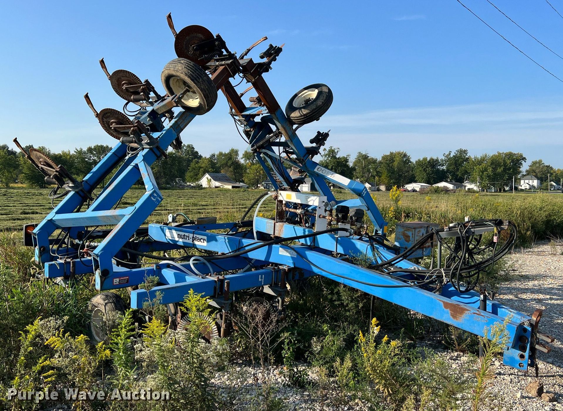 DMI Nutri-Placr 4300 anhydrous ammonia applicator. Serial: 721093. Features Transport lights, Boom Hydraulic fold, Hydraulic height control, Liquid/nh3 applicator Rows: 15, Spacing: 30", Delivery type: Knife. Tires Size: 11L-15. Notes Unknown operating condition. MFA Ag Inc.. 506 E 1st St. Laddonia, MO 63352