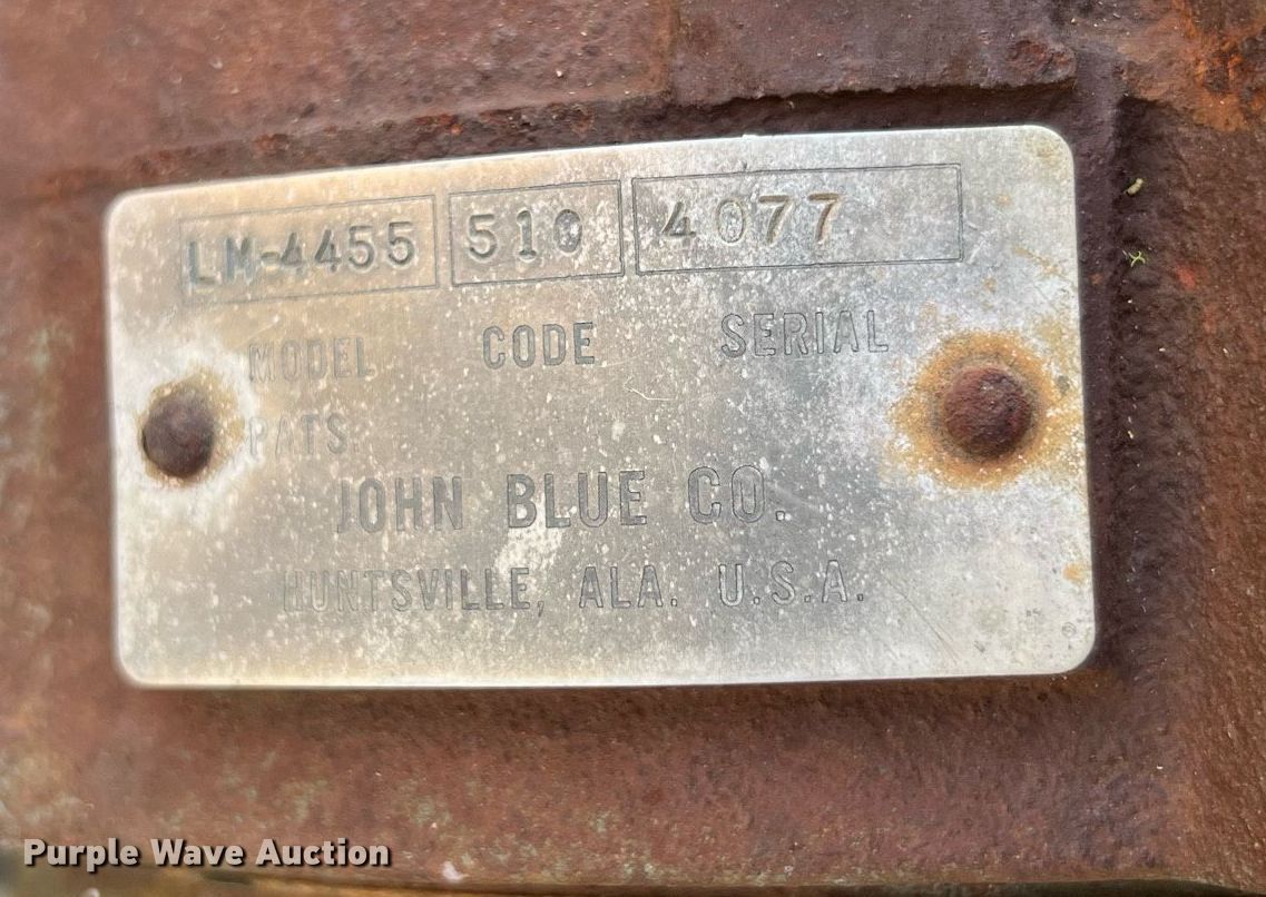 Purple Wave is selling a used Applicator Pull Type in Missouri. This item is a Applicator with the following: Solution tank, Type: Poly, Boom, Hydraulic fold, Hydraulic height control, Liquid/nh3 applicator, Spacing: 30", Pump, John Blue Co. LM-4455, Type: Ground drive,