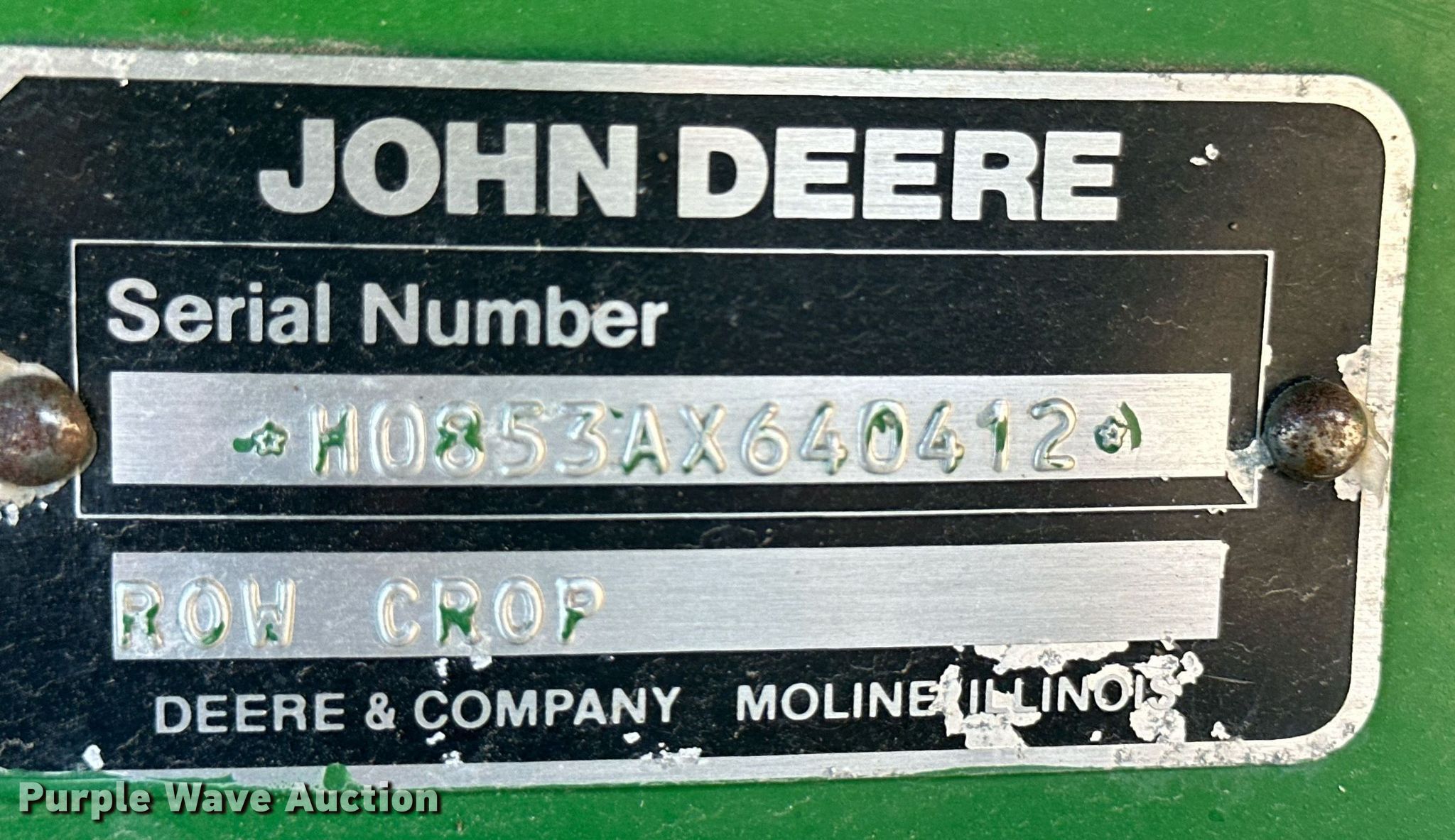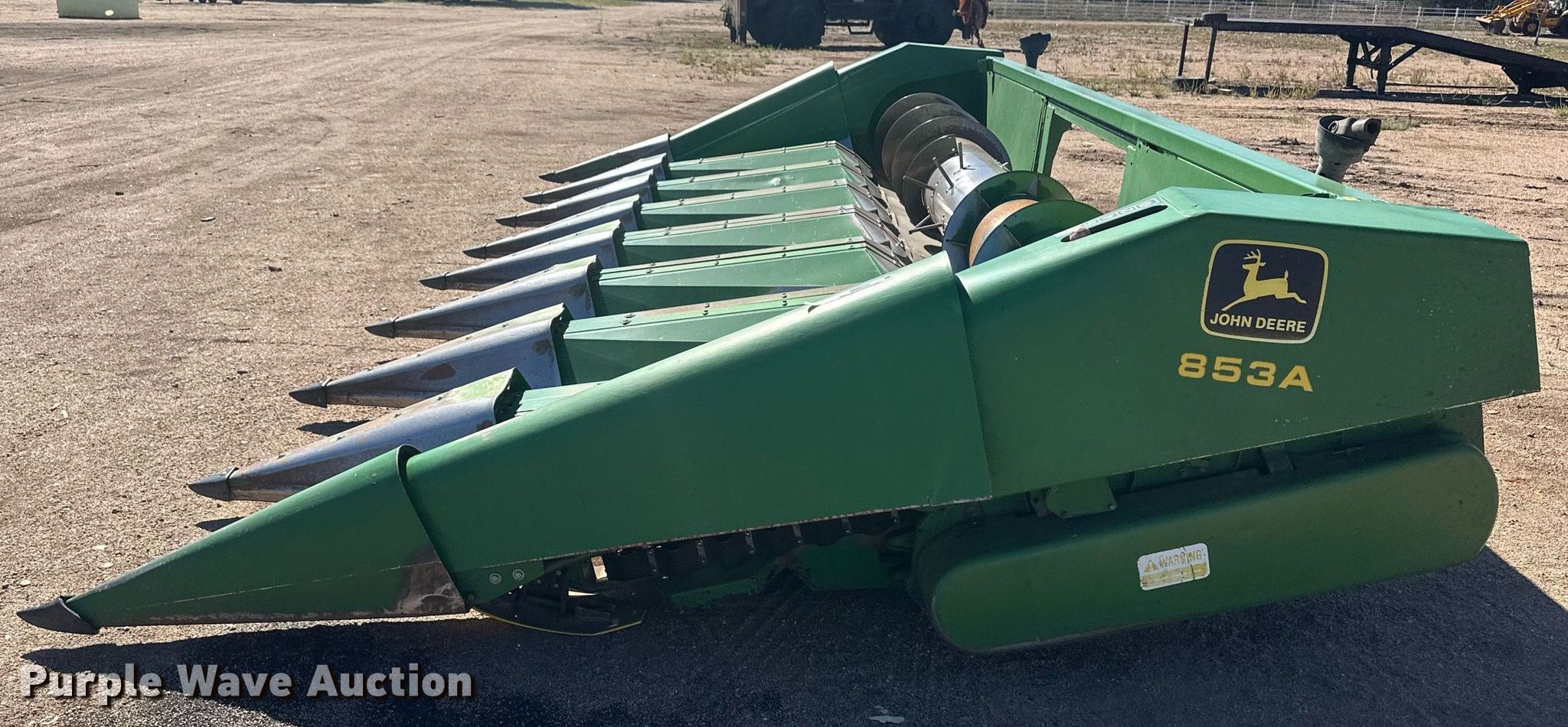 Purple Wave is selling a used Corn or Row Head in Kansas. This item is a John Deere 853A all-crop head with the following: Serial: H0853AX640412