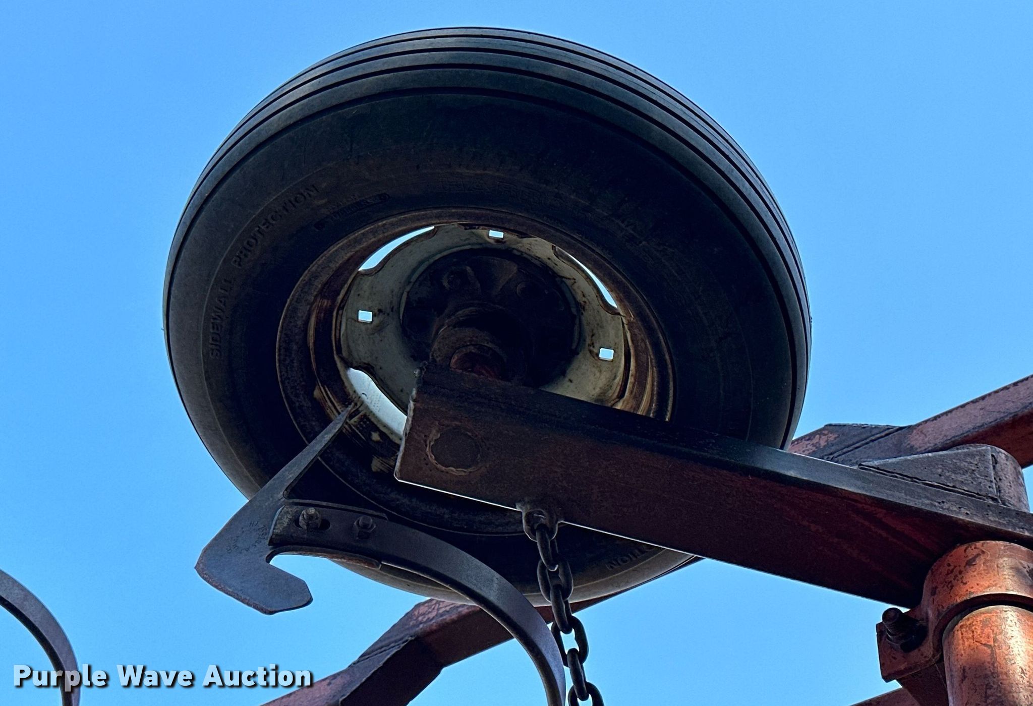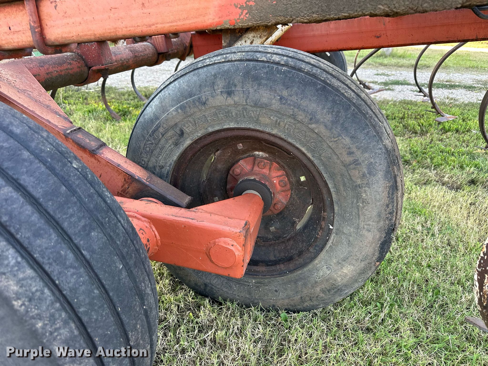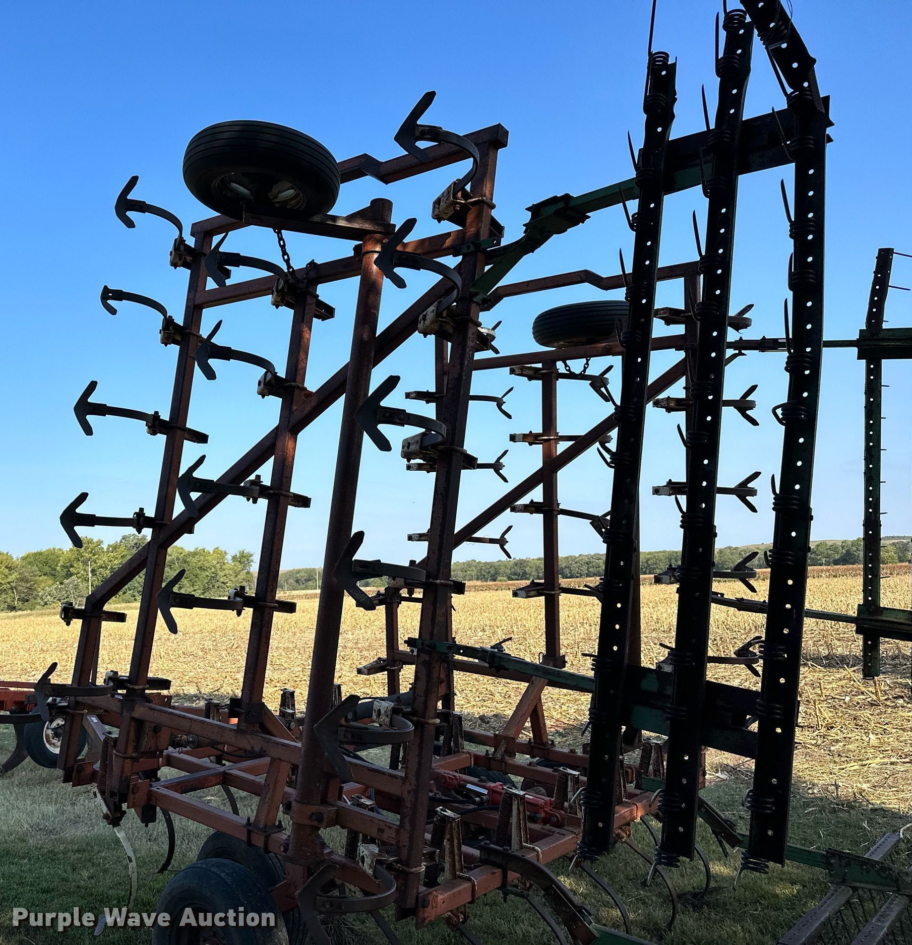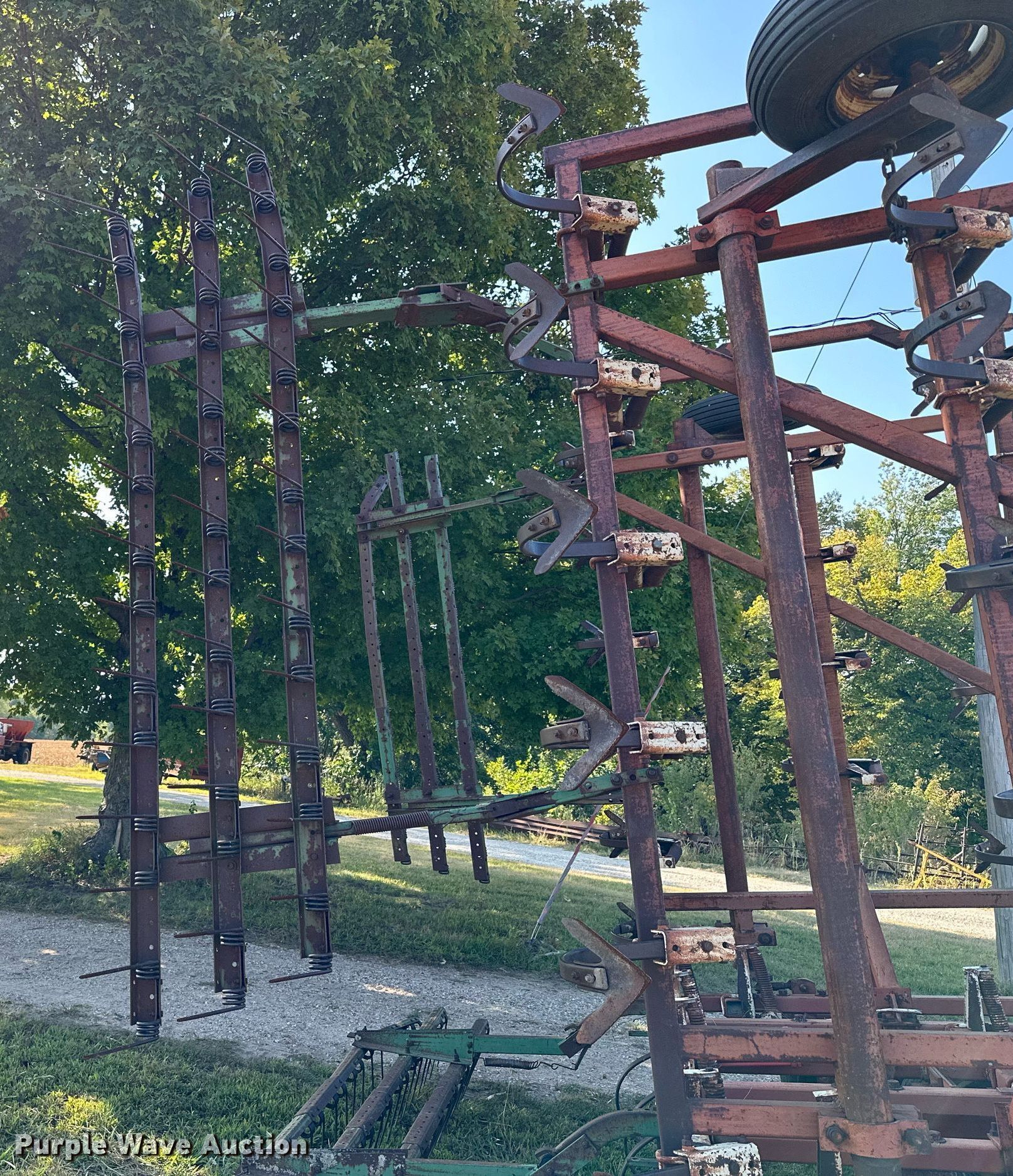 Austin 814 field cultivator. Overall width: 30', Serial: 079209. Features Sweep width: 10", Operation Hydraulic lift, Hydraulic fold, Attachments Tine harrow Harrow bars: 3, Pin hitch. Tires Tire size: 9.5L-15. Manhattan, KS 66502