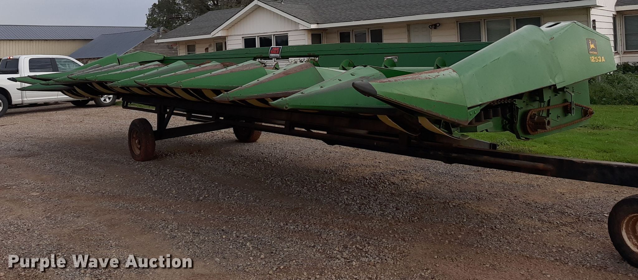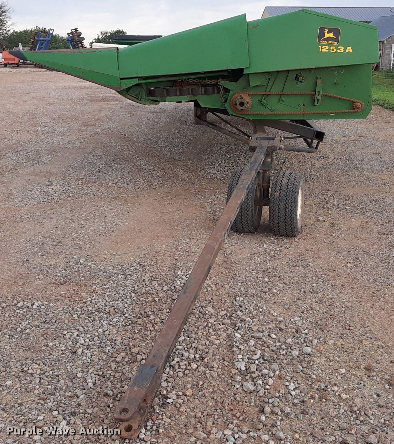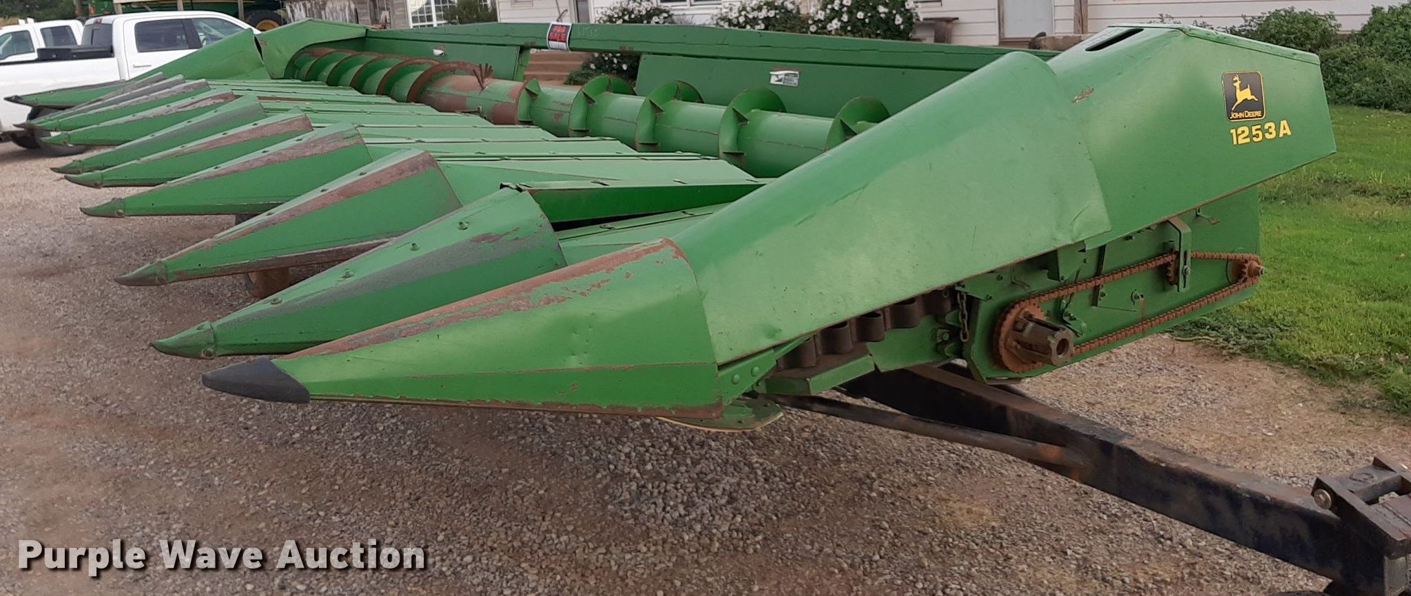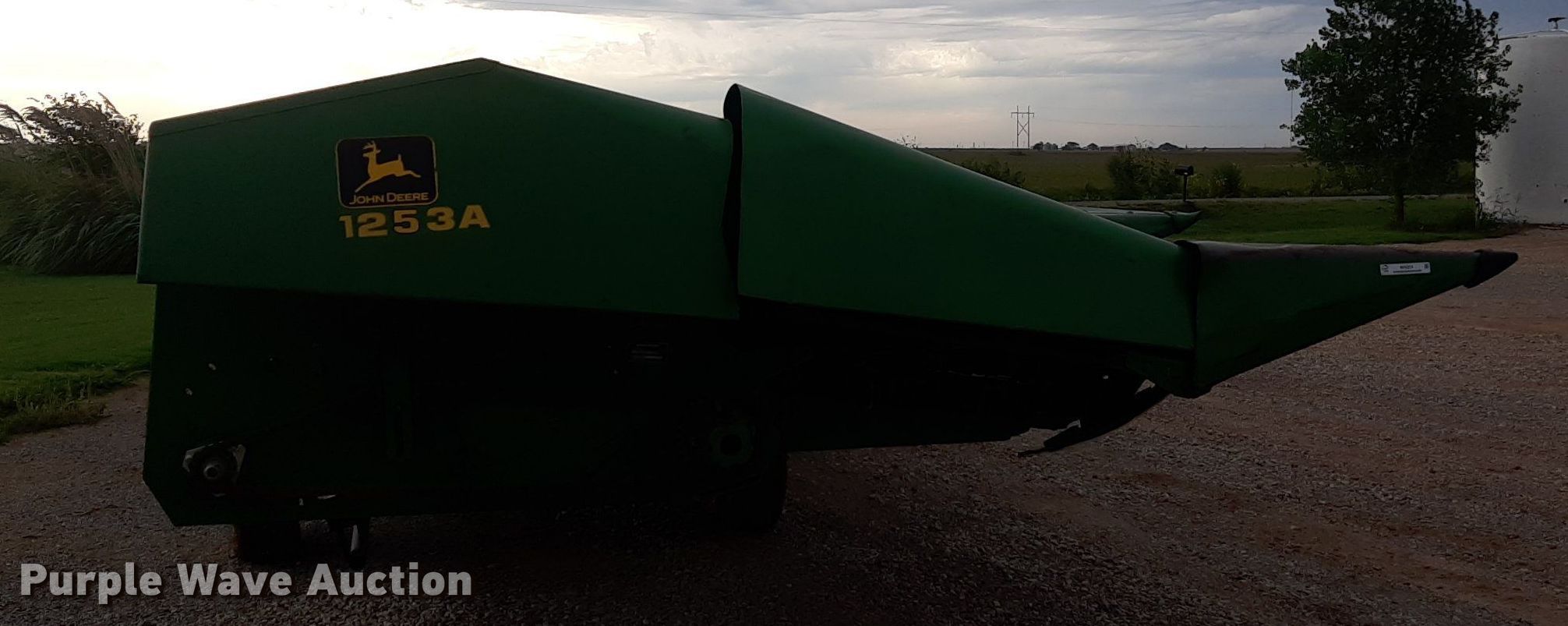 Purple Wave is selling a used Corn or Row Head in Oklahoma. This item is a John Deere 1253A all-crop head with the following: Serial: H0653AX620247