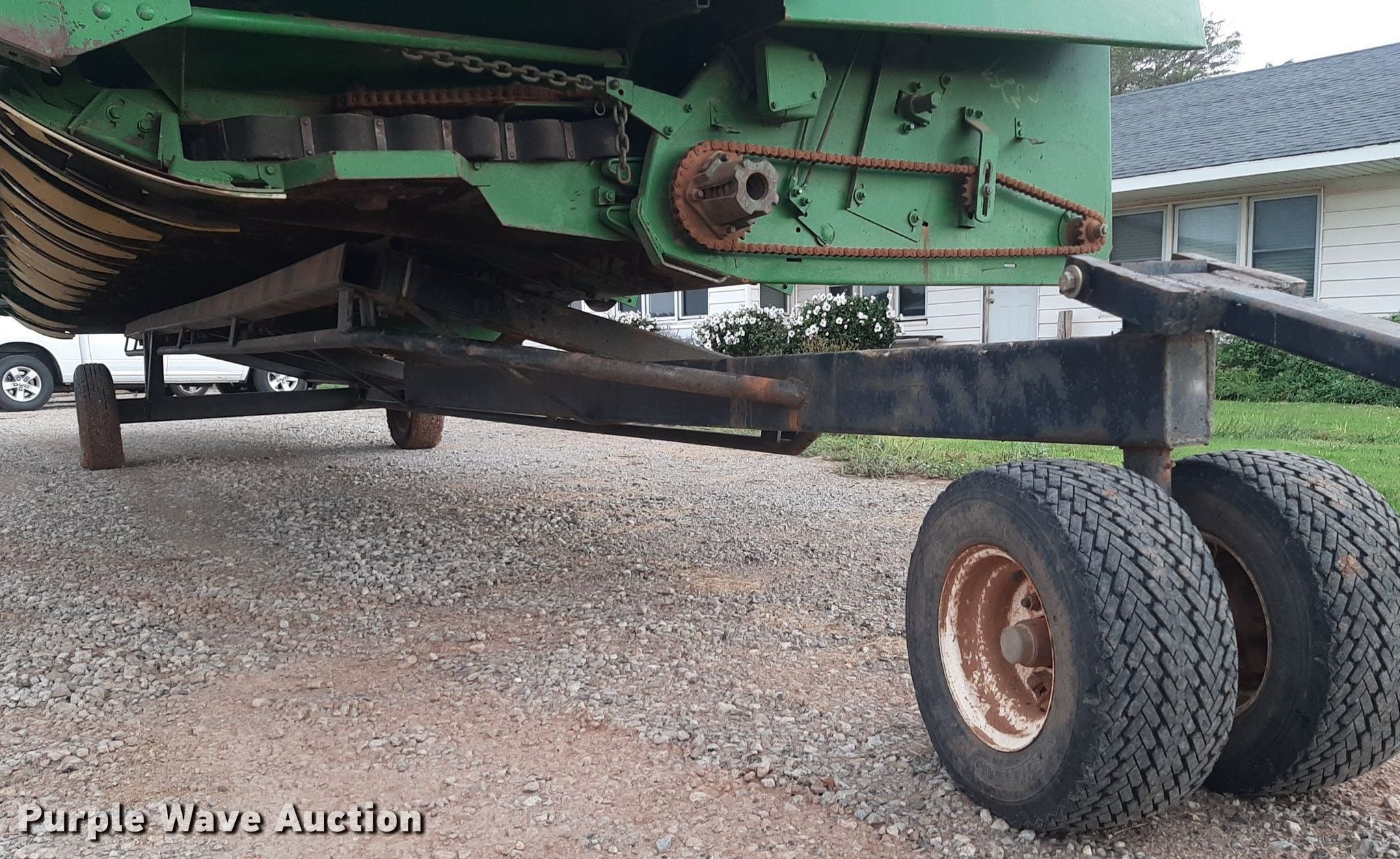John Deere 1253A all-crop head. Serial: H0653AX620247. Features Rows: 12, Row spacing: 30", Drivelines: Dual. Trailer 36' L x 72" W, Head capacity: 30', Axles: Single, Tire size: 225/75R15. OKC Farms. 26869 County Road 900. Medford, OK 73759