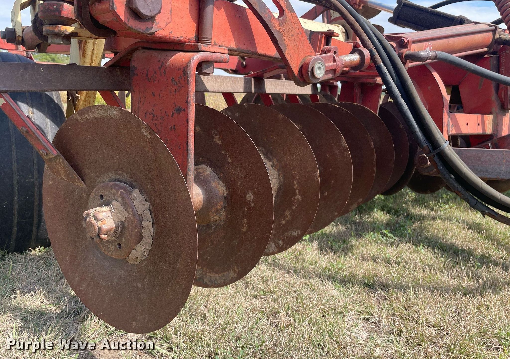 Krause 901 tandem disk. Overall width: 18', Serial: 1733. Features Front blades Diameter: 17", Spacing: 9", Rear blades Diameter: 19", Spacing: 9", Operation Hydraulic lift, Hydraulic fold, Leveler: Manual. Tires Tire size: 11L-15, Gauge wheels Size: 6.70-15. Salina, KS 67401