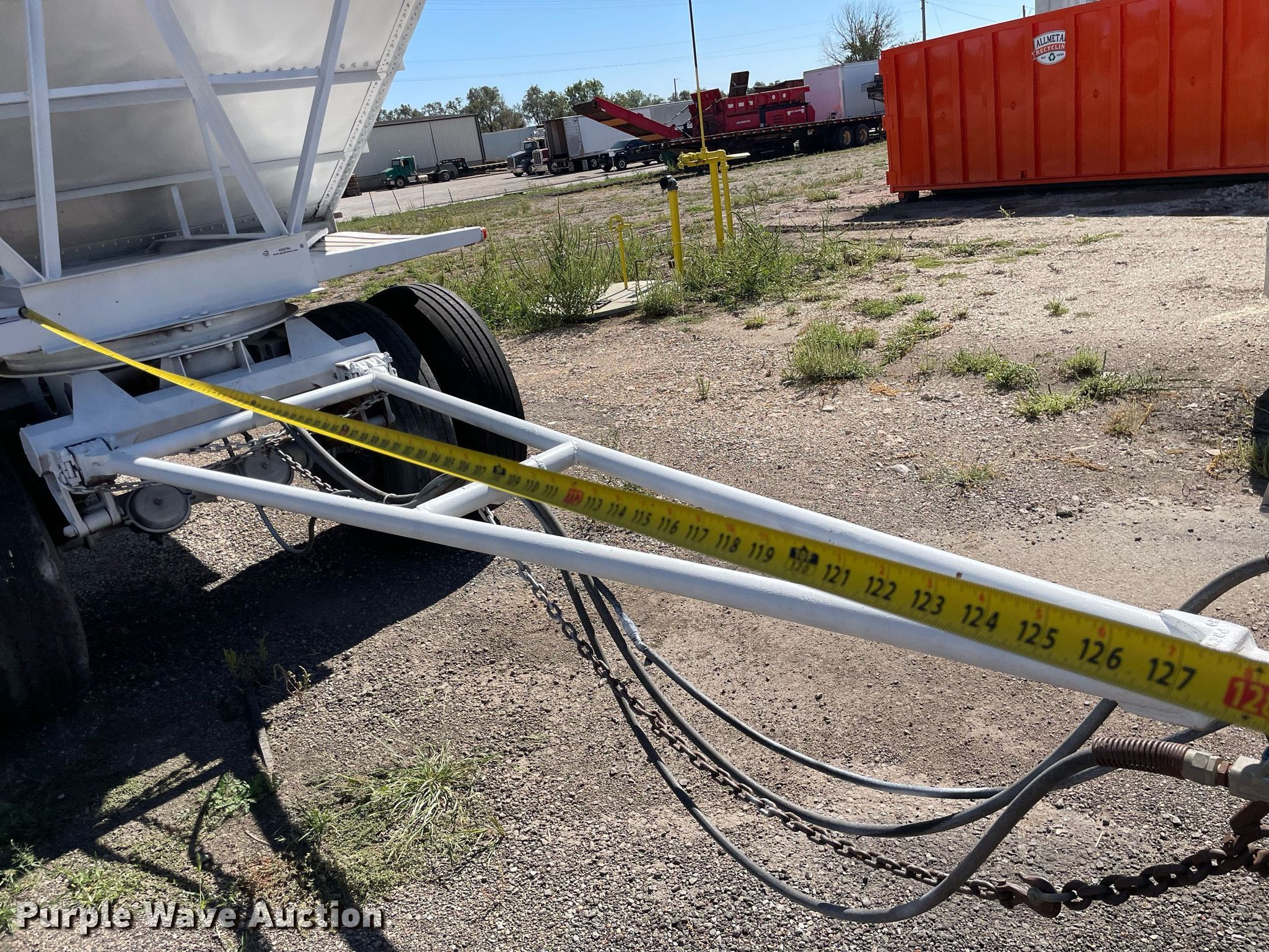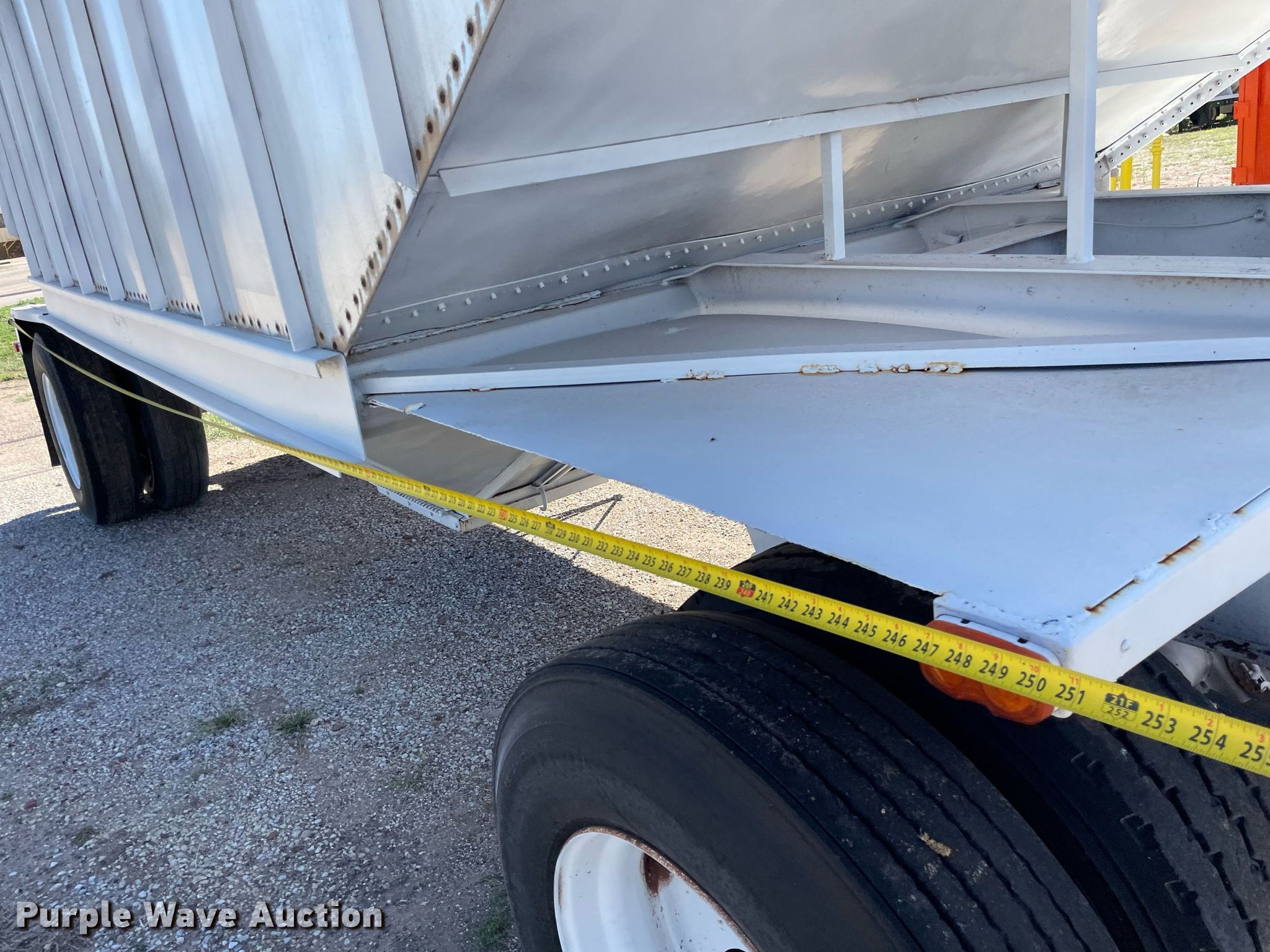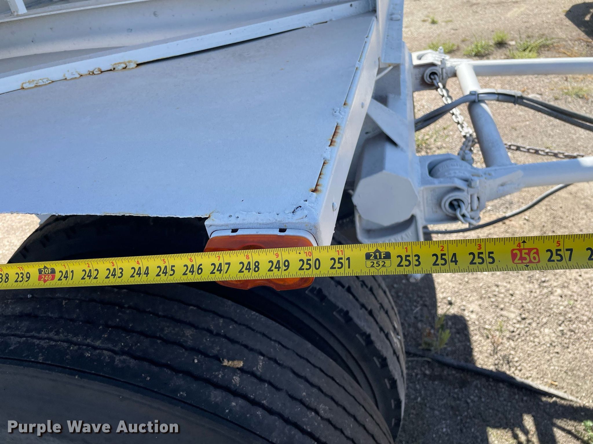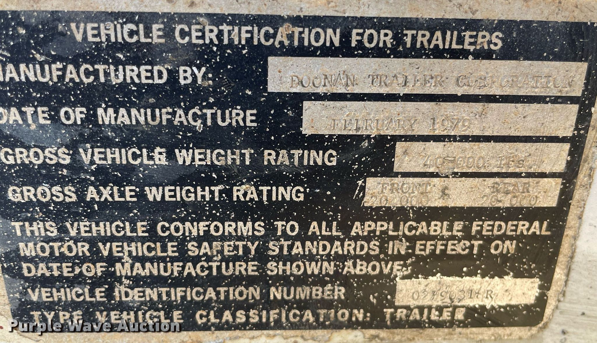 1979 Doonan pup grain trailer. VIN: 02790318R. Dimensions Overall: 31' L x 95" W, Body: 21' L x 95" W, Side height: 60". Features Body type: Aluminum, Hoppers: Single Trap gates: Manual, Roll tarp. Chassis Hitch: Pintle, Suspension: Spring, Brakes: Air, GVWR: 40,000 lbs. Tires Steel wheels, Size: 11R24.5. Notes Front trailer not included. Kansas title. Title distribution may be delayed up to 14 days from verification of funds. Pratt, KS 67124