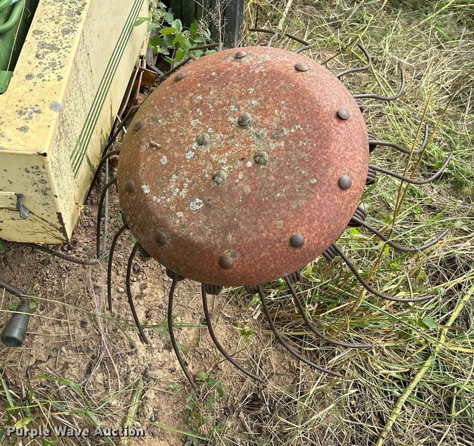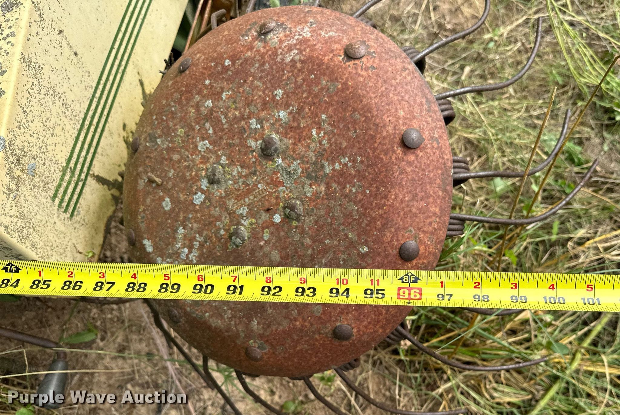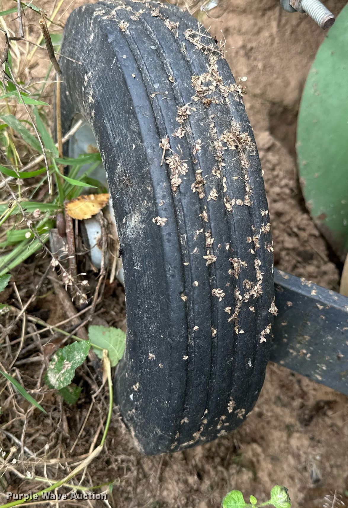 Krone KR250B round baler. Serial: 9040. Features PTO: 540, Gathering wheels, Gauge wheels Size: 12X5.00, Pickup width: 54", Bale size: 4'x5', Auto-tie, Twine tie. Tires Size: 10.00-15. Notes Hydraulic hose damaged, may need replaced, Unknown operating condition. Hare Ranch. Wetumka, OK 74883